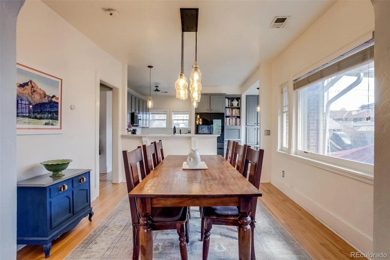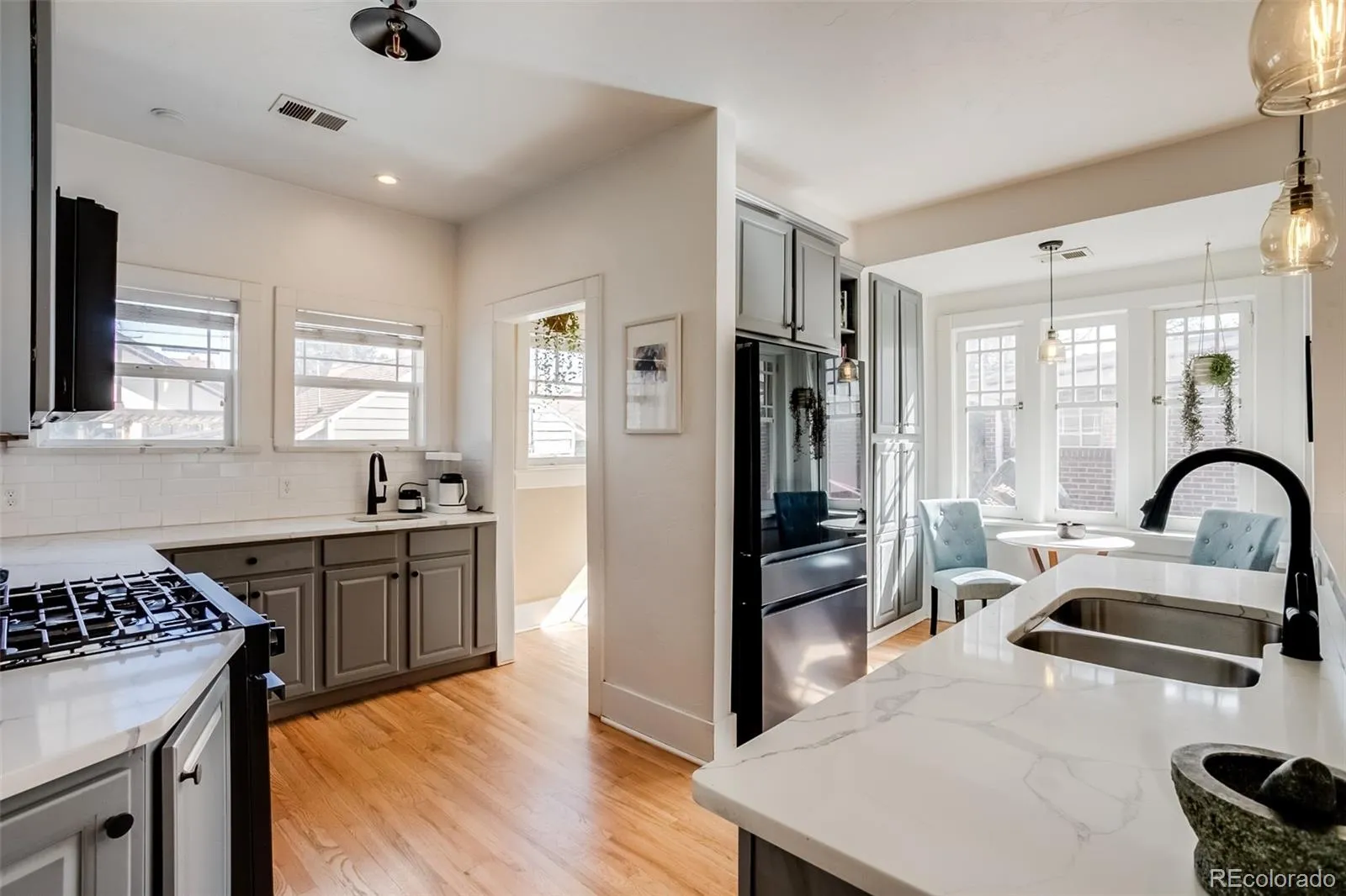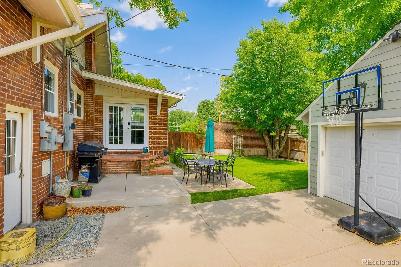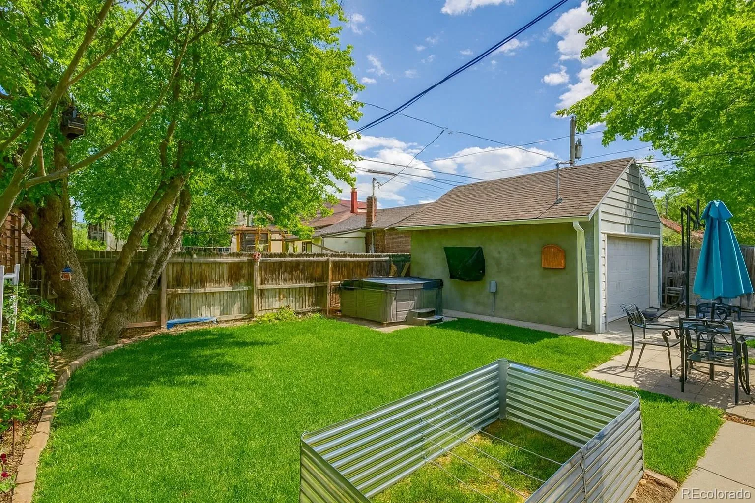 An Extraordinary Renovated 4-Bedroom, 2 Bath Park Hill Bungalow – Spacious, Stylish, and Perfect for Entertaining! This beautifully renovated 4-bedroom, 2 full bath Park Hill bungalow offers far more living space than most in its price range. From the moment you arrive, you’ll notice its charming curb appeal, mature trees, and inviting front porch perfect for morning coffee or evening relaxation. Inside, the home welcomes you with a warm living room featuring a classic wood-burning fireplace, plus a bright family room for extra gathering space. The open-concept kitchen and dining area connect seamlessly to both rooms, making the layout ideal for daily living and hosting. The kitchen is a chef’s dream with an expansive island, sidebar, prep sink, breakfast nook with built-ins, stylish pendant lights, and abundant counter space. Off the kitchen, custom built-ins with a wine cooler provide storage and style. Sunlight pours through southern-facing windows, creating a cheerful year-round atmosphere. A dedicated home office with glass French doors opens directly to the backyard, offering an inspiring workspace. The fully finished basement features high ceilings, fresh paint, two staircases, generous natural light, canned lighting, 2 bedrooms, and flexible living areas for a media room, gym, or guest quarters. Additional highlights include new HVAC, new A/C, central A/C, PV solar panels, refinished hardwood floors, and tasteful updates throughout. Step outside to a private backyard retreat with spacious patio, lush lawn, hot tub, and a privacy gate securing the detached garage and yard. Home incudes a private driveway which leads to the garage and can accommodate a large RV, Boat, oversized truck or three cars. The neighborhood’s stunning architecture, walkability, and friendly community make this location just as special as the home. Outdoor photos have been enhanced.