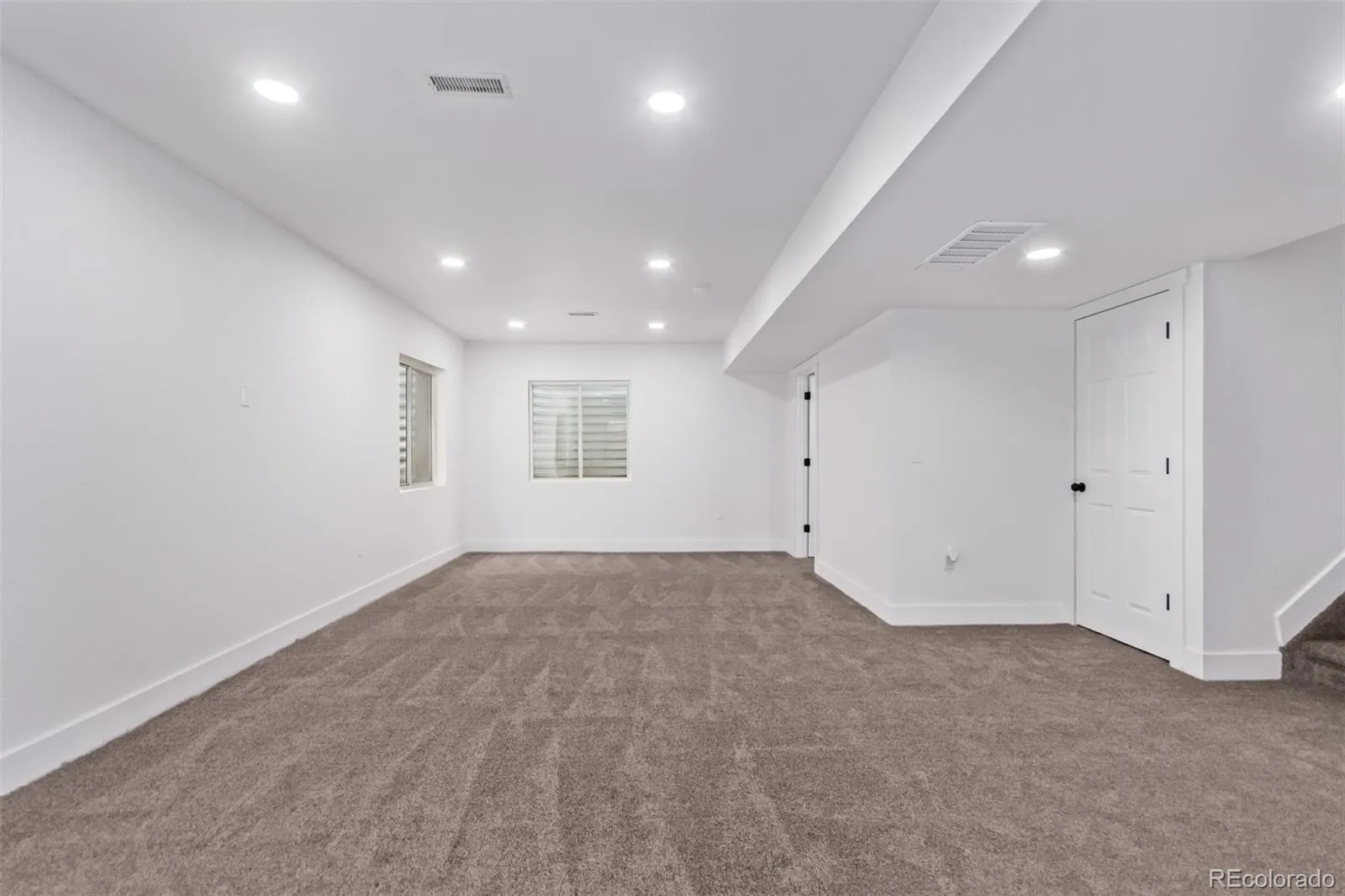 The finished basement is designed for entertaining with a large family room, wet bar with mini fridge, an extra bedroom, and plenty of storage space.