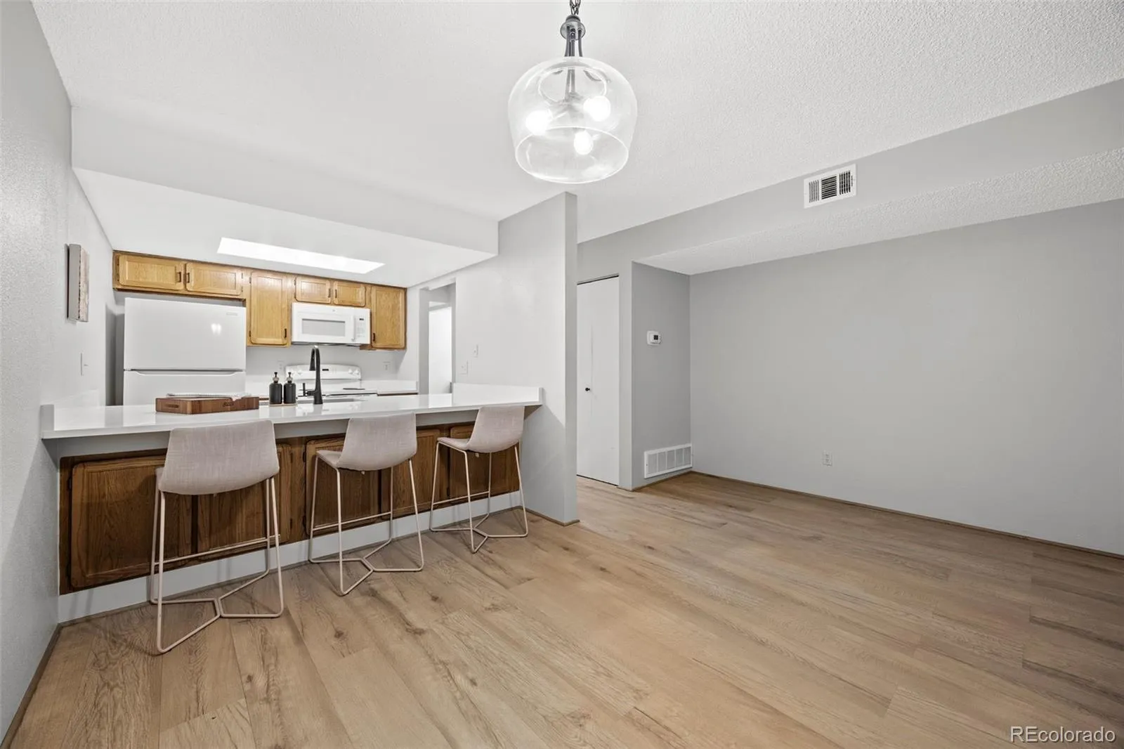 Welcome to 540 S Forest St — a fully renovated, move-in ready condo nestled in one of Denver’s most desirable locations, just minutes from Cherry Creek and steps from the Cherry Creek Trail. Offering 926 square feet of beautifully updated space, this one-bedroom, one-bathroom home combines comfort, style, and convenience—complete with private garage parking (Unit 7-102). Inside, you’ll find brand-new LVP flooring, a spacious and fully remodeled kitchen featuring quartz countertops, upgraded lighting, modern hardware, a brand-new refrigerator, and additional storage under the breakfast bar. The terrazzo-tiled fireplace with a warm wood slat accent wall creates a stunning focal point in the living room—perfect for cozy evenings or entertaining guests. The remodeled bathroom is a serene escape, featuring updated lighting, modern fixtures, and a large soaking tub—ideal for relaxing at the end of the day. An additional vanity just outside the bedroom adds function and flexibility for guests or morning routines. The bedroom boasts a generous walk-in closet for ample storage, while central A/C and in-unit washer and dryer hookups provide everyday comfort and convenience. Enjoy access to premium community amenities including a pool, clubhouse, tennis and basketball courts—all covered by the HOA. Plus, being just steps from the Cherry Creek Trail offers the perfect opportunity for walking, biking, or even commuting to work. This home offers the perfect blend of modern updates and timeless charm. Don’t miss your chance to own this thoughtfully designed retreat in the heart of Denver.
