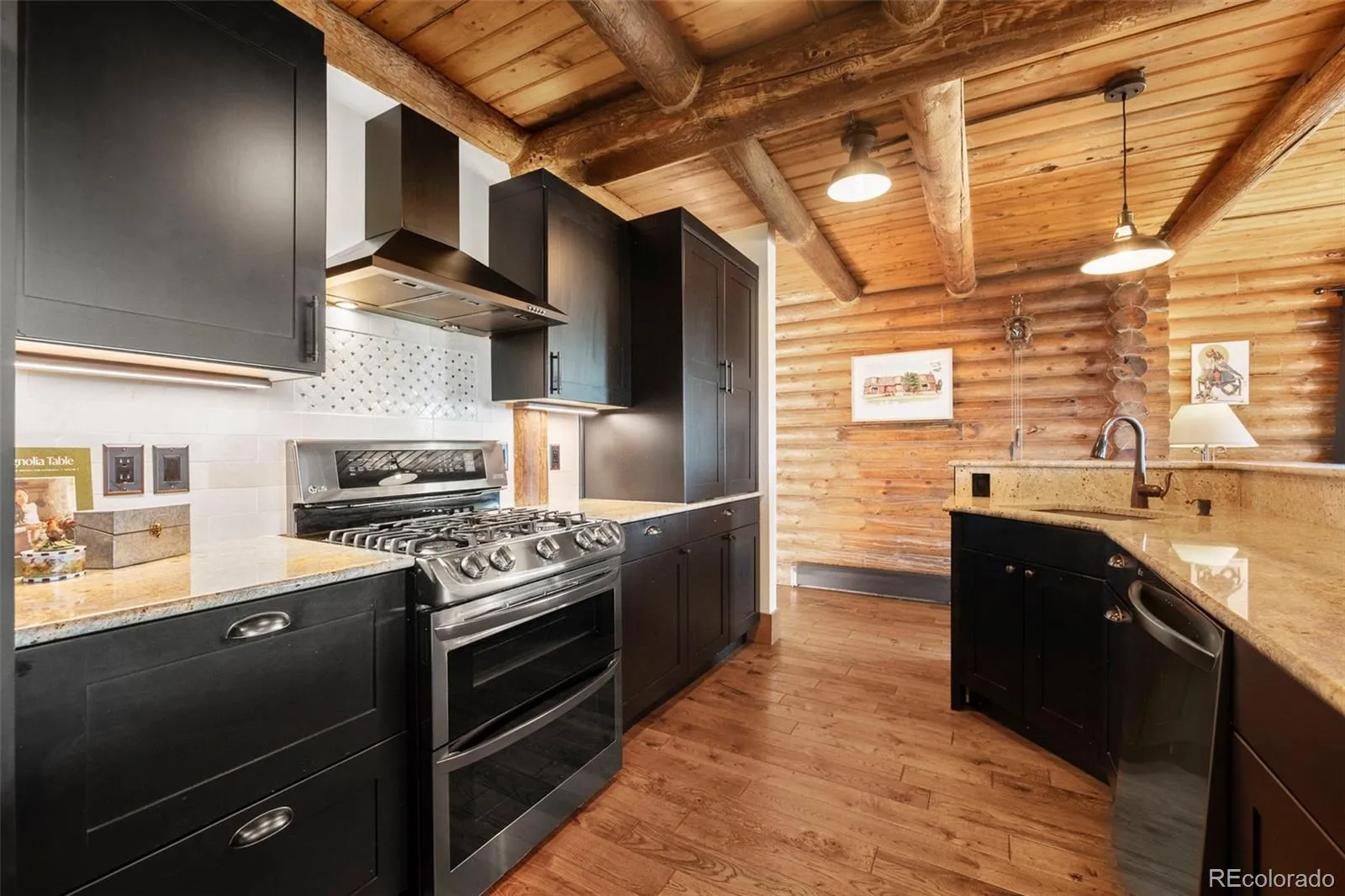 This home has been thoughtfully upgraded from top to bottom, including a completely renovated kitchen, new appliances, fully finished basement, new flooring, high-end bathrooms and extensive landscaping. The chef-inspired kitchen is a showstopper, featuring a massive granite island, custom cabinetry, walk-in pantry with a pass-thru garage grocery door, and a hidden coffee station. The main floor boasts gleaming hardwood floors, a spacious mudroom with a dog wash station and large windows that frame legendary mountain sunsets. Stay cozy all winter with two wood-burning fireplaces, a pellet stove and radiant baseboard heating. Upstairs you’ll find a private primary suite featuring its own deck and fireplace. There’s a spacious loft area, two additional bedrooms, guest bathroom and laundry. The finished basement is designed for entertainment with a wet bar, movie room, game area, oversized guest bedroom, and ample storage. The bonus solar panel system helps keep energy costs low.