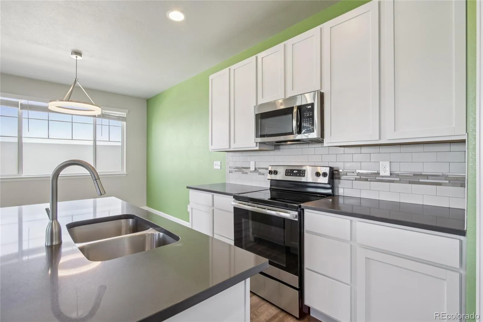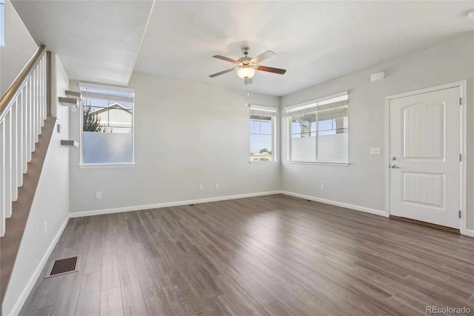 Beautifully appointed end-unit townhome in the desirable Brookstone community of Milliken! Lush front landscaping and a welcoming front porch set the tone, complemented by a side yard—maintained by the HOA—for added green space without the upkeep. Inside, the open main floor flows seamlessly between the spacious living room, dining area, and chef’s kitchen. The kitchen features stainless steel appliances, quartz countertops, a center island with sink and seating, and a pantry for extra storage. A built-in mudroom area with storage and a convenient half bath sit just off the attached oversized two-car garage, already equipped with 220 for car charging.