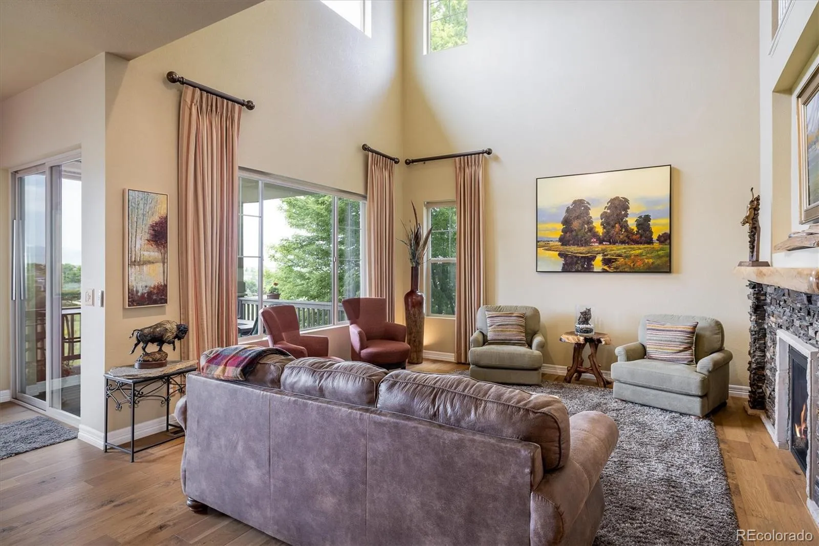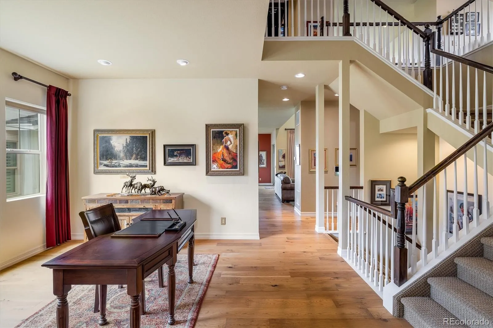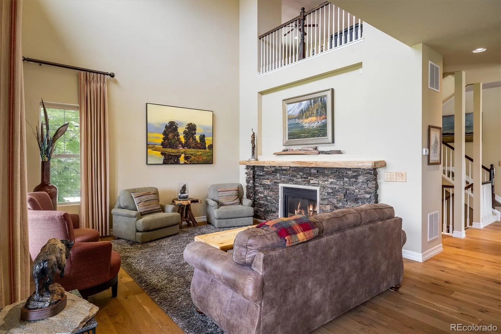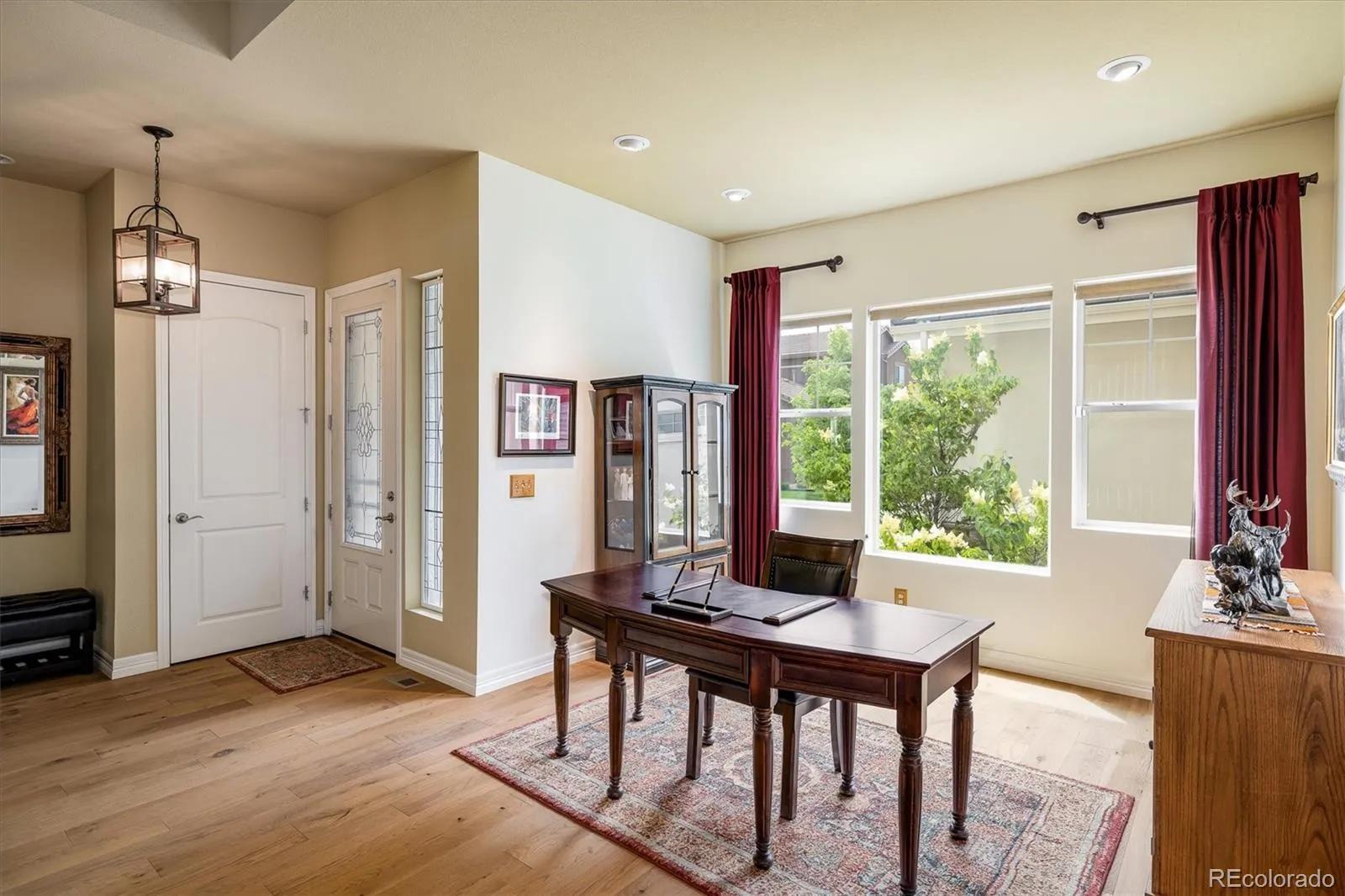 Welcome to a truly rare opportunity in the prestigious Vista Ridge community. This stunning, patio-style home is perfectly positioned on the 1st hole and the 18th tee of the Colorado National Golf Course, offering breathtaking, uninterrupted western views of the snow-capped Rocky Mountains. From Boulder’s iconic Flatirons to Longs Peak in Rocky Mountain National Park, this home captures some of the most scenic vistas in the state. Built in 2016 and lovingly maintained by the original owners, this two-story home offers ideal main-floor living with thoughtful design, timeless finishes, and low-maintenance ease thanks to the HOA that covers lawn care and snow removal. The south-facing driveway ensures easy winter living, complemented by a spacious 3-car garage. The main floor includes the primary suite with serene golf course and mountain views, a cozy alcove reading nook, oversized walk-in shower and tub and a spacious closet with custom built-ins. – Gourmet kitchen with hickory cabinetry, granite countertops, double ovens, gas range with vented hood, and walk-in pantry. Soaring ceilings in the great room, anchored by a gas fireplace with stacked stone surround and a custom designed wooden mantel crafted from an Aspen tree. Dedicated flex space ideal for a home office, library, or piano room. Step outside to your covered back patio, which has been a cherished sanctuary for the current owners, perfect for entertaining, dining al fresco, or relaxing with a glass of wine while watching the sunset or hot air balloons drift across the horizon. Loft/flex space with stunning mountain views, two generously sized bedrooms with large closets and a shared full bathroom. Bright and open finished walk-out basement designed for entertaining with a full kitchen, additional guest bedroom, 3/4 bath, workshop area, and two large storage rooms.
