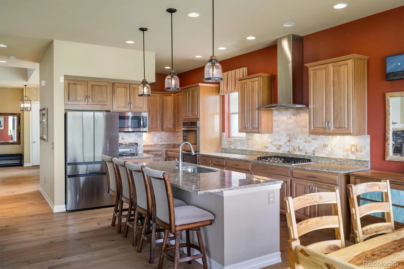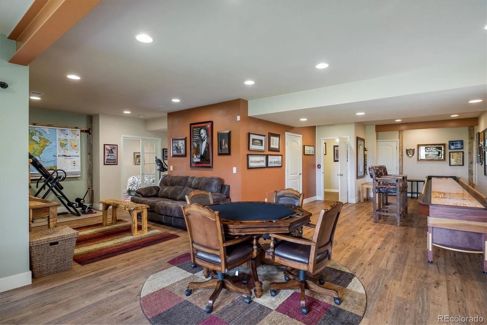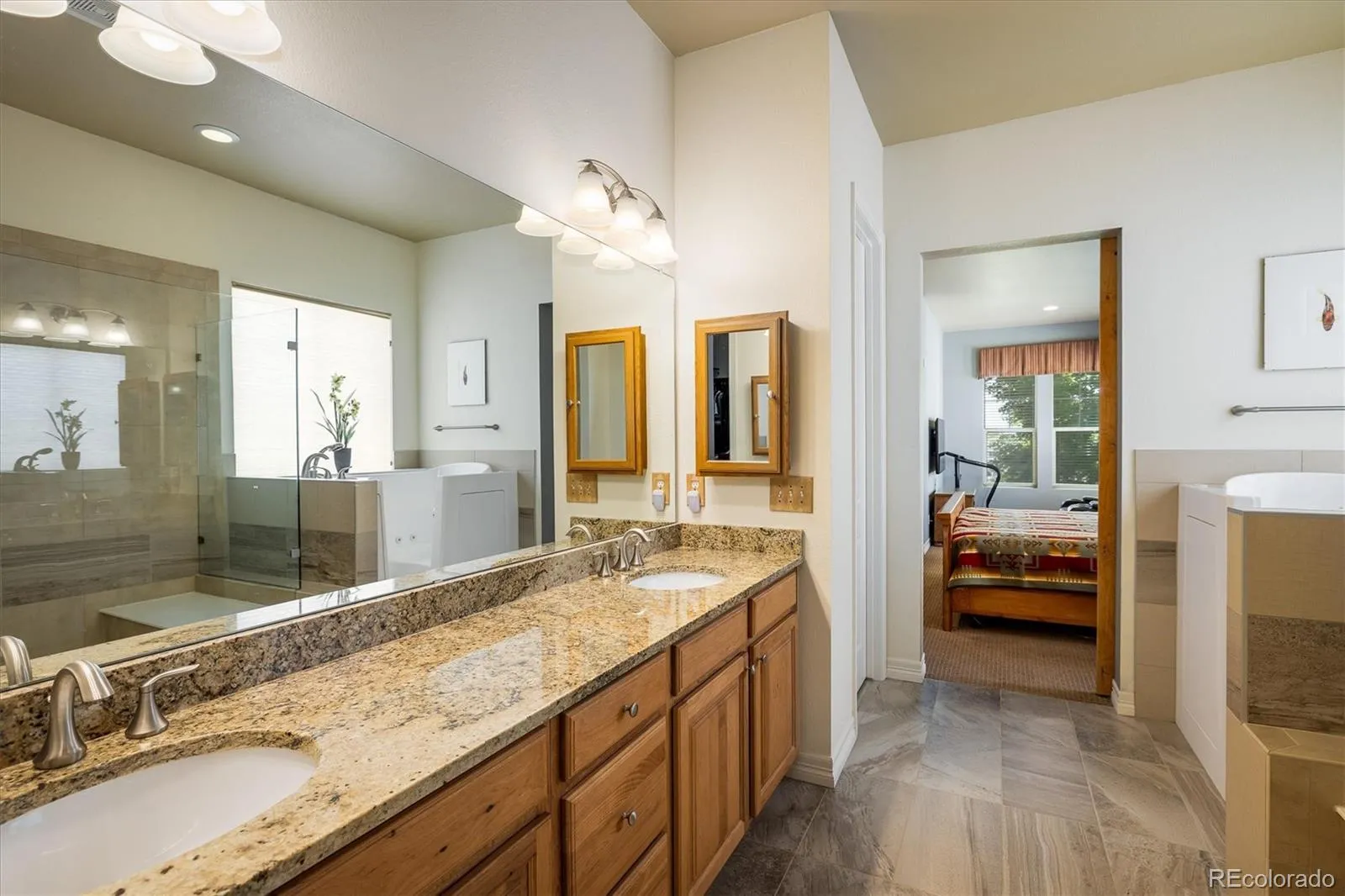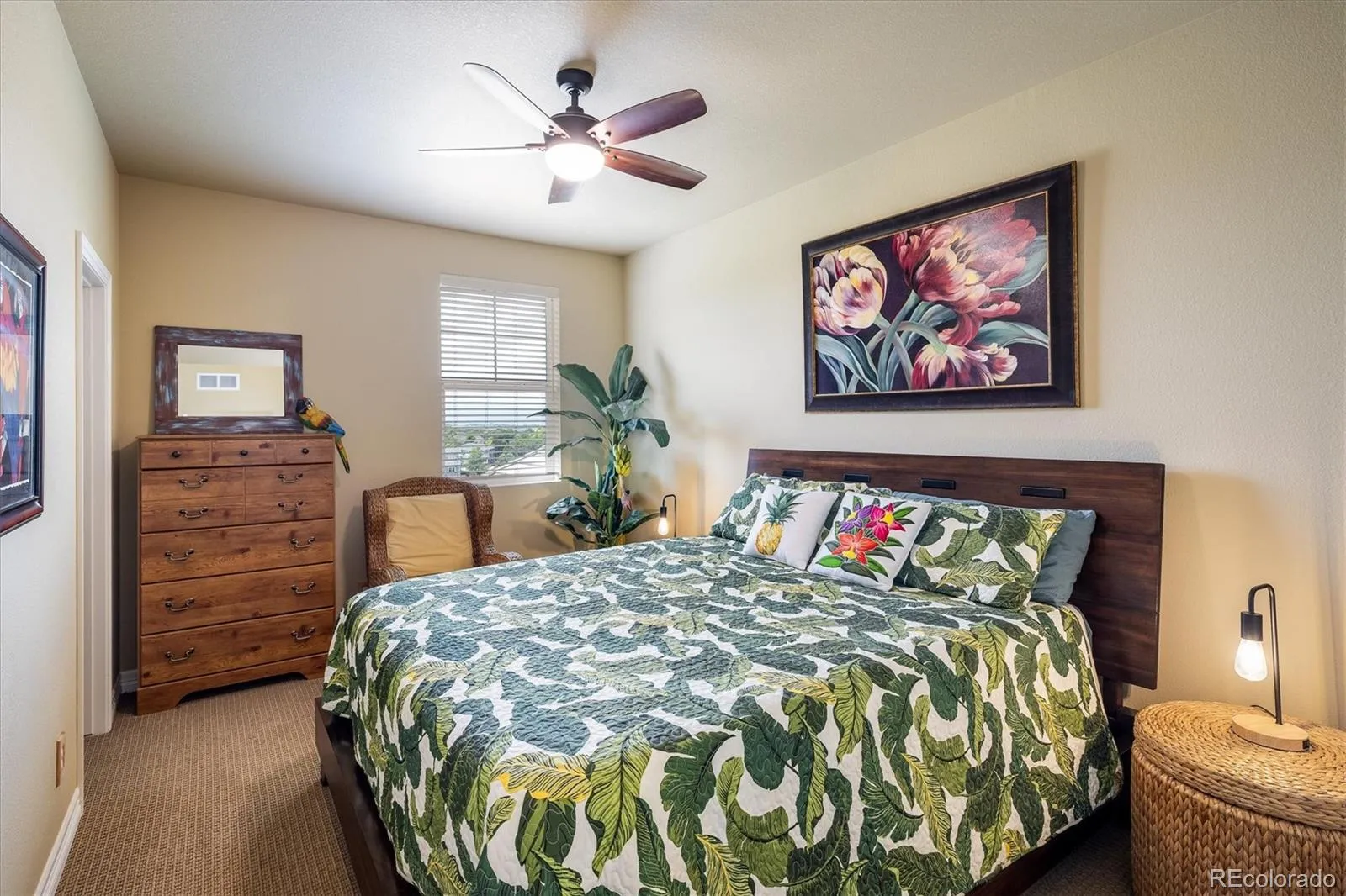 Welcome to a truly rare opportunity in the prestigious Vista Ridge community. This stunning, patio-style home is perfectly positioned on the 1st hole and the 18th tee of the Colorado National Golf Course, offering breathtaking, uninterrupted western views of the snow-capped Rocky Mountains. From Boulder’s iconic Flatirons to Longs Peak in Rocky Mountain National Park, this home captures some of the most scenic vistas in the state. Built in 2016 and lovingly maintained by the original owners, this two-story home offers ideal main-floor living with thoughtful design, timeless finishes, and low-maintenance ease thanks to the HOA that covers lawn care and snow removal. The south-facing driveway ensures easy winter living, complemented by a spacious 3-car garage. The main floor includes the primary suite with serene golf course and mountain views, a cozy alcove reading nook, oversized walk-in shower and tub and a spacious closet with custom built-ins. – Gourmet kitchen with hickory cabinetry, granite countertops, double ovens, gas range with vented hood, and walk-in pantry. Soaring ceilings in the great room, anchored by a gas fireplace with stacked stone surround and a custom designed wooden mantel crafted from an Aspen tree. Dedicated flex space ideal for a home office, library, or piano room. Step outside to your covered back patio, which has been a cherished sanctuary for the current owners, perfect for entertaining, dining al fresco, or relaxing with a glass of wine while watching the sunset or hot air balloons drift across the horizon. Loft/flex space with stunning mountain views, two generously sized bedrooms with large closets and a shared full bathroom. Bright and open finished walk-out basement designed for entertaining with a full kitchen, additional guest bedroom, 3/4 bath, workshop area, and two large storage rooms.