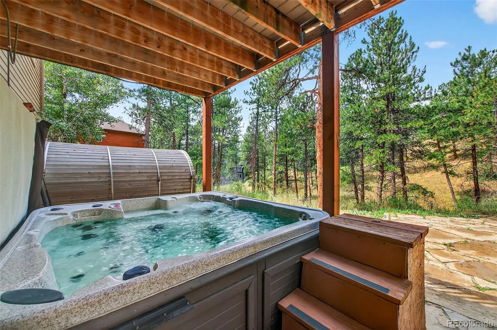 *** $50k PRICE CUT ***Welcome to your mountain retreat in beautiful Evergreen! The inviting foyer opens to a spacious formal dining room and an office with French doors—easily converted into a main-floor bedroom with adjoining full bath. The soaring two-story living room features a floor-to-ceiling stacked-stone fireplace, walls of windows, and sweeping mountain views. The open layout flows to a casual dining area and kitchen with stainless steel appliances, alder cabinetry, granite countertops, and hickory floors. Just off the living area, a large deck is perfect for morning coffee, evening dinners, or gatherings with friends. The entire home has been revitalized with fresh designer paint throughout, along with brand-new plush carpet upstairs and in the finished basement, giving it a crisp, modern look and making it truly move-in ready. The expansive primary suite offers stunning views, a five-piece en-suite, and a large walk-in closet. Two additional bedrooms share a Jack-and-Jill bath, while a roomy loft offers space for a reading nook, playroom, gym, hobby area, or second office. The bright walk-out basement includes a pool table area, fourth bedroom, full bath, and a large unfinished section with a partially finished room—perfect for a gym, media room, craft studio, man cave, or personal retreat. An oversized three-car garage—two bays front-facing and a tandem third in back—offers high ceilings and plenty of room for all your mountain toys and gear. The private yard boasts a sauna, hot tub, and seating area, all in a peaceful setting that feels like your own mountain hideaway. New roof installed August 2023. Conveniently located just 9 minutes from downtown Evergreen, 4.5 miles to Lair O’ the Bear Park, 15 minutes from the iconic Red Rocks Amphitheatre, 45 minutes to downtown Denver, and 1 hour 20 minutes to DIA—close to everything, yet a world away. Schedule your showing today!