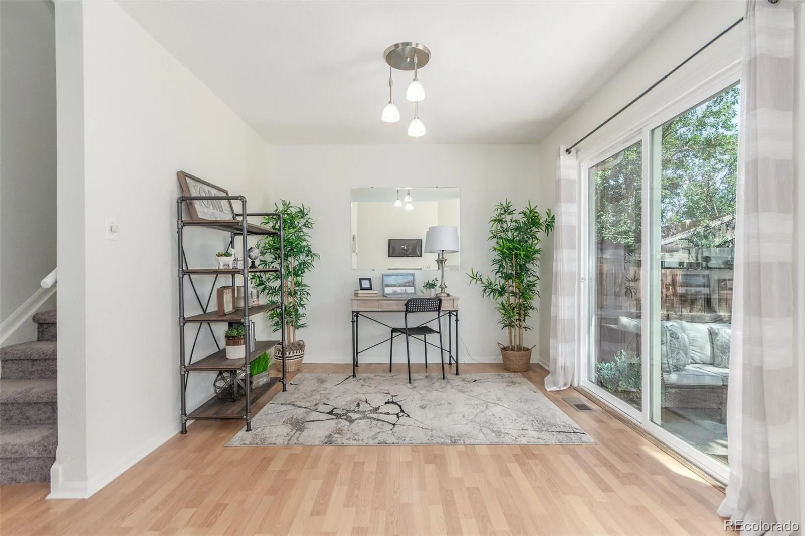 Welcome to your new home in the peaceful Autumnwood community! This charming townhome blends modern style with everyday comfort, offering 2 bedrooms, 2.5 bathrooms, and a 2-car garage with keypad. The spacious living room, anchored by a cozy gas fireplace and ceiling fan, flows seamlessly into a flexible bonus space perfect for a formal dining area, home office, or playroom. High vaulted ceilings and abundant natural light create an airy feel throughout, enhanced by fresh paint, new carpet upstairs, and tile & wood-look flooring on the main level.