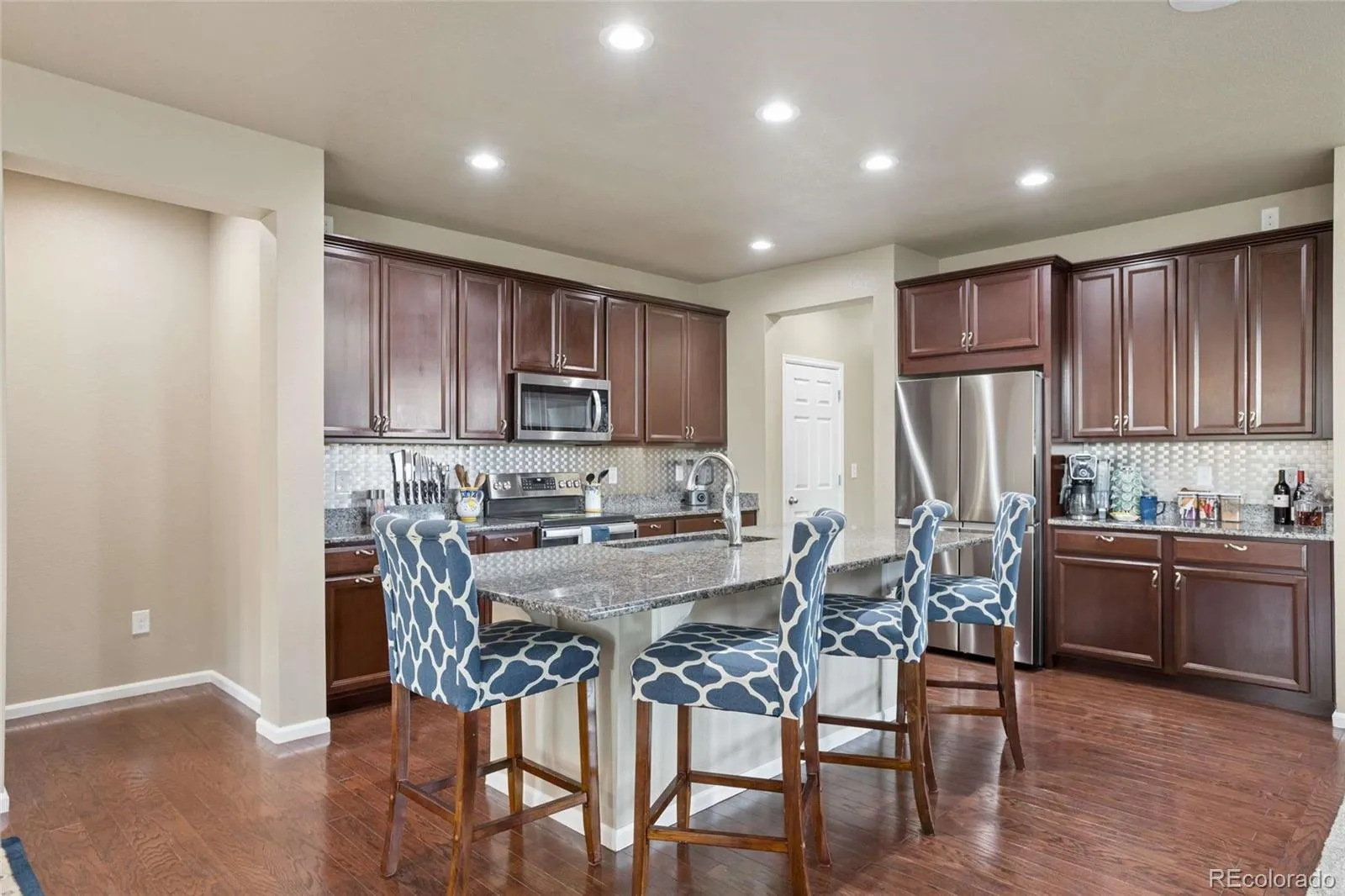 Step inside to find a bright and inviting interior, freshly updated with new interior paint and plush new carpeting throughout. The open-concept main level is filled with natural light from the abundant windows, creating a warm and welcoming atmosphere perfect for both everyday living and hosting gatherings. The gourmet kitchen is a true centerpiece, featuring upgraded granite countertops, modern appliances, abundant cabinetry, and a layout that flows seamlessly into the dining and living areas.