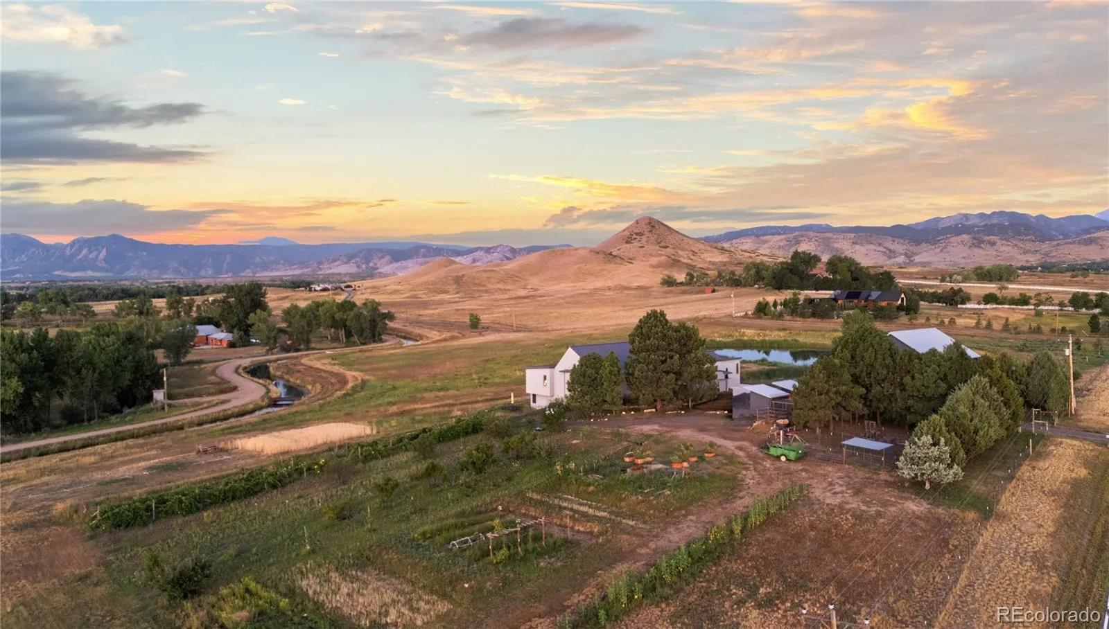 A rare opportunity to own one of Colorado’s most thoughtfully designed and soulfully restored gentleman’s ranches. Just minutes from downtown Niwot and Boulder, this secluded yet central 8.8-acre estate offers panoramic mountain views from Pikes Peak to Longs Peak, the Flatirons, and Boulder’s city lights.