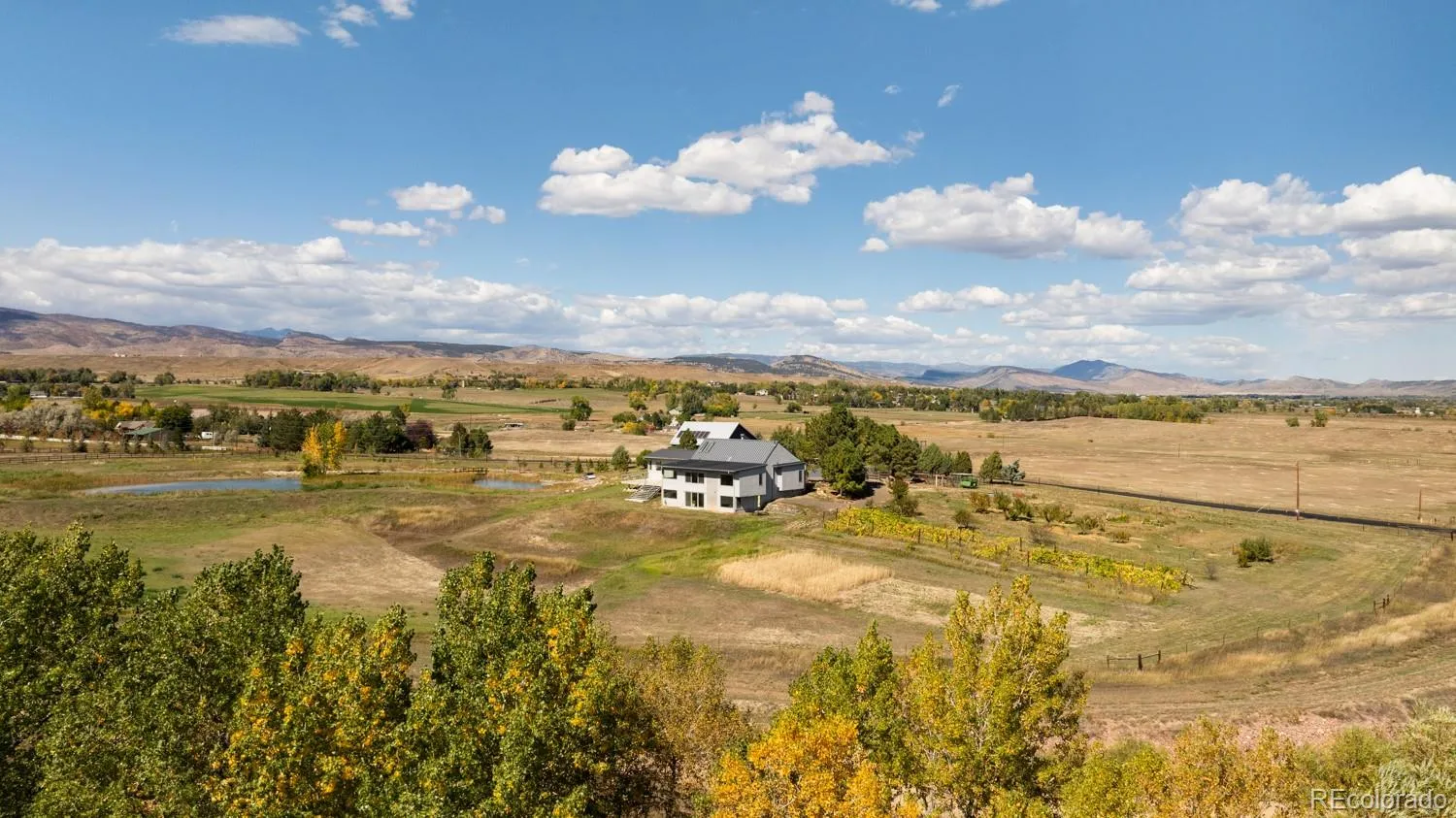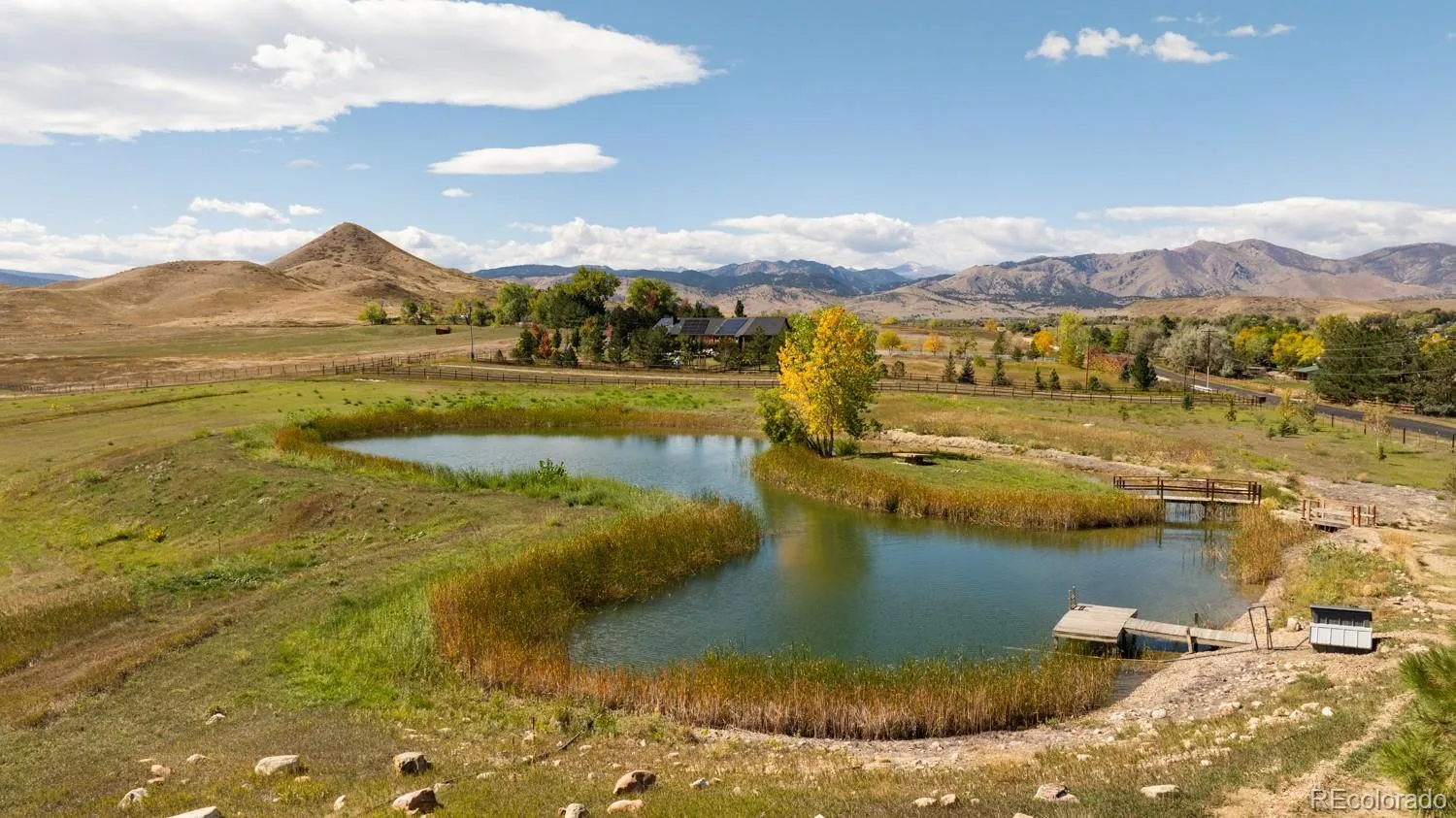 Highlights include a one-acre stocked pond with island, fire pit, footbridges, dock, and water rights – this property has an irrigation system fed by 45 total water shares (20 Left Hand + 25 New Table Mountain). A custom 1,200-SF Morton Barn with 28-foot ceilings, heated slab, kitchenette, workshop, and solar panels – ideal for hobbies, artists, or future ADU/equestrian conversion.