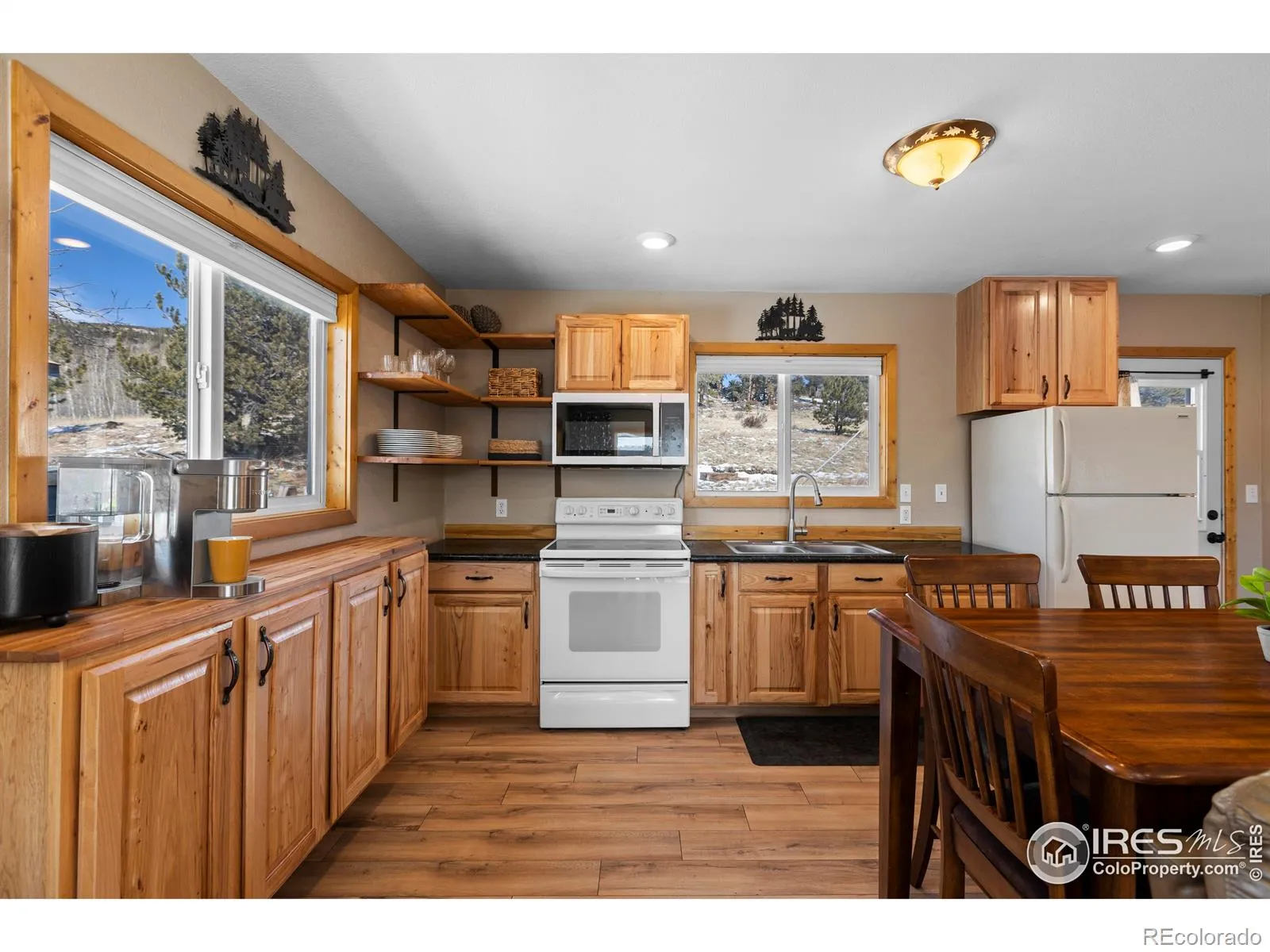Welcome to your serene mountain retreat in the highly coveted Crystal Lakes subdivision of Red Feather Lakes! This charming 2-bedroom, 3/4-bath cabin sits on 2.3 private acres surrounded by aspens and teeming with wildlife-right next to a moose haven! Enjoy stunning views of the river valley below and the tranquility of a spring that flows intermittently through the grove. Recent upgrades include new siding and exterior paint, a brand-new deck, stone wainscot, a concrete front porch, electrical updates, and a large shed perfect for ATV storage. Inside, the open-concept layout maximizes space with natural-looking, water-resistant engineered laminate flooring, hickory cabinets, granite countertops, and a remodeled kitchen with a coffee bar. A newer metal roof and refinished deck add to the cabin’s value and charm. Furniture is included! Crystal Lakes offers private fishing, road maintenance, trash drop-off, and plowing. Sealed vault and permitted well in place. Close to the N. Fork of the Poudre River and Panhandle Reservoir for world-class fishing. Fire pit included to enjoy the crisp mountain air. Peace and quiet await!