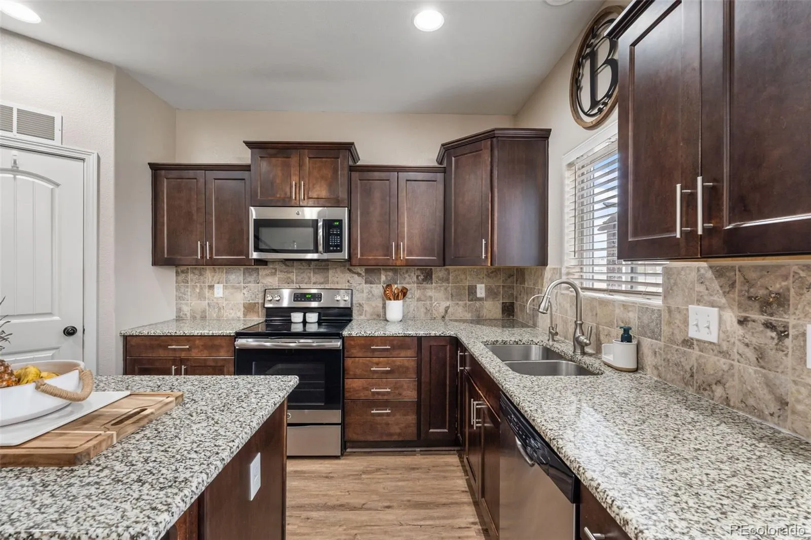 *Assumable Loan* From the minute you drive into the quiet community of Ventana, you will immediately feel at home. This beautiful Lexington model by Challenger Homes boasts an open floor plan, extended luxury vinyl flooring, full landscaping included in the front and the rear, plus stunning privacy out back, perfect for your entertaining needs! As you step into this well kept home, you’ll be greeted with an office complete with french doors, ready for you to make your own. A half bath resides on the main level as well. Continue through the home into the perfectly sized family room complete with a gas fireplace, a cozy yet open dining area, and an expansive kitchen which all allow for plenty of living space on the main level. The updated kitchen boasts a large island, stunning granite counters, plus stainless steel appliances, all of which make this the kitchen of your dreams. The upper level features additional living space with an expansive loft, 3 bedrooms, and 2 full bathrooms. The master bedroom alone will have you calling this place, “Home”. Within the master bath, you’ll find a double vanity, glass door stand alone shower, large soaker tub, and an oversized walk-in closet. To finish off the upstairs is a perfectly completed laundry room. Home upgrades include: a fully owned water filtration system, AC, an extended outdoor patio, a gas fireplace, newer flooring and newer interior/exterior paint throughout. Located within walking distance of Ventana’s largest playground, soccer fields, apple orchard, and picnic spaces, as well as the community center which features a workout facility, meeting space, pool, and hot tub. This conveniently located, yet tucked away, area of Fountain is just minutes from Metcalf Park and Adams Open Space, all of which seamlessly connects to Ventana through walking trails. Come see it today! Easy access to I-25 and Powers Blvd, minutes from Mesa Ridge shopping/dining amenities, Fort Carson & other local military installations.