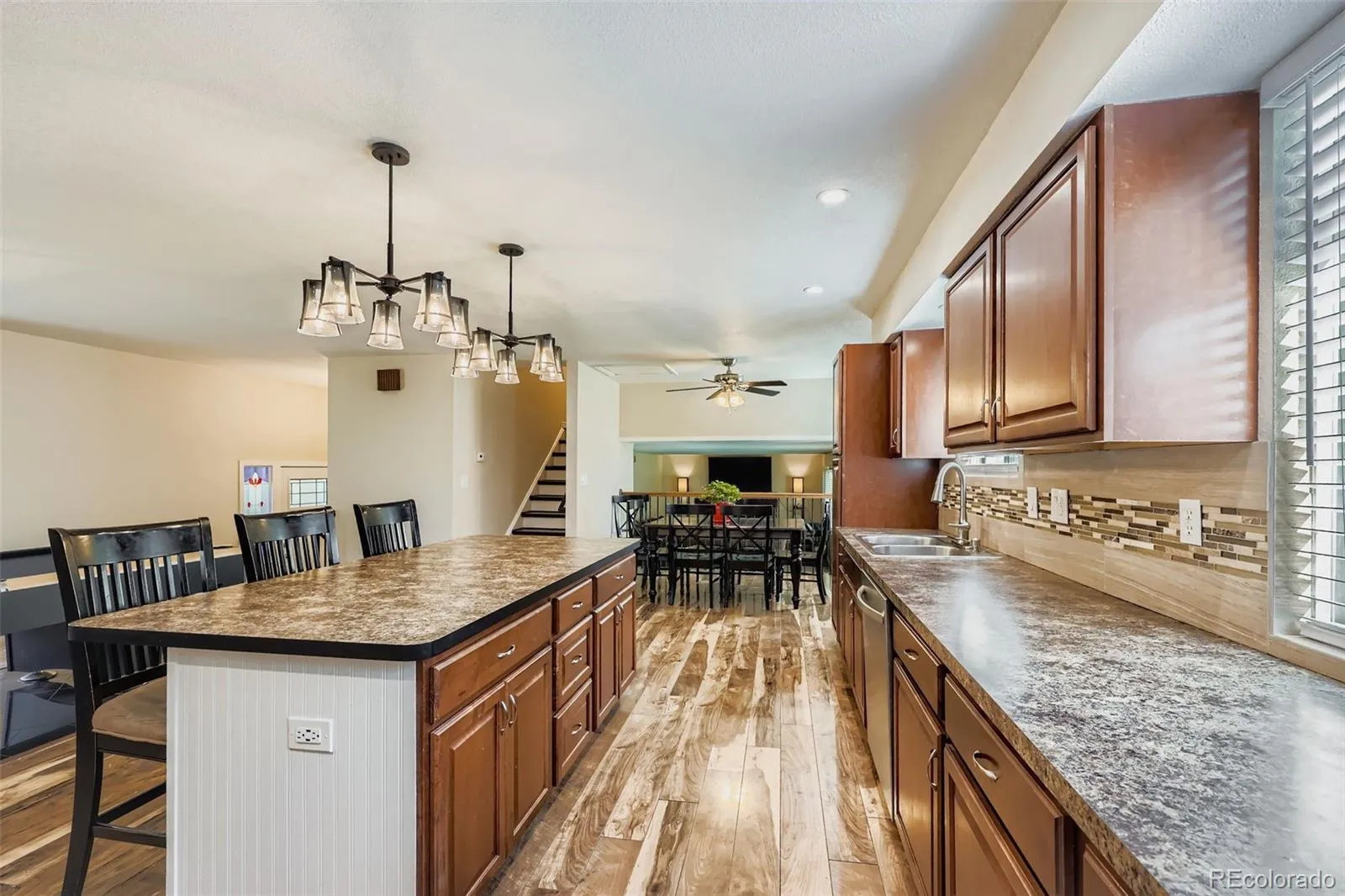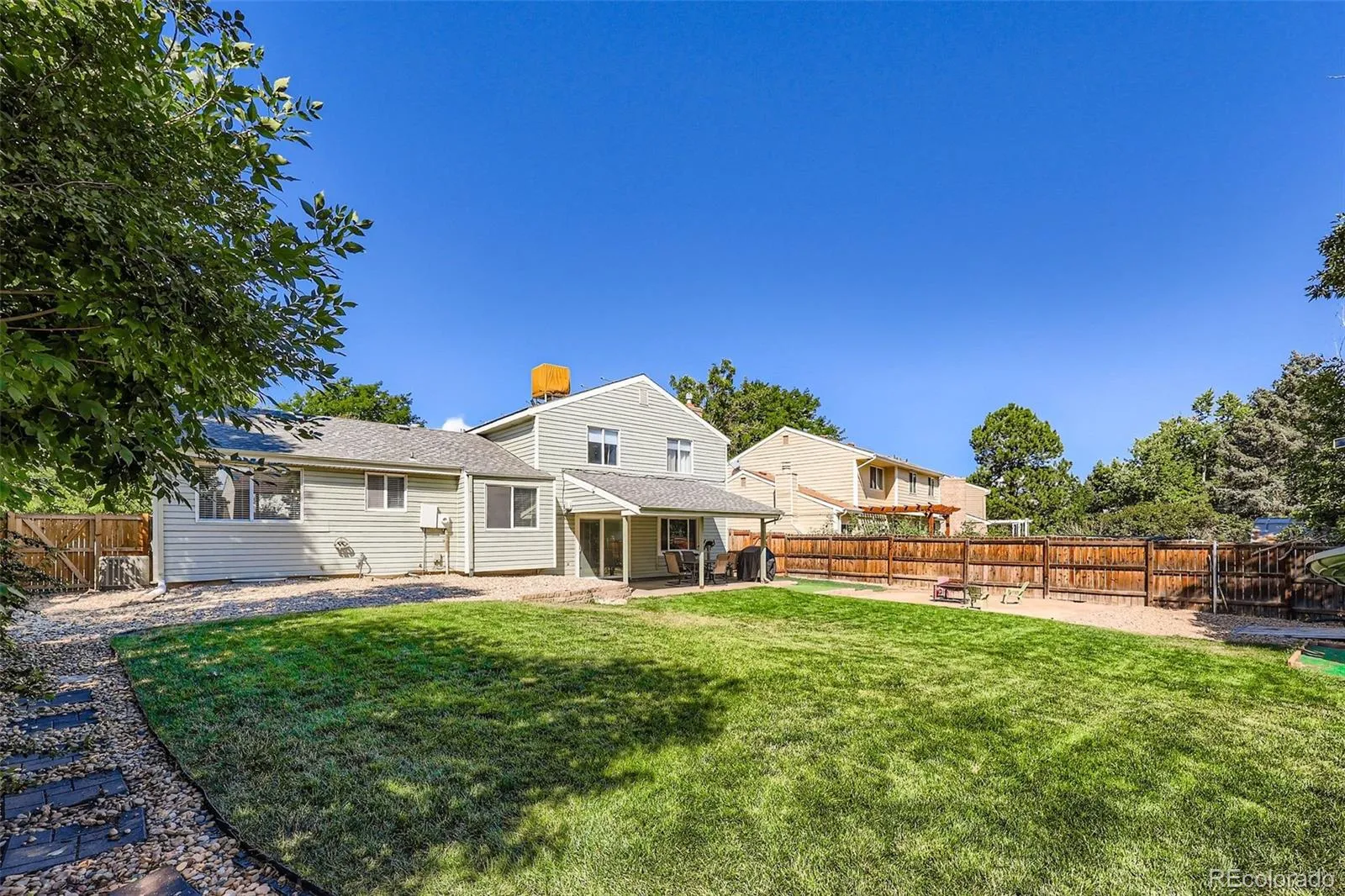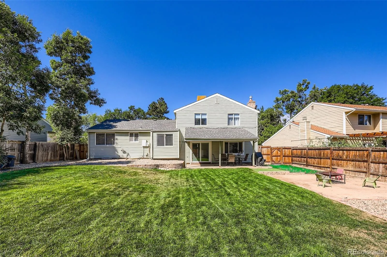 Welcome to this beautifully updated home tucked away on a quiet cul-de-sac in one of Littleton’s most desirable covenant-free neighborhoods with no HOA. Bring your RV, there’s parking for that too! The home features a brand-new roof and gutter system has been installed. A new radon mitigation system, and a newer HVAC for peace of mind. Inside, the spacious primary suite boasts stunning bamboo floors and an updated ensuite bathroom. Secondary bedrooms feature wainscoting, ceiling fans, and bamboo flooring, and share a gorgeous full bathroom remodel. The updated kitchen is a true highlight with recessed lighting, tile backsplash, stainless steel appliances, a large island with seating, and an adjoining dining area. The open-concept main floor living area with beautiful hardwood floors is perfect for entertaining, while the lower-level family room with cozy gas fireplace provides access to the covered back patio.