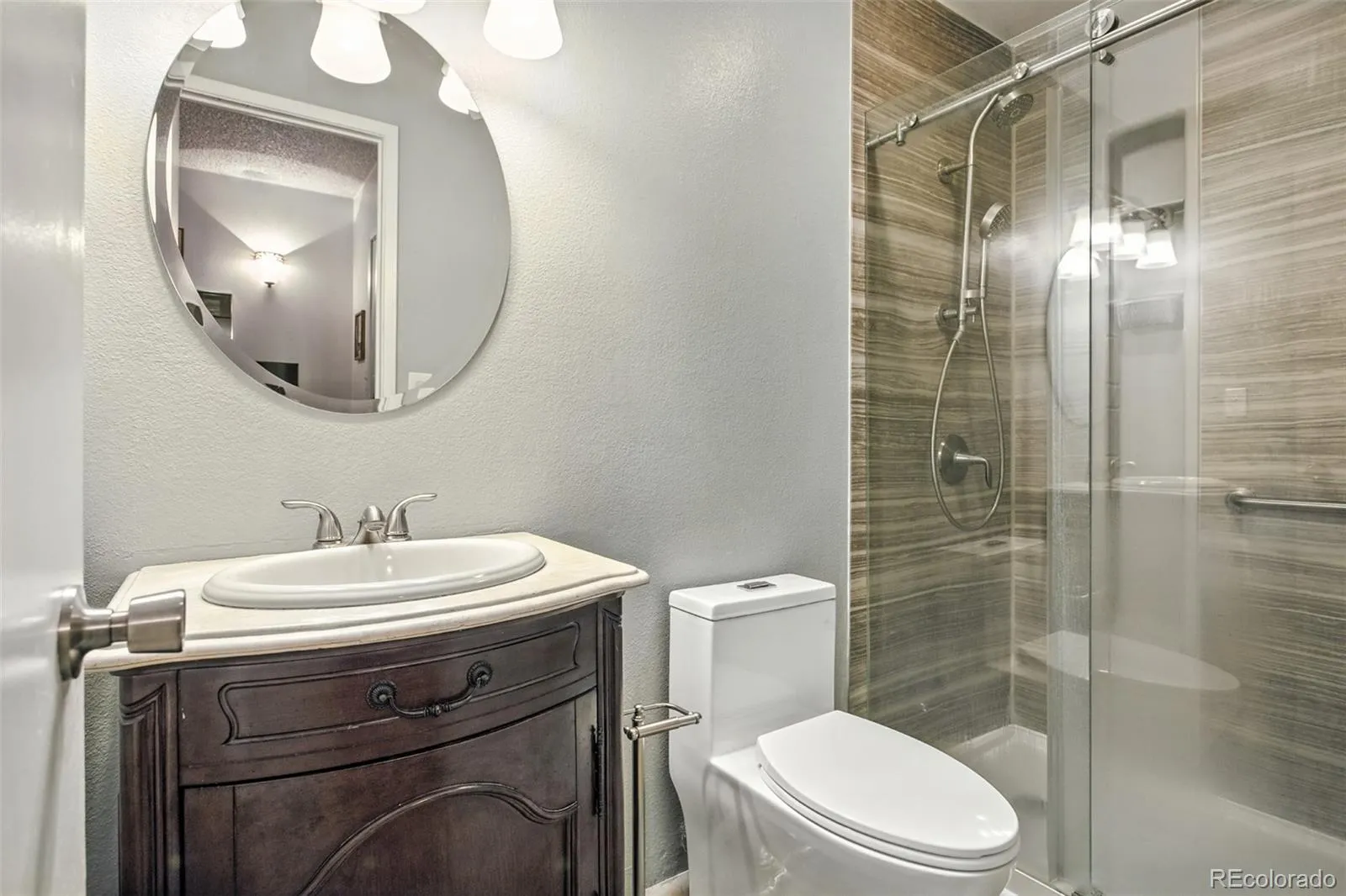 All luxury bathrooms feature brand-new one-piece toilets which have been fully transformed w/ large-format Sandstone tile, modern new vanities, and elegant walk-in Kohler showers bringing high-end design into your daily routine.