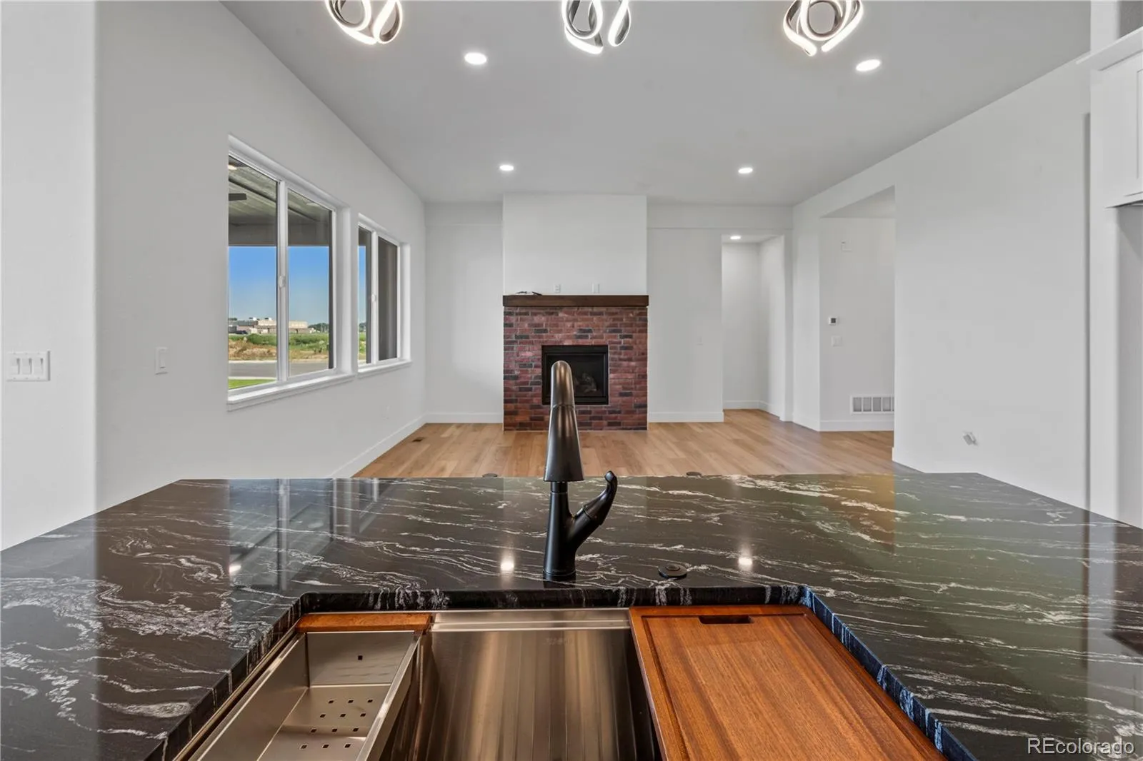 The heart of this home showcases a stunning modern kitchen equipped with a spacious butler’s pantry – perfect for entertaining and everyday living. The open-concept design seamlessly flows into living area, anchored by a cozy gas fireplace that creates the perfect ambiance for relaxing evenings.
