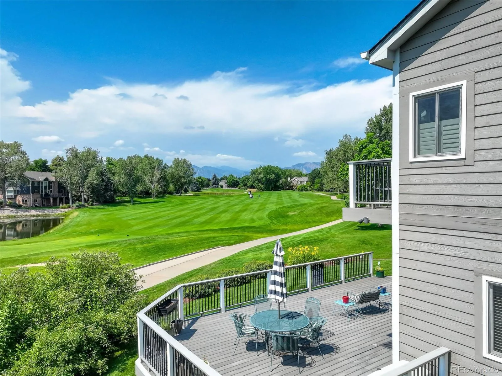 Exceptional home in coveted Coal Creek Ranch seamlessly blends indoor and outdoor living with breathtaking mountain and golf course VIEWS. Backing to a pond and the 11th green, you will love relaxing on the expansive back deck, enjoying the breathtaking views. Designed for ultimate entertaining, the main level features a formal living room, spacious dining room, and a gourmet kitchen that flows effortlessly into the family room. The kitchen boasts a 6-burner Dacor range, warm cherry cabinets, a prep island, and a sunny breakfast area with huge pantry. Soaring ceilings in the family room create an ambiance of openness & an abundance of natural light. A cozy gas fireplace is remote-operated and recirculates heat for chilly winter evenings. The space is also outfitted with Bose surround sound. The main floor bedroom would make the perfect home office or guest quarters with a 3/4 bath. Upstairs, the primary suite offers unbeatable views, a private terrace, and a sumptuous 5-piece bath with soaking tub and walk-in closet. Three secondary bedrooms upstairs are spacious and bright. The lower level is carpeted and ready for your finishes with a water softener and additional refrigerator included. Generously sized 3-car garage is heated and highlighted by epoxy floors, extra storage, and workshop. BRAND NEW CLASS 4, 40-YEAR ROOF tops off the ideal home. This quiet and friendly neighborhood presents fantastic amenities-including a pool, tennis courts, and clubhouse-just minutes from scenic parks, downtown Louisville’s vibrant dining scene, shopping, and Relish Pickleball. This turnkey elegant retreat is an extraordinary opportunity for the discerning buyer.