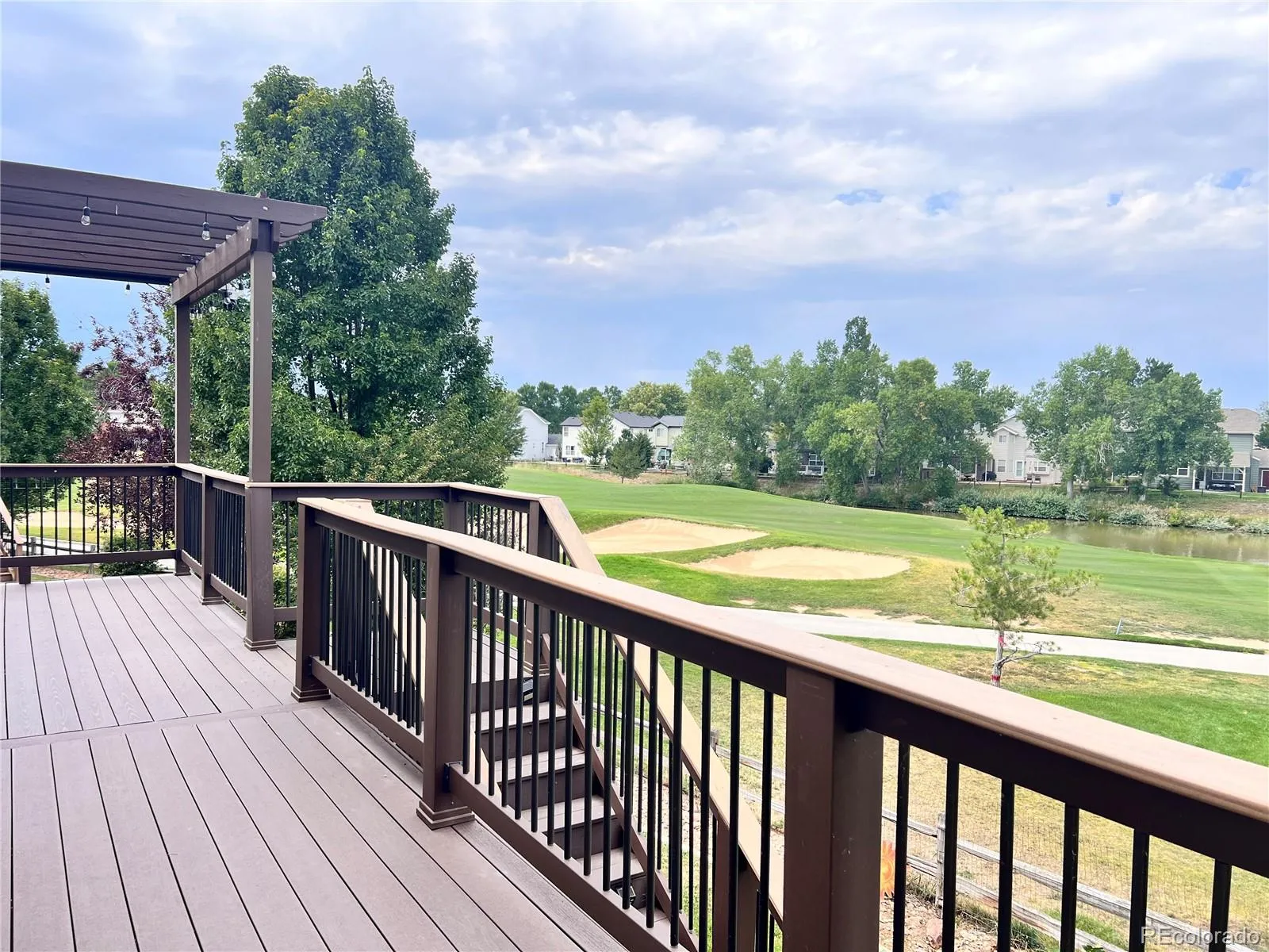 The kitchen shines with refinished white cabinetry, granite counters, and premium Jenair appliances. Step outside to a spacious deck overlooking Thorncreek Golf Course, a tranquil pond, and the Rocky Mountains—perfect for relaxing or entertaining. A lower patio with a hot tub extends your outdoor living space.