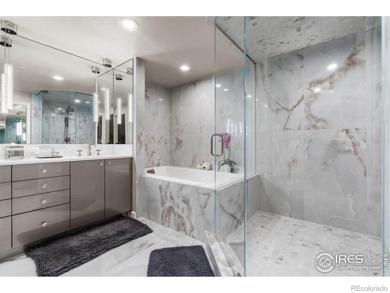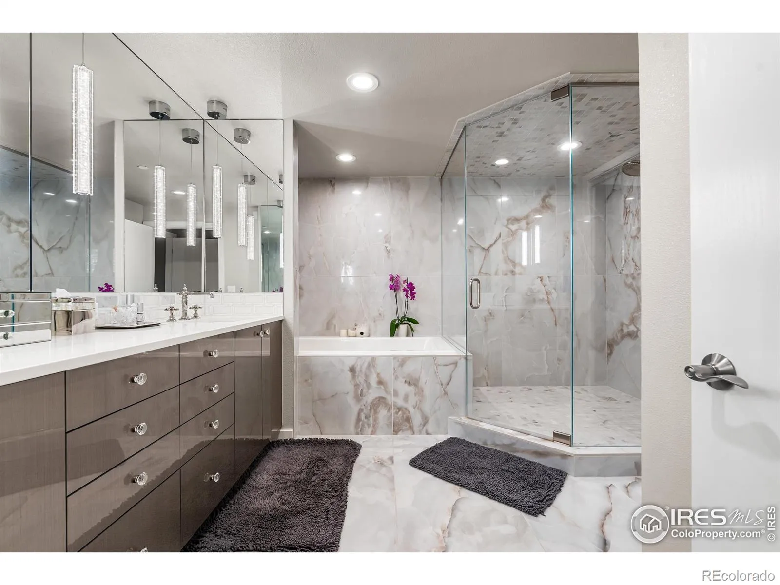 Welcome to resort-style sophistication in the heart of Cherry Hills. Experience comfort, elegance, and ease in this rare southeast-corner residence at the esteemed Waterford Condominiums-an address synonymous with refined resort living and unparalleled views. Thoughtfully created by combining two spacious units, this 2-bedroom, 3-bath home offers an expansive, open-concept layout framed by dramatic floor-to-ceiling windows showcasing breathtaking mountain and city skyline vistas. The gourmet kitchen dazzles with White Macaubas quartzite countertops, Jenn-Air appliances, Bosch dishwasher, Kohler Artifacts faucet, custom rollouts, cushion-close cabinetry, and a perfectly organized pantry. For entertaining, a dedicated wet bar with wine refrigerator adds a touch of sophistication. Wide-plank European White Oak flooring flows throughout, leading to two private bedroom suites-each featuring a spa-inspired 5-piece bath with porcelain tile and deep Kohler soaking tubs. The primary suite boasts a boutique-style walk-in closet designed by Closet Factory, complete with built-in peninsula, quartz countertops, tailored storage, and a hidden ironing board. Waterford’s resort-style amenities include 24-hour staffed security, three deeded secured parking spaces in the heated underground garage, a large storage room, fitness center, indoor/outdoor pool, tennis and pickleball courts, clubhouse with gathering spaces and catering kitchen, plus guest accommodations. Located within Cherry Creek School District, you’re moments from Cherry Creek, the DTC, scenic paths, parks, and fine dining. Welcome to a lifestyle of distinction, comfort, and timeless appeal.