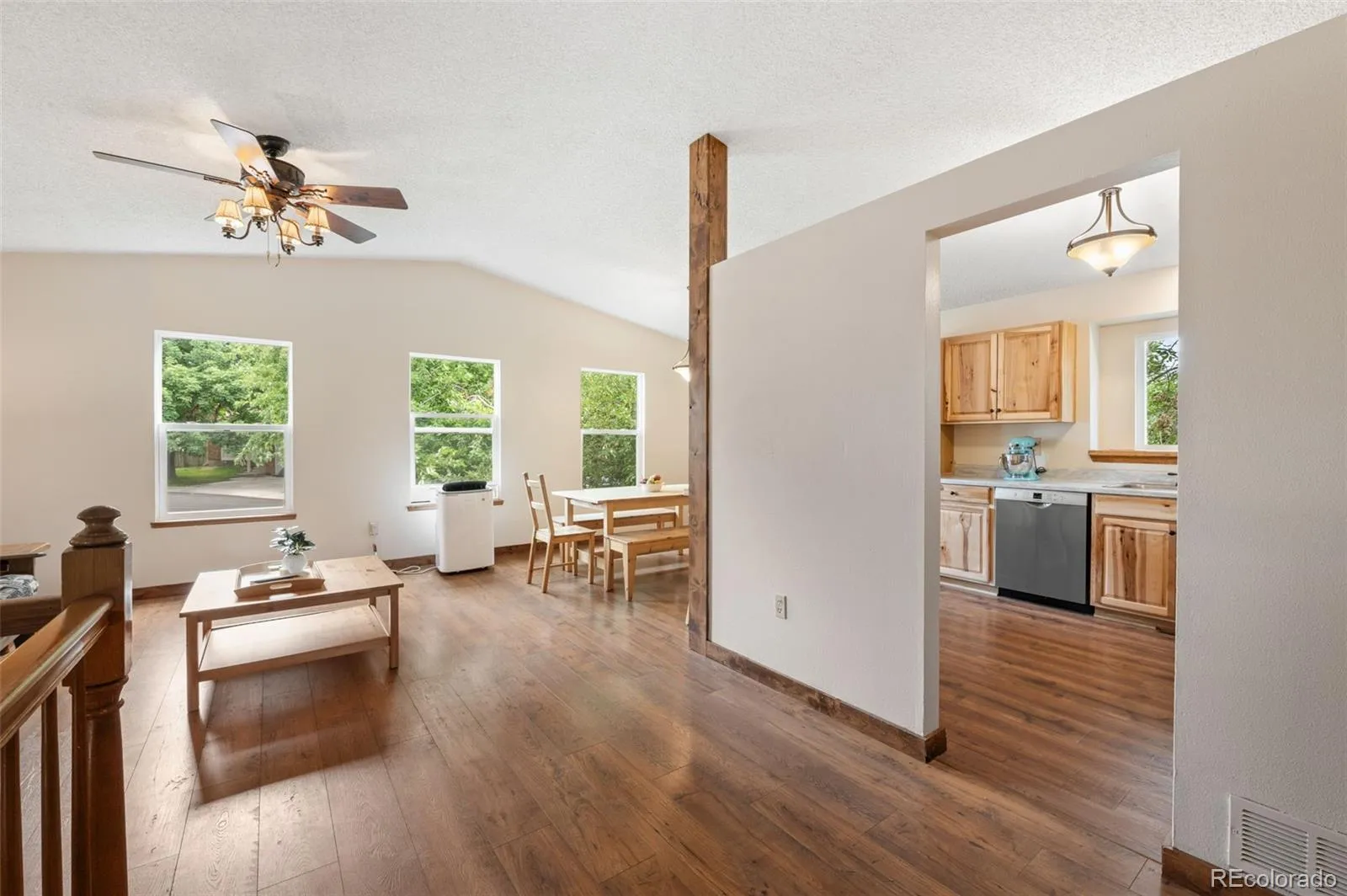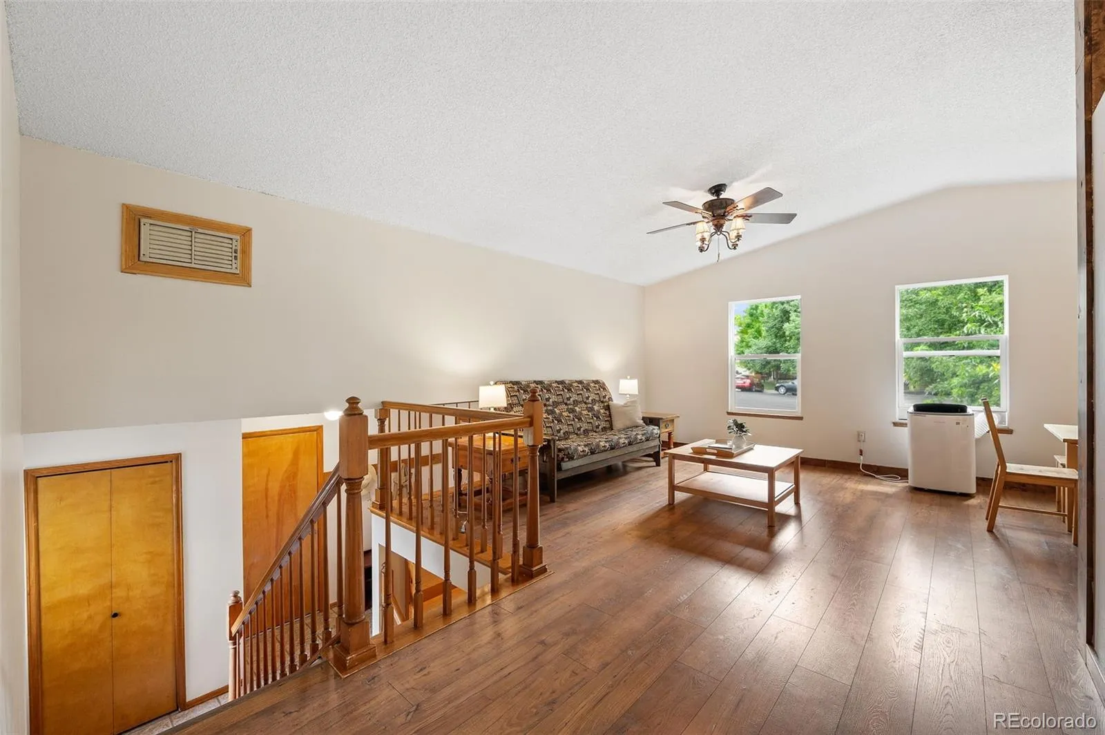 Upstairs, the open living area flows effortlessly into the kitchen and dining space, creating the perfect setting for gathering with friends or enjoying quiet evenings at home. The kitchen invites conversation and creativity — whether it’s a lazy Sunday brunch or a holiday feast. Downstairs, the spacious family room offers a second living area that can flex with your lifestyle — a movie night hangout, a game room, or a cozy retreat for guests. The bedrooms are well-sized, and the two updated bathrooms make mornings run smoothly for everyone. The yard is spacious, a 6 ft. fence & mature trees create shade and privacy, and there’s a fire pit & a garden! Sellers are installing a Class 4 roof & brand-new gutters, providing peace of mind for many years to come.And when you’re ready for fresh air, you’re just down the street from the McCabe Trailhead, part of the scenic Cherry Creek trail system. Whether you love morning jogs, weekend bike rides, or peaceful evening strolls, miles of natural beauty are practically at your doorstep.
