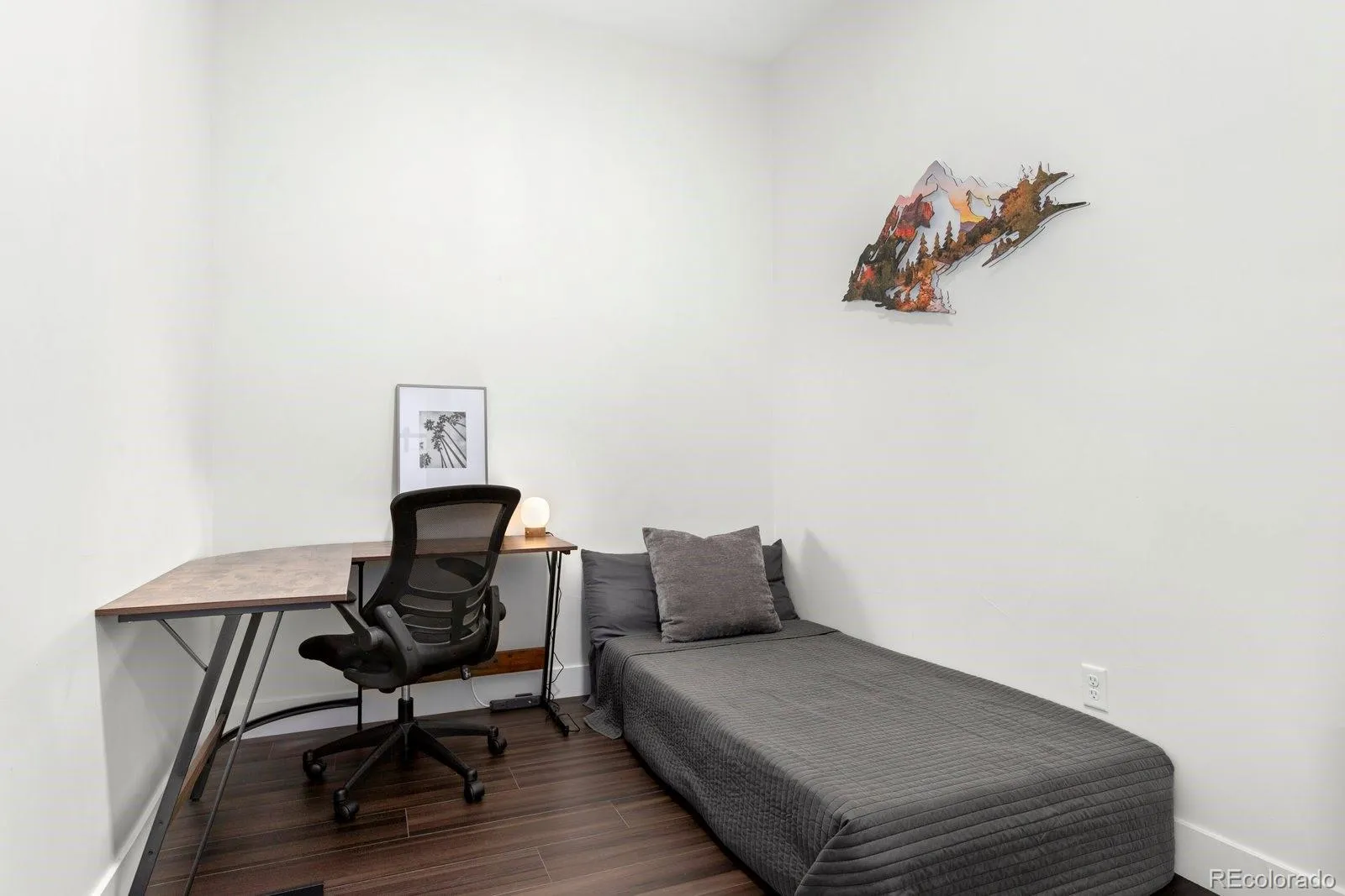 Sleek and stylish, this first-floor condo at Aria Zen Condos brings modern living to the heart of Berkeley. Built in 2022, it features an airy open layout with 10-foot ceilings, 8-foot doors, and expansive windows that fill the home with natural light. The kitchen shines with quartz countertops, stainless steel appliances, and a classic subway tile backsplash, while the primary bedroom includes a walk-in closet and remote-controlled blinds, a $3.5k upgrade. A second bedroom provides flexible use as a study or guest space, and the spacious bathroom is finished with chic tile floors and a deep soaking tub. Additional highlights include in-unit laundry with a full-size washer and dryer, a walk-in pantry behind a modern barn door, a reserved parking space in the secure underground garage, and a dedicated storage unit. The building elevates daily living with amenities such as a yoga studio, pet wash, bike storage, garden, and community room. Perfectly positioned for both city and outdoor access, this condo is just minutes from downtown Denver, Regis University, Starbucks, and neighborhood favorites on Tennyson, The Highlands, and Lowell. With convenient access to I-70, I-76, and I-25, Aria Zen Condos combine lifestyle, location, and modern design. Buyer/Buyer’s agent is responsible for verifying all information, measurements, schools, and HOA rules/fees/regulations.