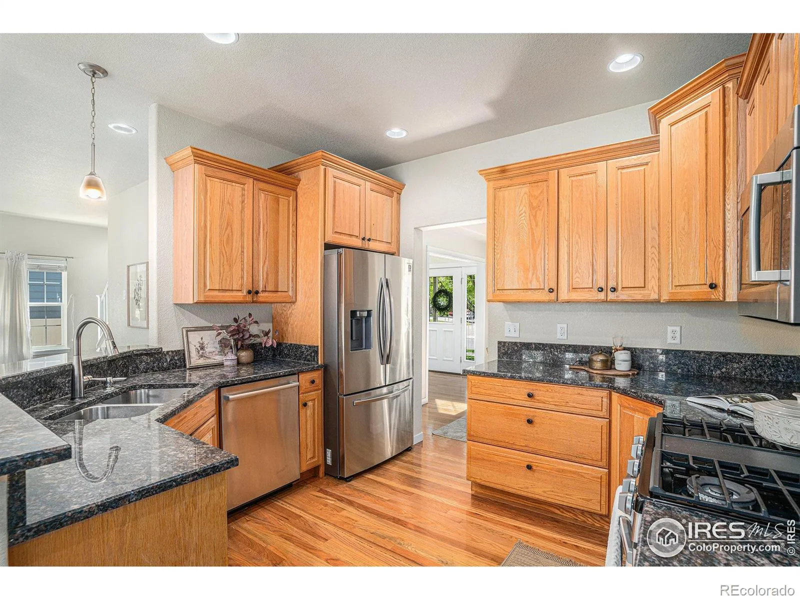 Welcome to this beautiful semi-custom 4-bedroom, 3-bathroom home nestled in a desirable neighborhood just steps from the park! This spacious residence includes an upstairs versatile office/rec room, a 2-car garage, and a thoughtfully designed layout with one bedroom on the main level featuring a connected bathroom-perfect for guests or multigenerational living. The kitchen is a chef’s delight with stainless steel appliances, including a gas cooktop. Energy efficiency comes easy with a fully paid-off solar system, and the property offers freedom with no HOA. The backyard is an entertainer’s dream, featuring an electric covered patio for year-round enjoyment. Don’t miss this move-in ready home with modern upgrades in a prime location!
