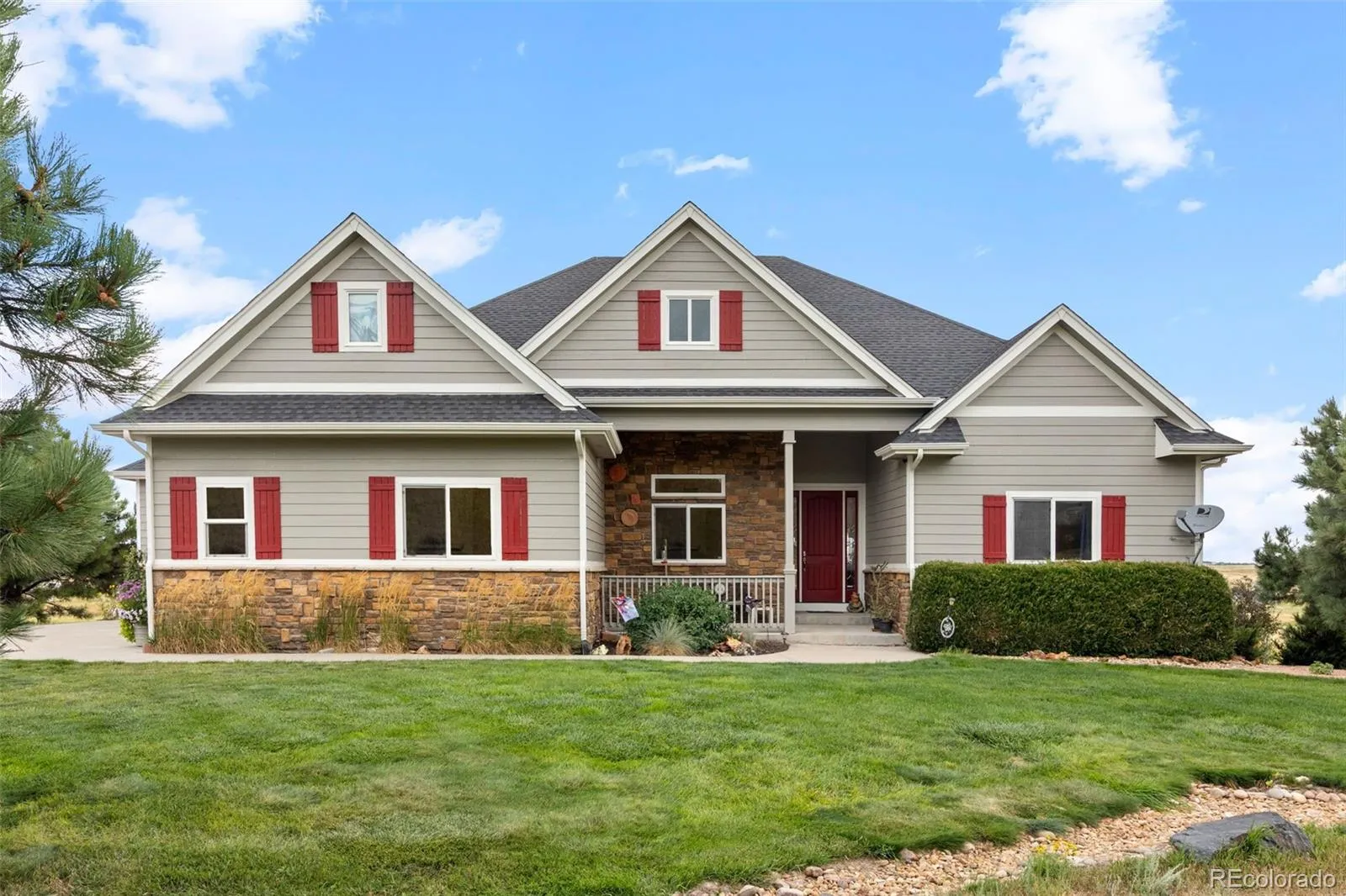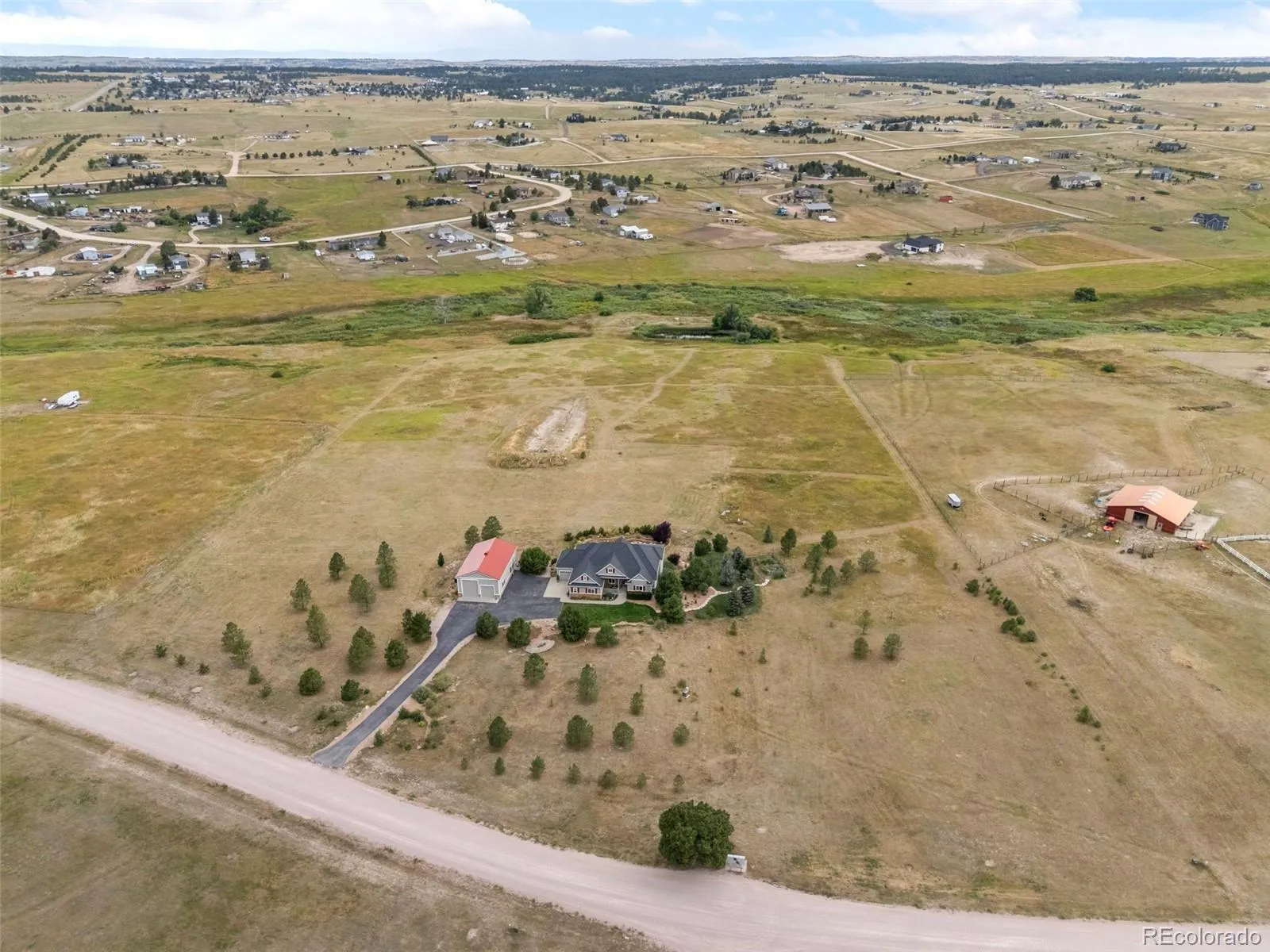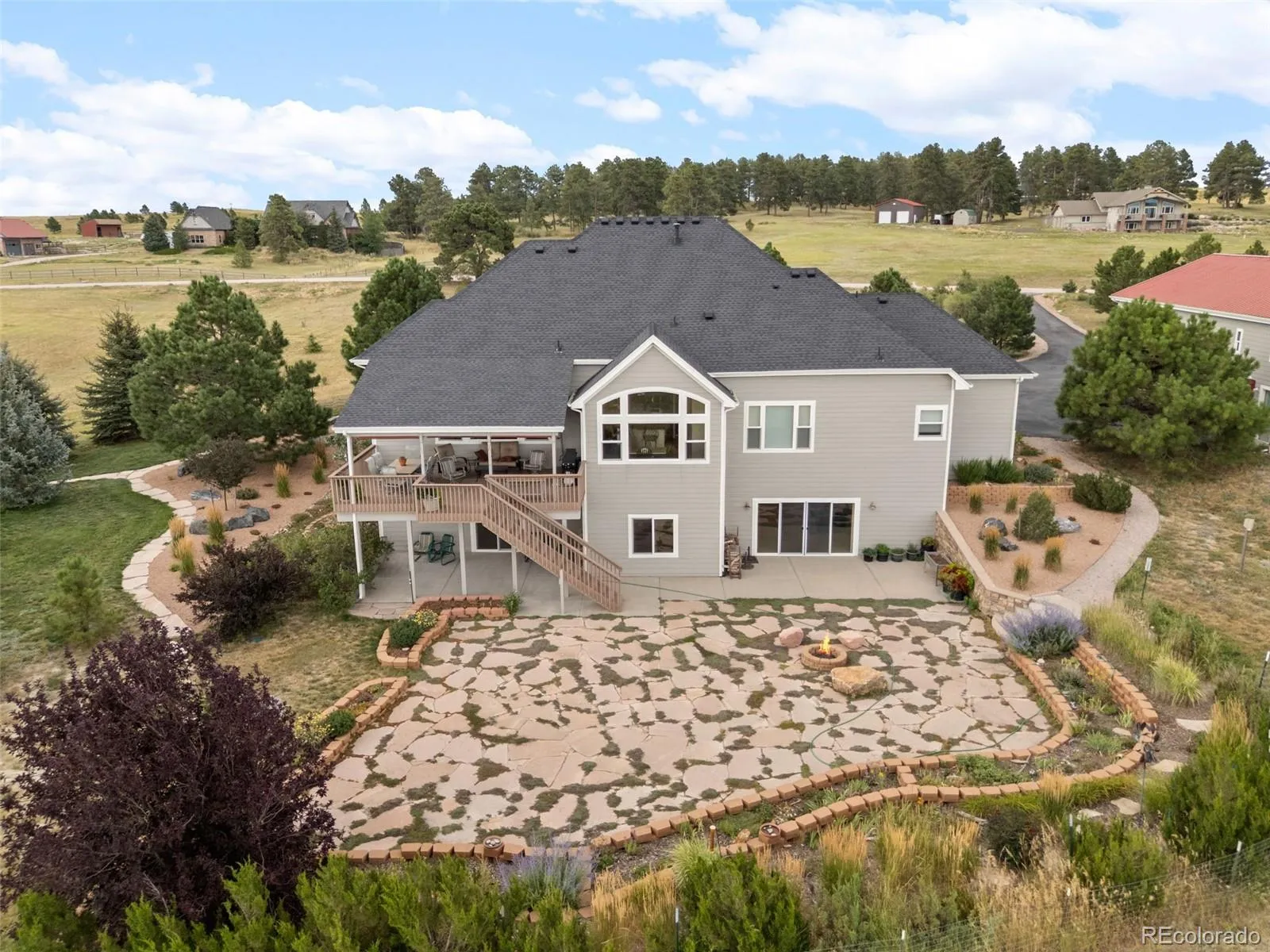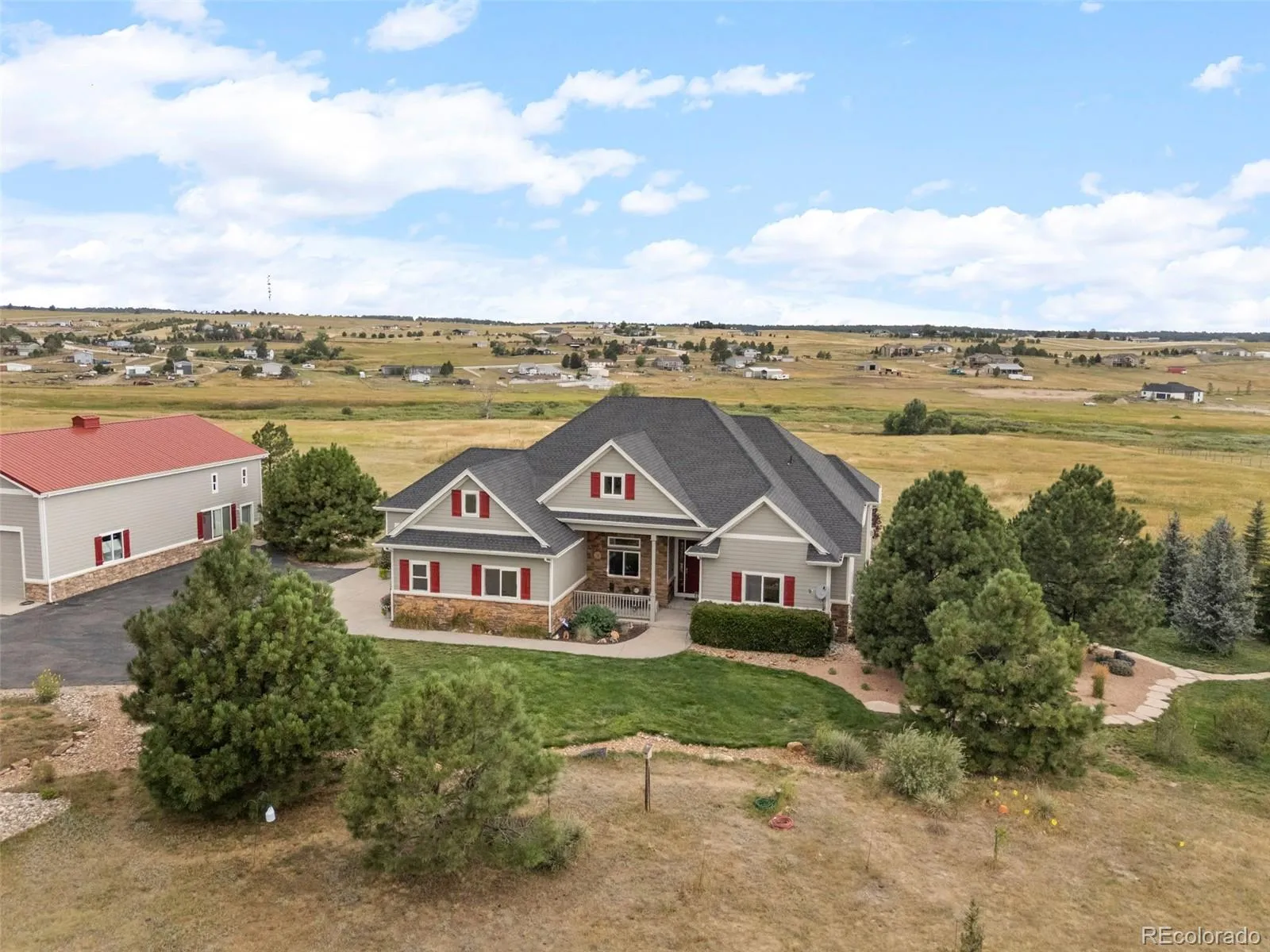 Welcome to your Colorado dream retreat! This sprawling 4,591 sq. ft. ranch-style home on 14.3 acres offers privacy, versatility, and breathtaking views of Pikes Peak—all with no HOA. With 4 bedrooms, 3 bathrooms, and dual primary suites, this home is perfect for multi-generational living or hosting long-term guests. The main floor boasts soaring 14-foot ceilings, a dedicated office with a custom built-in desk with floor-to-ceiling bookcases, and a warm, inviting kitchen featuring granite countertops, stainless steel appliances, pantry, and custom alder cabinetry. The main-floor primary suite offers views galore and a retreat to the jetted tub or large walk-in shower. Additional bedroom and adjoining bathroom on the main floor. The living room showcases a beautiful custom-crafted entertainment center, while the walk-out basement (10-foot ceilings) includes a wet bar with full size refrigerator and huge space for recreation, pre-wired for surround sound! Relax outdoors on the flagstone patio adorned with walkable thyme and a built-in firepit, enjoy the private pond, or soak up the meticulous landscaping, blooming flowers and organic garden. You’ll find mature Spruce, Ponderosa and Austrian Pines, Blue Spruce creating privacy around the home and lot. For hobbyists and adventurers, a 200-foot shooting range and a 30×48 outbuilding with RV garage (12′ & 15′ doors) plus an upstairs workshop provide endless possibilities. The asphalt driveway and Maverix fiber optic internet ensure convenience. Easy access to Highway 86. This home is closer to the town of Elizabeth than it is to Kiowa. Whether you’re seeking space for everyone, room for projects, or simply a peaceful setting close to town, this property delivers the perfect balance of comfort, function, and Colorado beauty.