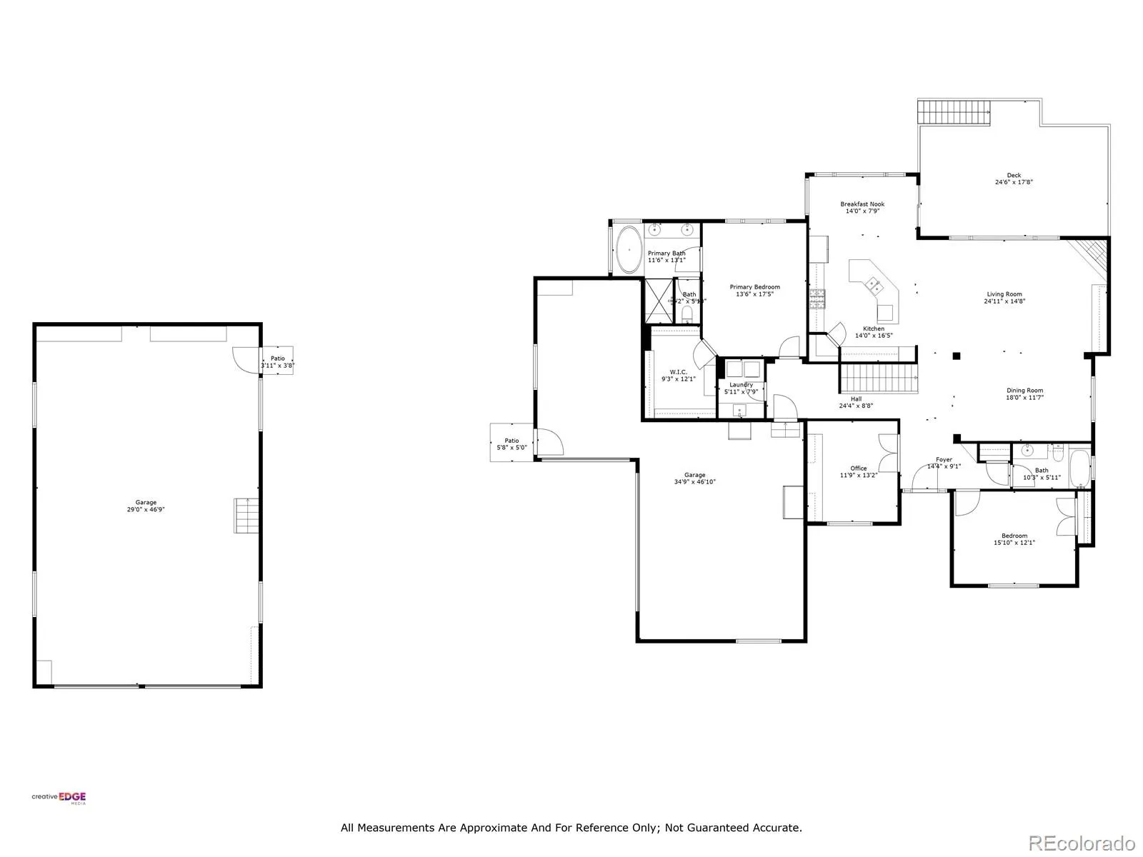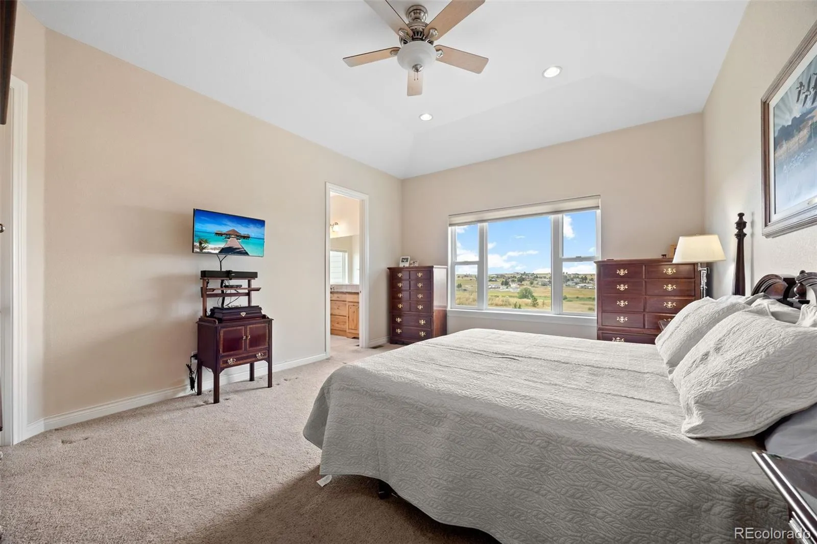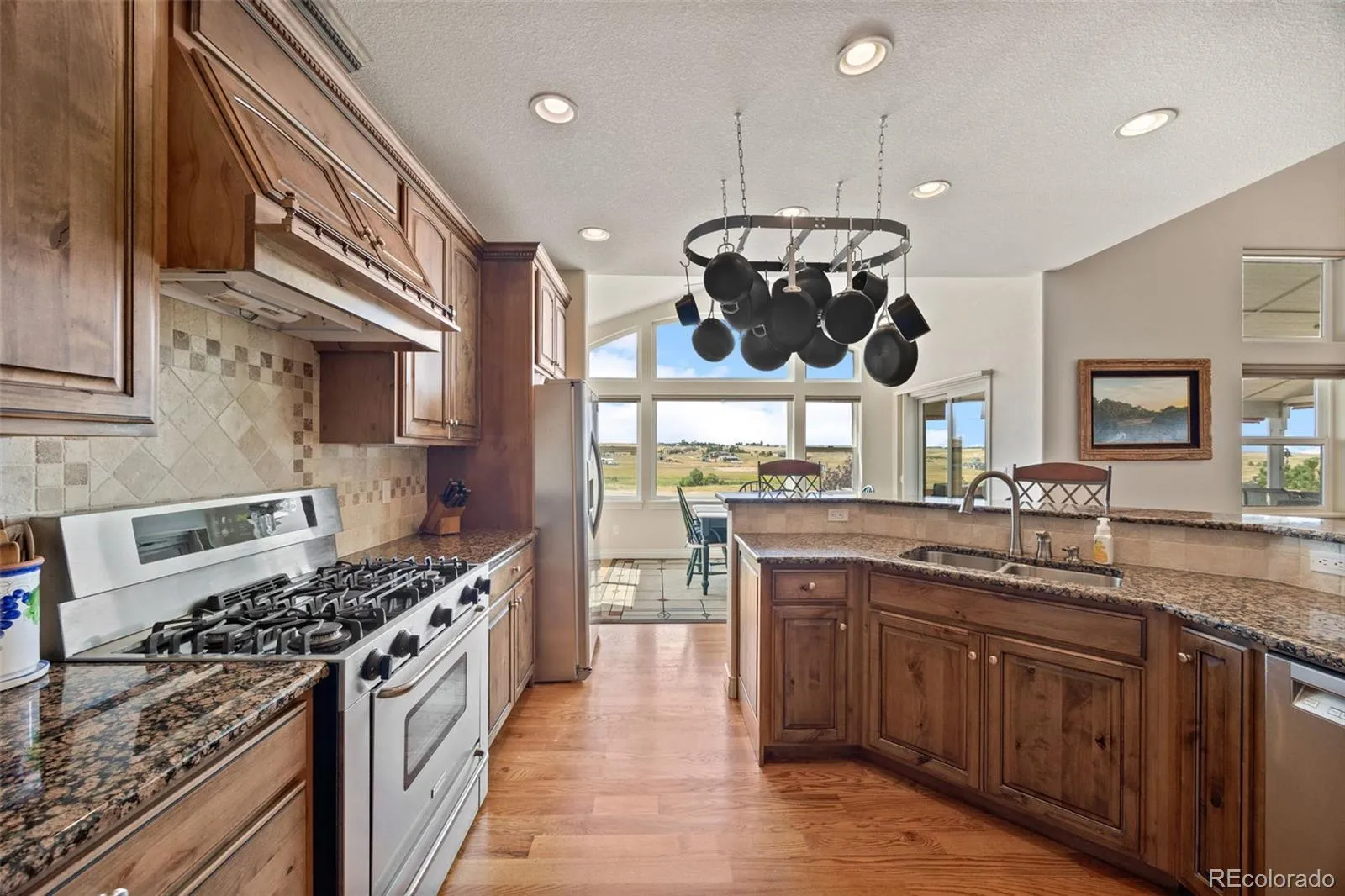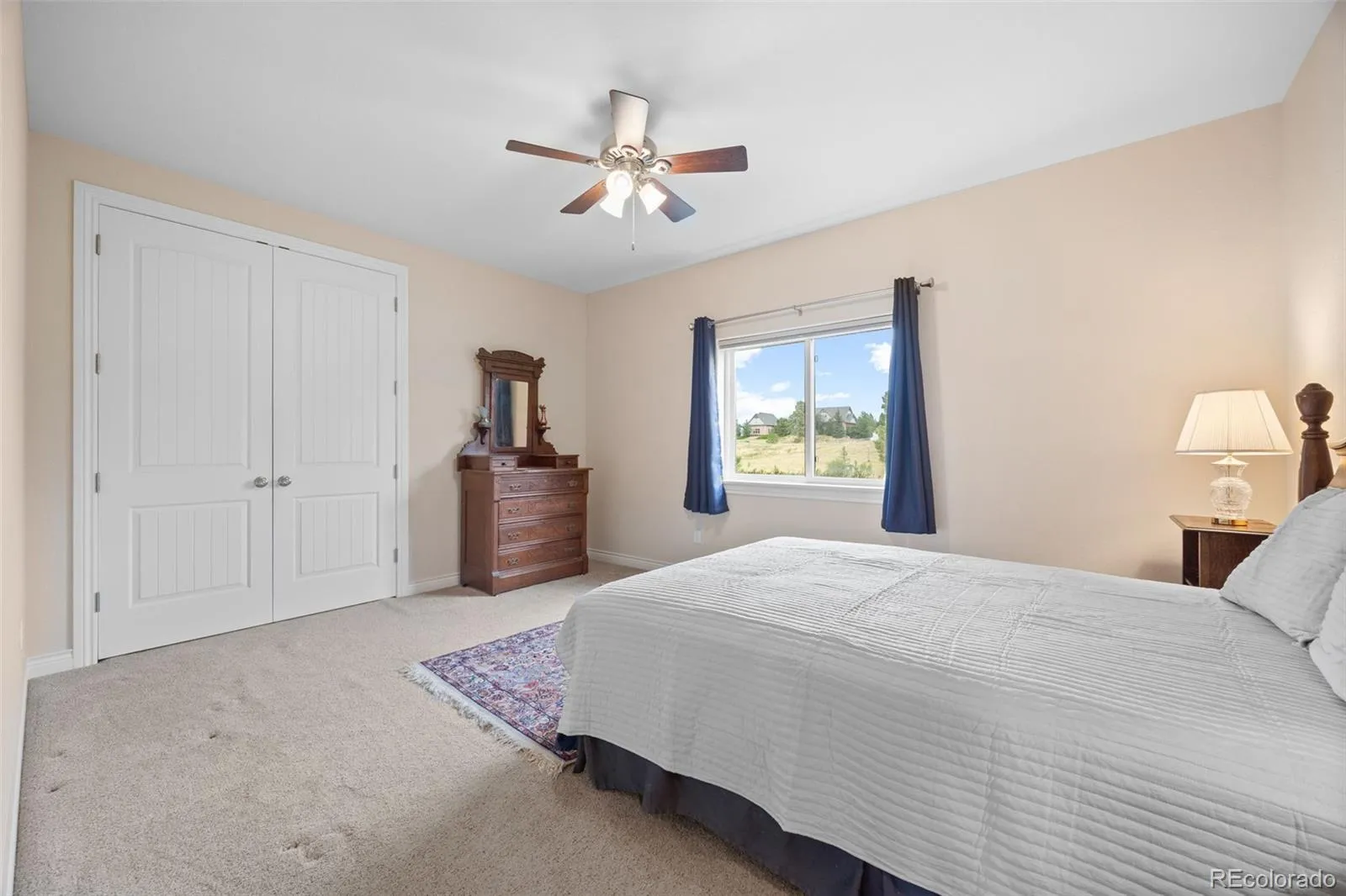 Welcome to your Colorado dream retreat! This sprawling 4,591 sq. ft. ranch-style home on 14.3 acres offers privacy, versatility, and breathtaking views of Pikes Peak—all with no HOA. With 4 bedrooms, 3 bathrooms, and dual primary suites, this home is perfect for multi-generational living or hosting long-term guests. The main floor boasts soaring 14-foot ceilings, a dedicated office with a custom built-in desk with floor-to-ceiling bookcases, and a warm, inviting kitchen featuring granite countertops, stainless steel appliances, pantry, and custom alder cabinetry. The main-floor primary suite offers views galore and a retreat to the jetted tub or large walk-in shower. Additional bedroom and adjoining bathroom on the main floor. The living room showcases a beautiful custom-crafted entertainment center, while the walk-out basement (10-foot ceilings) includes a wet bar with full size refrigerator and huge space for recreation, pre-wired for surround sound! Relax outdoors on the flagstone patio adorned with walkable thyme and a built-in firepit, enjoy the private pond, or soak up the meticulous landscaping, blooming flowers and organic garden. You’ll find mature Spruce, Ponderosa and Austrian Pines, Blue Spruce creating privacy around the home and lot. For hobbyists and adventurers, a 200-foot shooting range and a 30×48 outbuilding with RV garage (12′ & 15′ doors) plus an upstairs workshop provide endless possibilities. The asphalt driveway and Maverix fiber optic internet ensure convenience. Easy access to Highway 86. This home is closer to the town of Elizabeth than it is to Kiowa. Whether you’re seeking space for everyone, room for projects, or simply a peaceful setting close to town, this property delivers the perfect balance of comfort, function, and Colorado beauty.