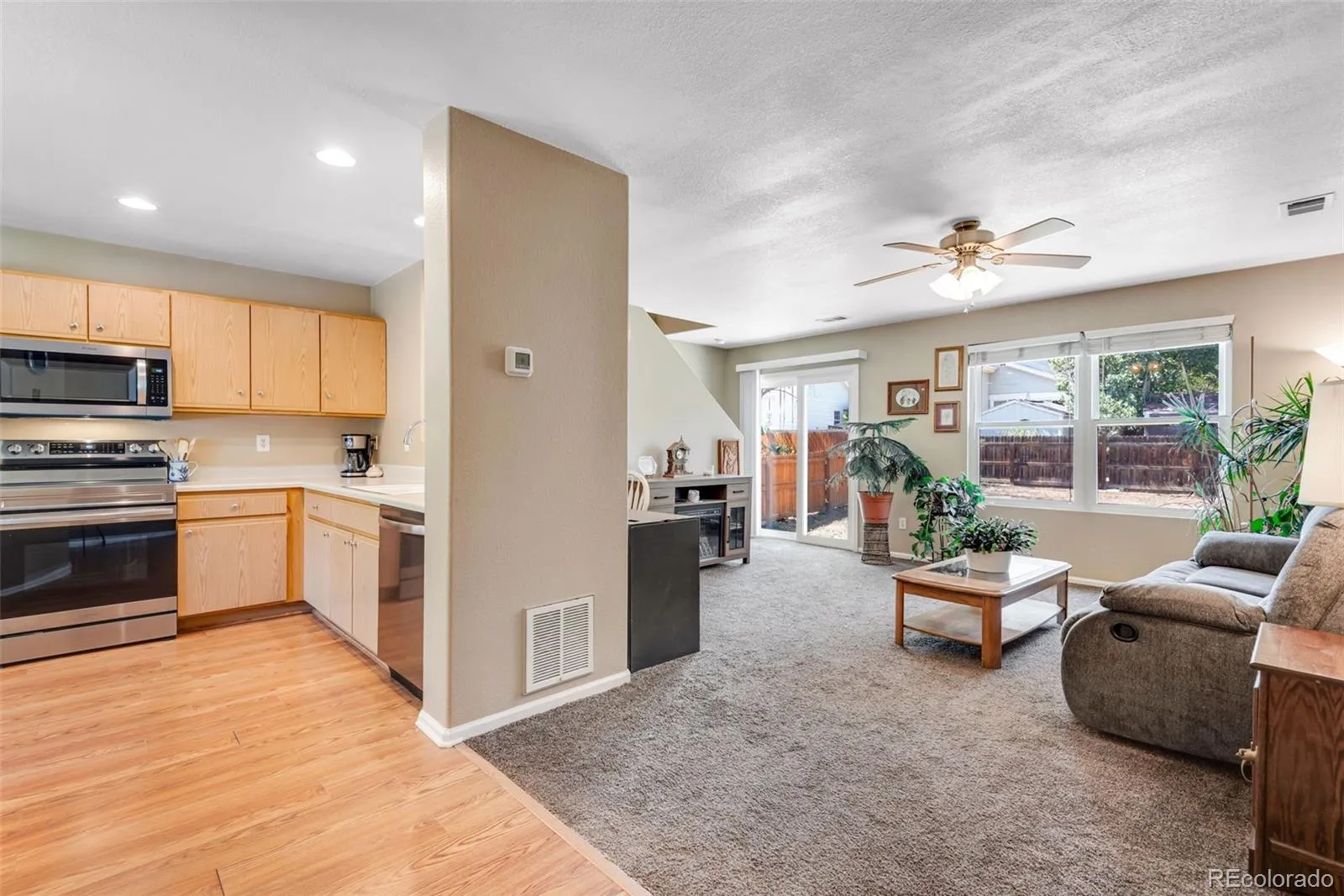Charming Brighton Duplex with Garage & Backyard Potential. Welcome to this well-maintained duplex in Brighton, Colorado with the garage as the common wall—ideally located near Bromley East Charter School, where neighborhood residents enjoy preferential enrollment. This home is just minutes away from multiple parks to enjoy. This home combines thoughtful updates, modern convenience, and a spacious layout, making it perfect for first-time buyers, investors, or those looking to simplify without sacrificing comfort. Step inside to a rare main-floor half bath and a spacious living room that flows into the kitchen and eat-in dining area. The kitchen features sleek stainless steel appliances—most just 2 years old—and a brand-new microwave. Ceiling fans throughout help keep the space comfortable in every season. Upstairs, you’ll find two bright bedrooms, a full bathroom, and an upstairs laundry area for added ease. The larger bedroom includes dual closets for generous storage. Newer windows (installed 5 years ago) bring in great natural light and improve energy efficiency. The attached 1-car garage offers convenience and extra storage, while the beautifully landscaped front yard—with mature trees—provides shade, privacy, and great curb appeal. The backyard is spacious and ready for your vision: whether you dream of a garden, patio, or play area, there’s plenty of room to create the outdoor space you want. Living in Brighton offers a unique blend of small-town charm and big-city convenience. Located just 20 miles from downtown Denver and 20 minutes from Denver International Airport, it’s ideal for commuters and frequent travelers. The city also boasts Barr Lake State Park, over 960 acres of parkland, and more than 27 miles of trails for year-round outdoor fun. This bright and functional duplex is move-in ready with room to grow—inside and out. Don’t miss the chance to own a home in one of the metro area’s most accessible and community-focused towns.