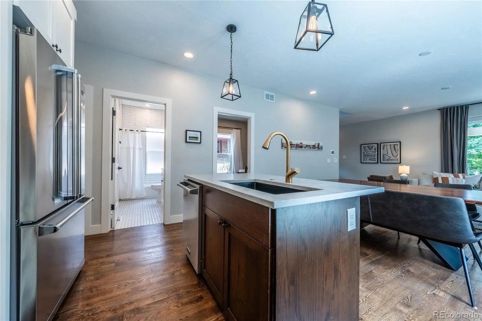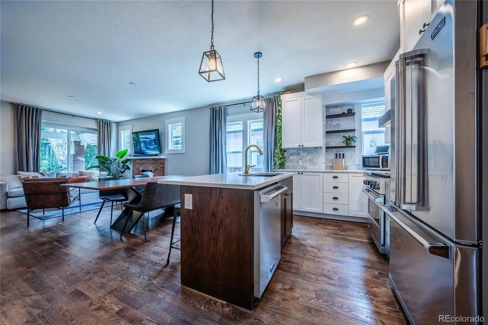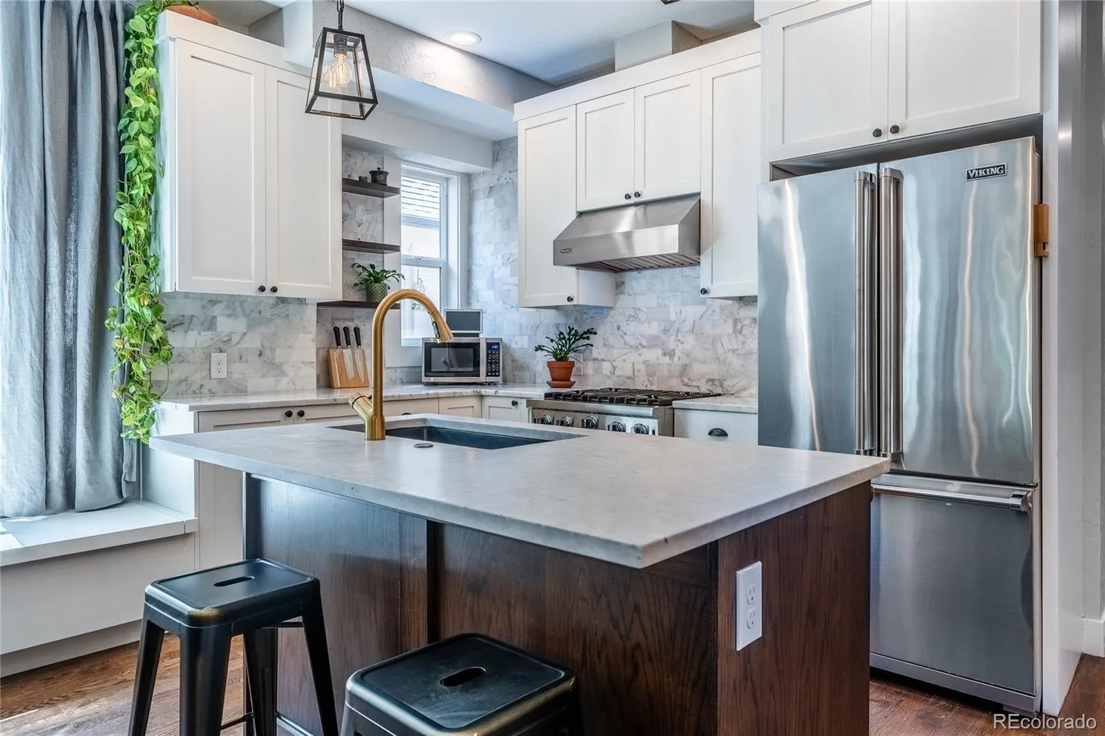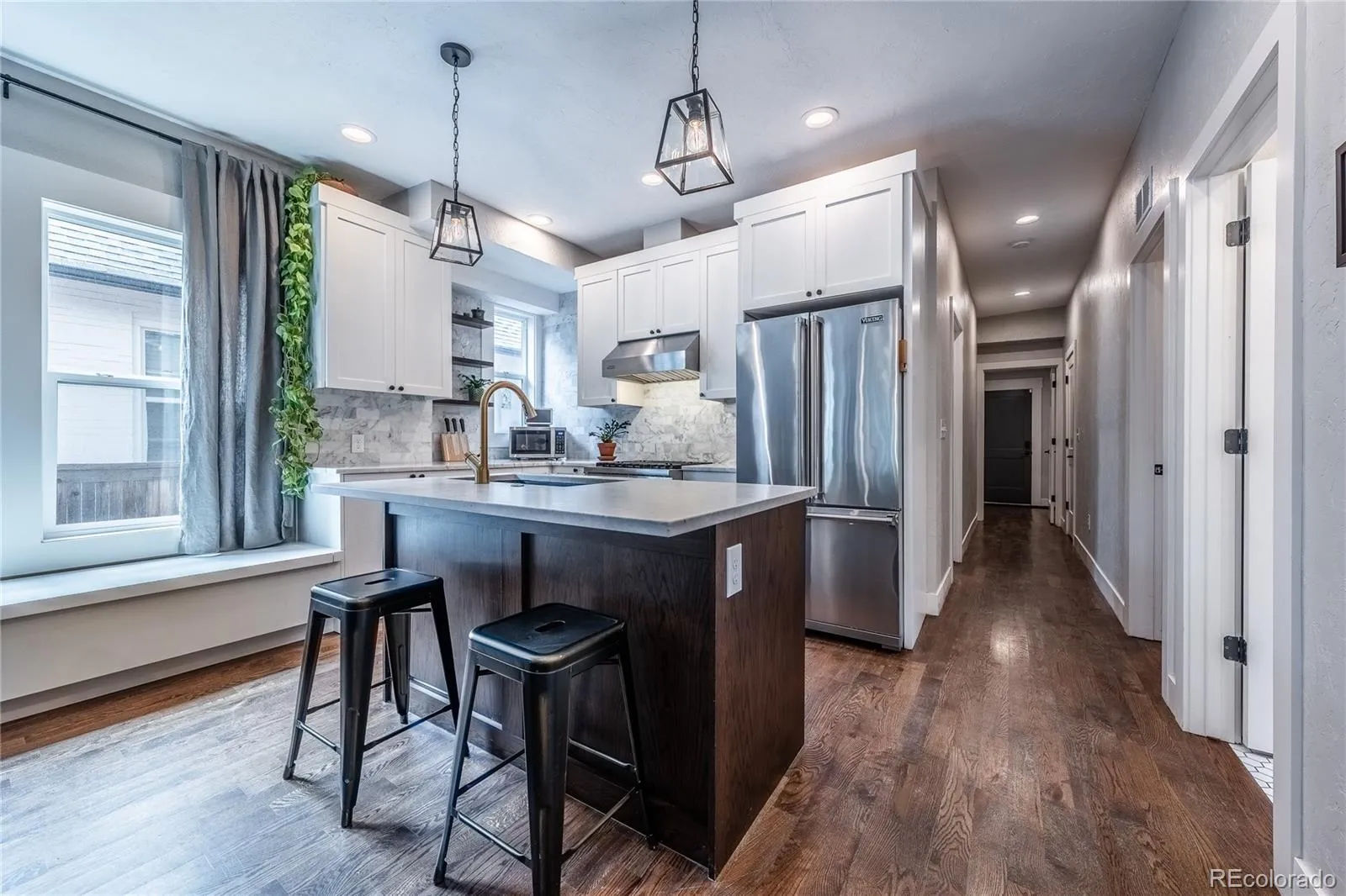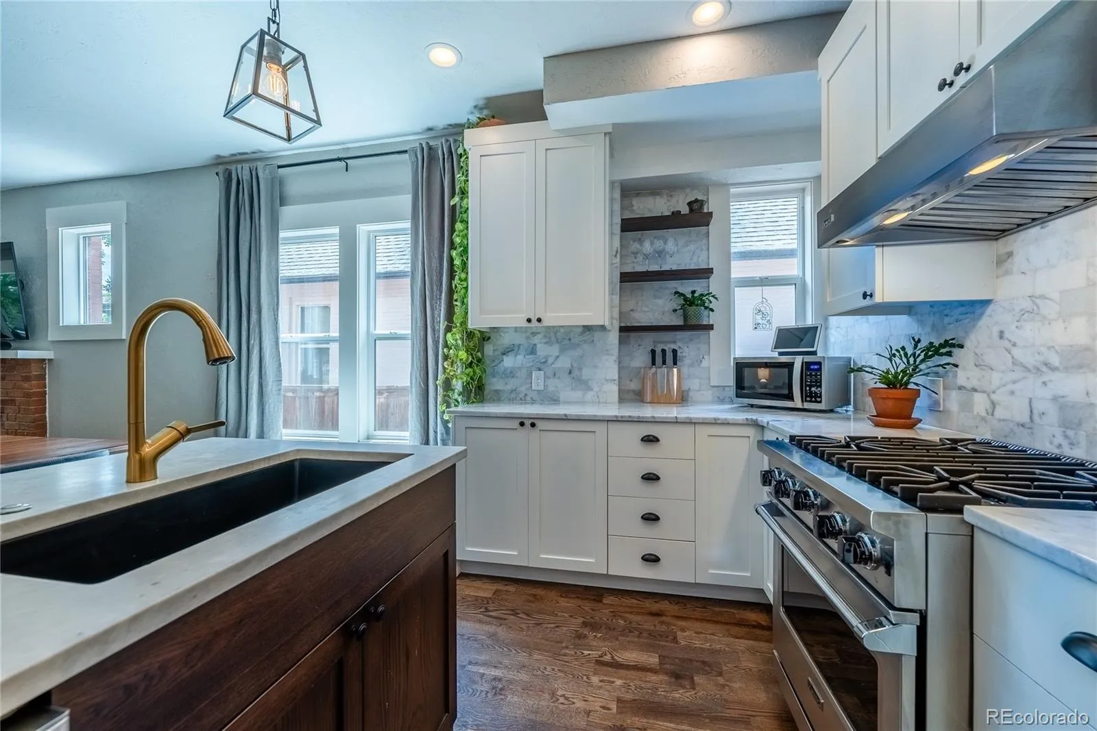 Congress Park Stunner! Welcome to this beautifully remodeled 5-bedroom, 3-bathroom Congress Park home, blending historic charm with modern luxury. From the inviting covered front porch framed by exposed beams and classic brickwork to the thoughtfully redesigned interior, every detail shines. Step inside to an open, light-filled floor plan with large windows, and hardwood floors throughout. The spacious living room flows into the dining area and chef’s kitchen, creating the perfect great-room experience. The kitchen is a showstopper, featuring marble countertops, Viking appliances with gas range, crisp white shaker cabinetry, and a built-in window seat with extra storage.The main-floor primary suite offers dual closets and a spa-like 5-piece bath with marble tile, dual sinks, and abundant natural light. The main floor also features two additional bedroom spaces and a beautifully redone hall bathroom. Upstairs, find two larger bedrooms, a full bathroom, convenient laundry area for full-size appliances, and a versatile loft space—perfect for an office, lounge, or make the entire upstairs a primary suite! The finished basement provides room for recreation, fitness, and entertainment, plus a concrete-floored crawl space for storage. Outside, the backyard has been completely redone with a stamped concrete patio (lifetime warranty!), dedicated grill space topped with a pergola, and lush landscaping—ideal for both relaxing and entertaining. Additional features include newer HVAC, tankless water heater, updated appliances, and a 2-car detached garage with a 240V power. This Congress Park gem is truly move-in ready, combining timeless architecture, thoughtful upgrades, and modern convenience in one perfect package.