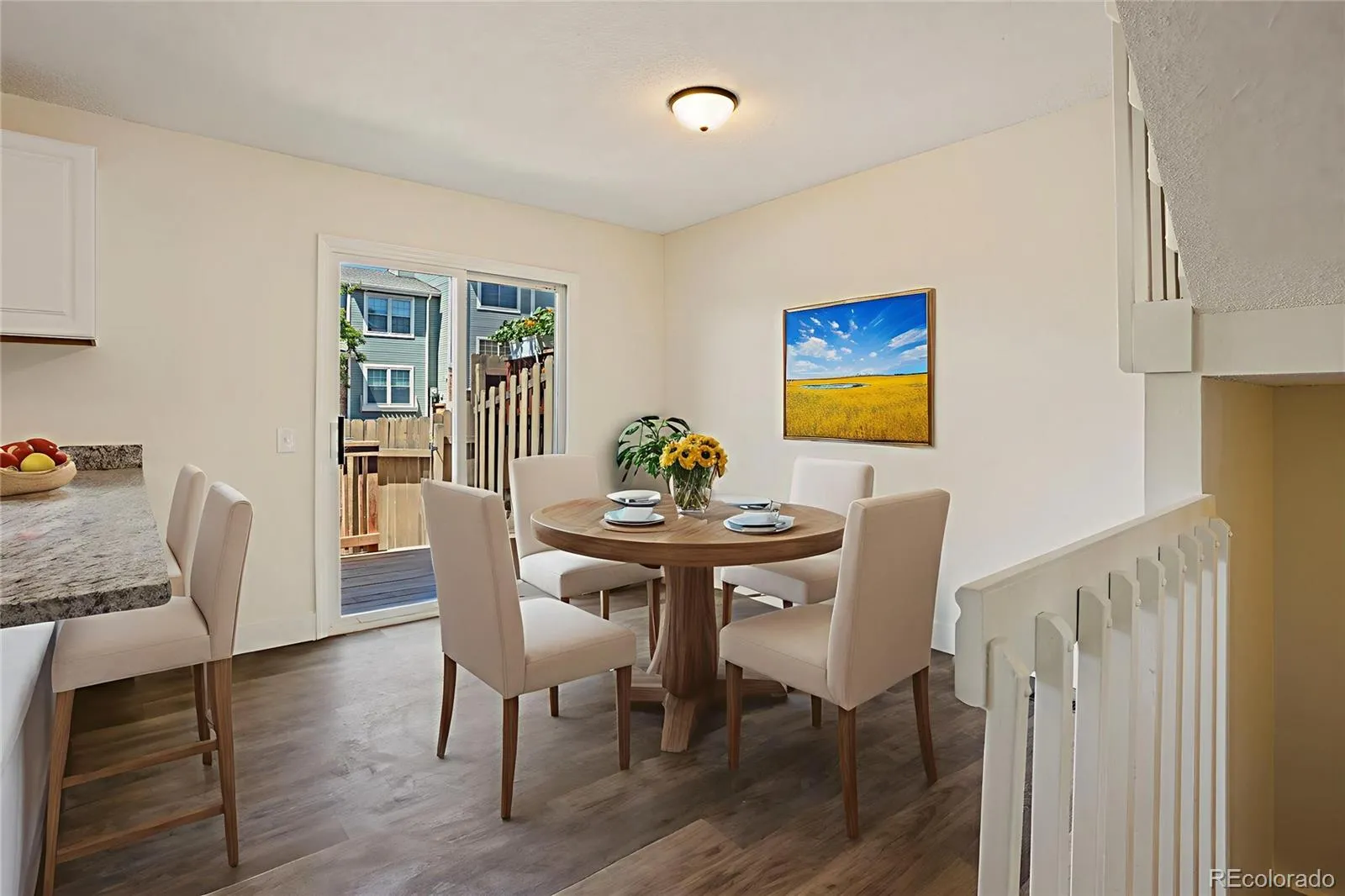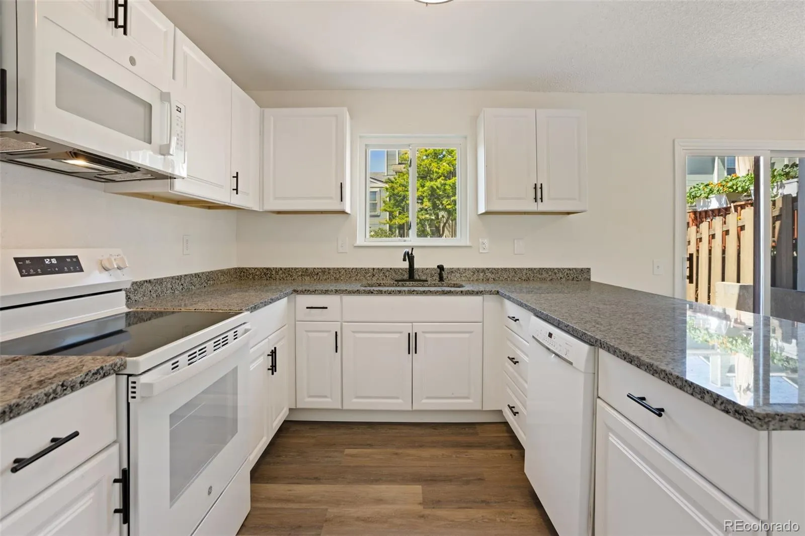 Welcome to this beautifully renovated townhome offering 3 bedrooms, 2 bathrooms, and 2-car assigned parking spots. The main level welcomes you with a spacious living room, complete with a cozy wood-burning fireplace and built-ins, all set against new luxury vinyl flooring. The kitchen features views of the front range, brand-new cabinets, granite countertops, a pantry with custom wood shelving, and a single-bowl sink, along with space for casual dining and a walkout to the deck—perfect for enjoying Colorado’s mountain views. A stylish powder room with quartz counters, a tall vanity, and extra storage completes the main level. Upstairs, the primary suite boasts a double vanity, skylight, built-ins, quartz countertops, and luxury vinyl flooring. Two additional bedrooms showcase front range and Pikes Peak views, cozy carpet, and charming wainscoting accents. The unfinished basement, already plumbed for a future bath, offers endless possibilities for expansion or storage. Updates include new flooring throughout and upgraded kitchen cabinets-among others, giving the home a fresh, modern feel while leaving room for your personal touches. All appliances are included—Refrigerator, Washer, Dryer, and Gas Dryer—making this home move-in ready. Ideally located near shopping, restaurants, and everyday conveniences, and within the highly regarded District 20 schools, this townhome blends comfort, potential, and beautiful mountain scenery. Make this home yours today!