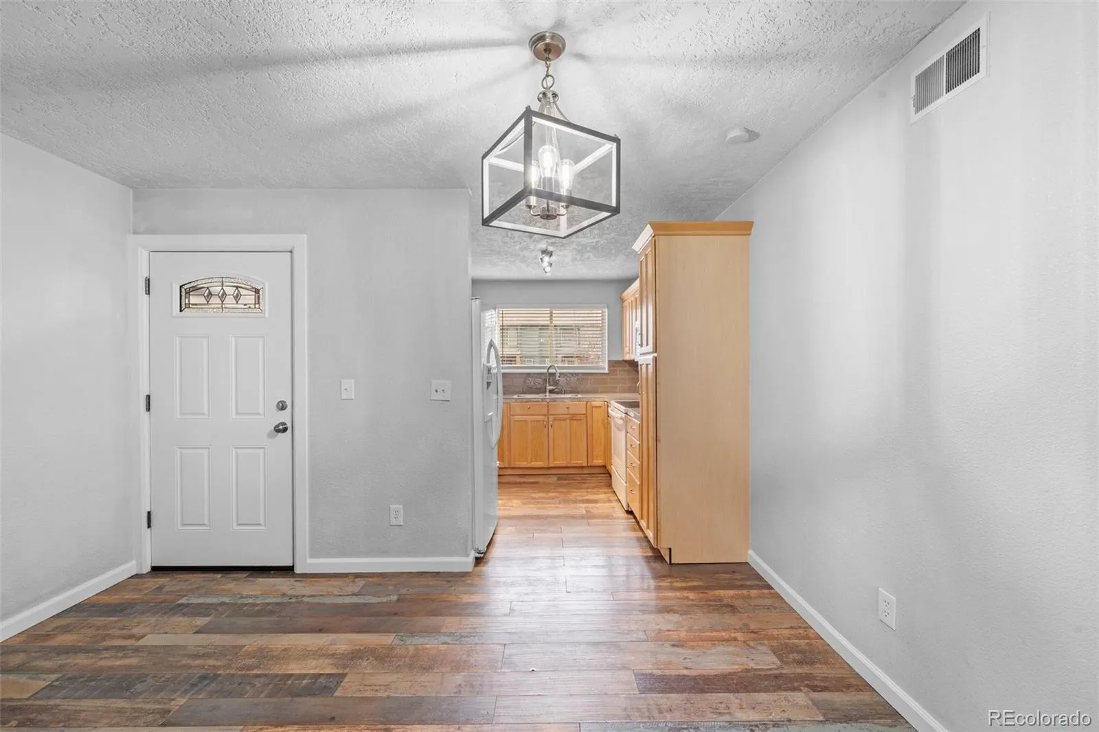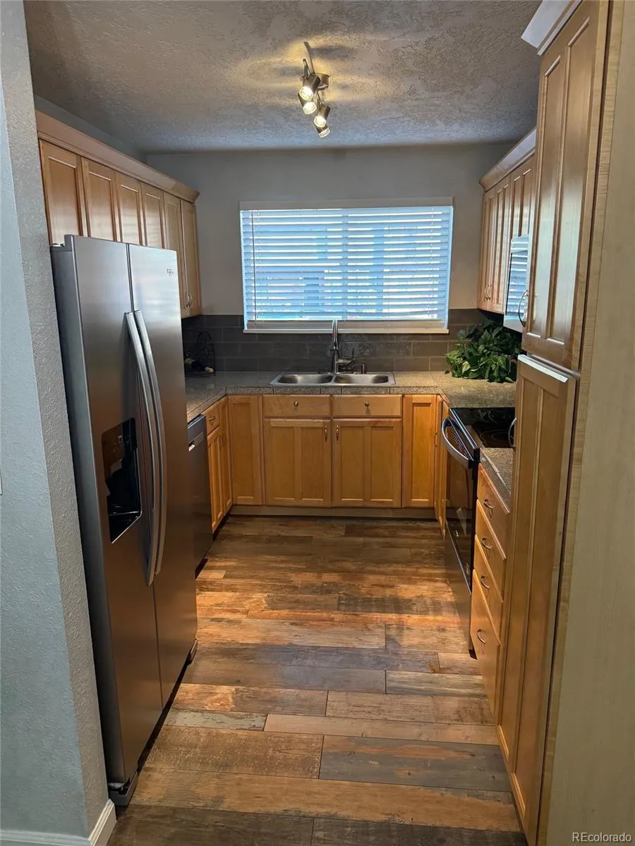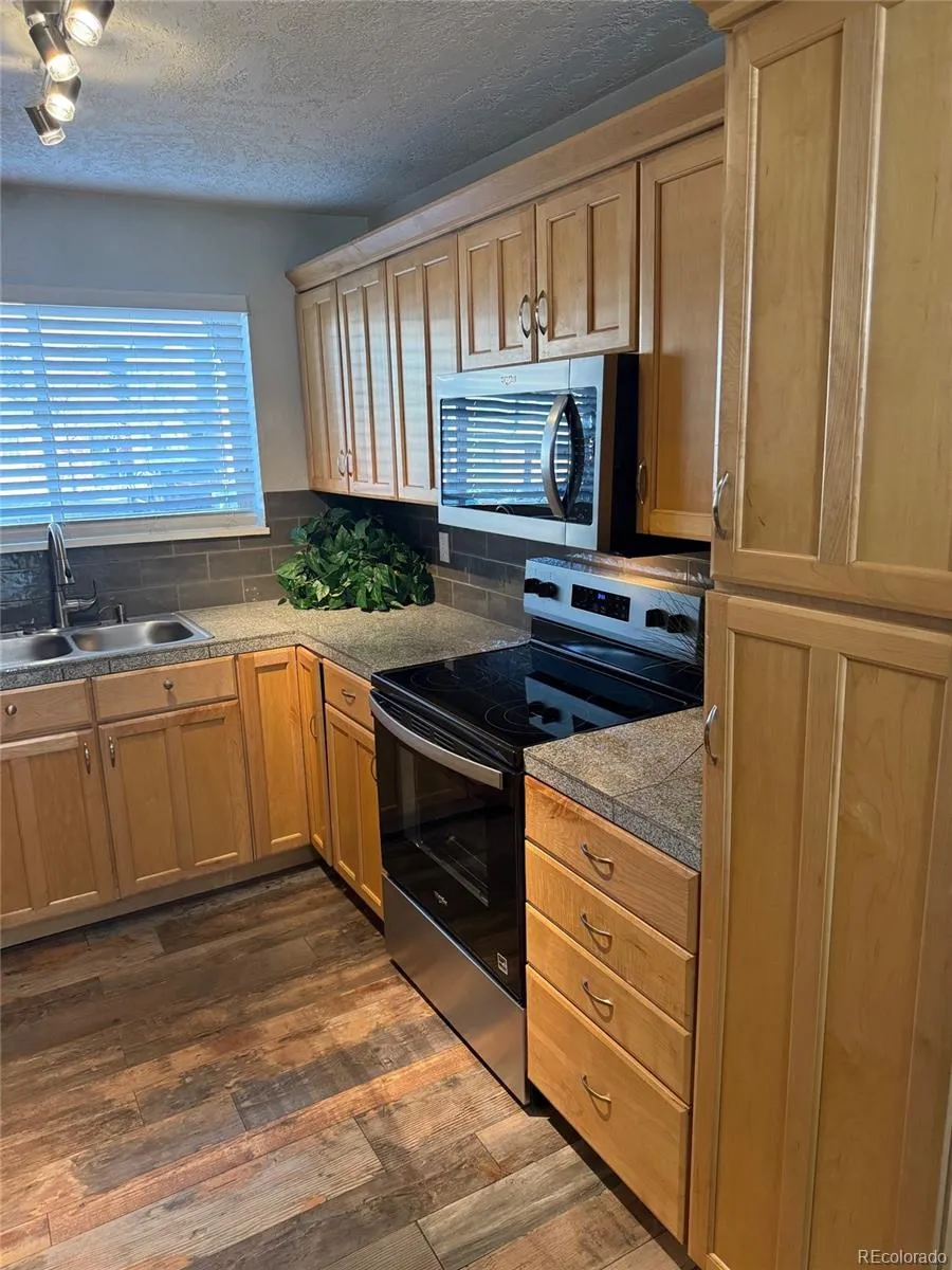 This beautifully updated 2 bedroom, 1 bath condo features an updated kitchen with granite tile countertops, new stainless steel appliances, new backsplash and plenty of storage. Wide plank waterproof flooring expands throughout the unit for a contemporary feel. Central AC and new windows provide for efficient cooling in the summer. Enjoy the serene outdoors with a private patio that backs up to a peaceful greenspace. This condo also includes a reserved parking space, ensuring convenience and peace of mind. Centrally located with easy access to Highway 285.