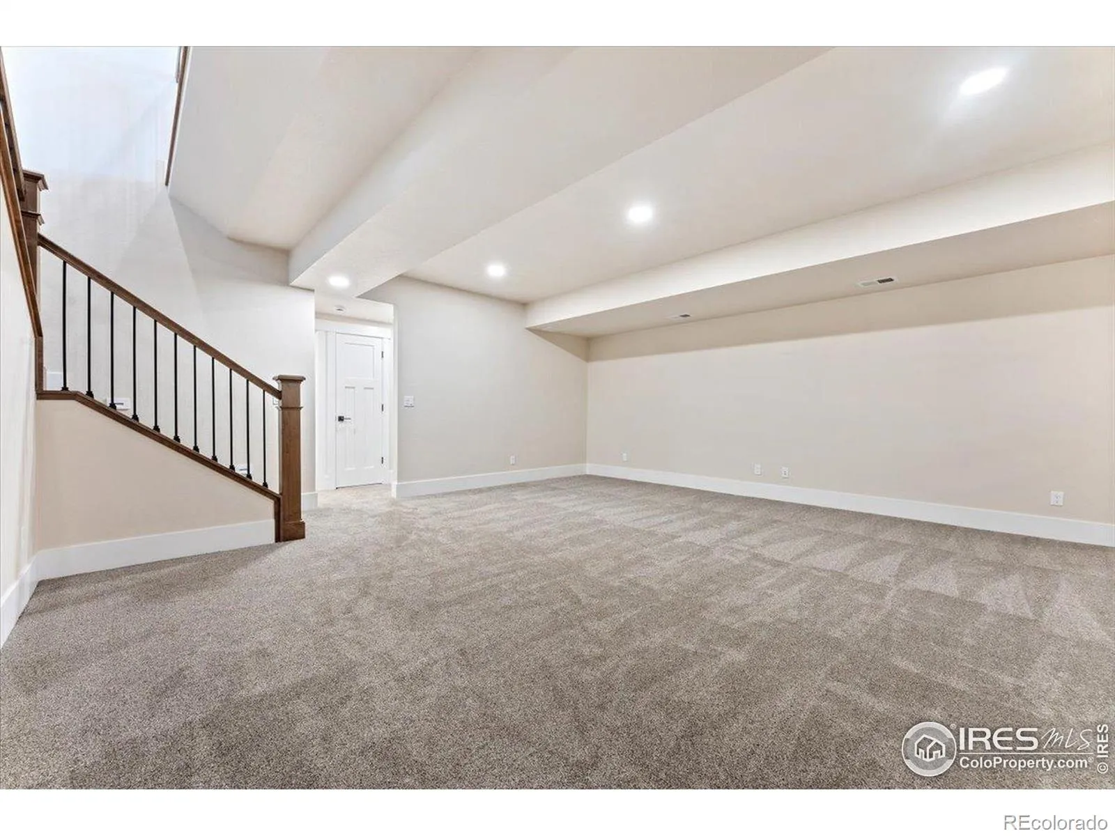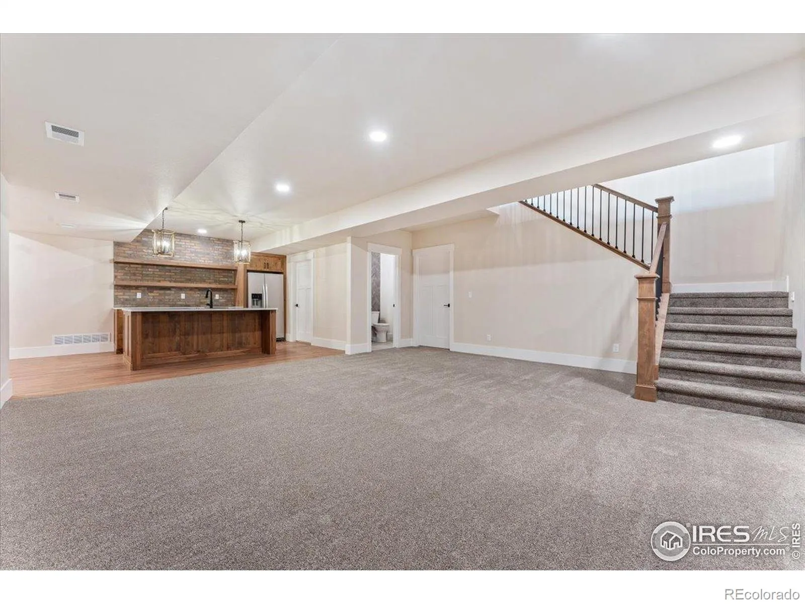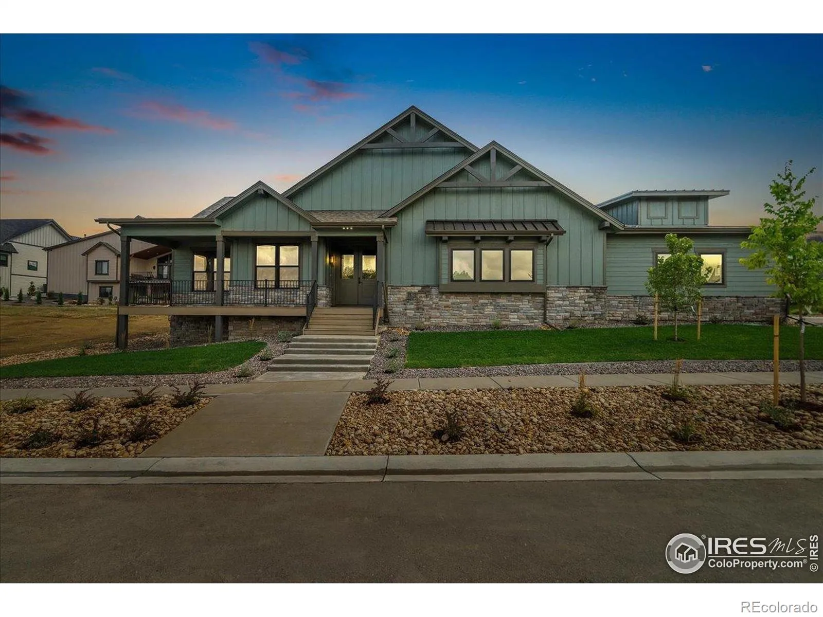 Welcome to this stunning Fricke custom ranch-style home in the picturesque Harvest Ridge community of Berthoud, Colorado! This thoughtfully designed residence blends classic charm with modern luxury, creating the perfect balance of comfort and sophistication.At the heart of the home, the Great Room showcases beautiful wood beams accents on the ceiling and a center double sided gas fireplace, offering a warm and inviting ambiance. The dedicated office provides a stylish and productive workspace, while the gourmet kitchen impresses with a center island, double ovens, a five-burner gas cooktop, full tile backsplash, and quartz countertops. The custom cityscape cabinetry includes a hidden walk-in pantry, ensuring ample storage and convenience. The primary suite is a true retreat, featuring a luxurious five-piece bath with a soaking tub, double vanity, and walk-in shower. The spacious walk-in closet offers direct access to the laundry/mudroom, which leads seamlessly to the oversized fully finished with epoxy sealed four-car side-load garage. Downstairs, the finished basement expands your living space with a versatile rec room, perfect for entertaining, fitness, or hobbies. It also includes two additional bedrooms, a full bath, a powder room, a wet bar, and tons of storage. Complete front and back landscaping PLUS fully fenced makes this home a TRUE move-in ready home! Don’t miss the opportunity to own this exceptional home in a sought-after location! Only three homes left!!!