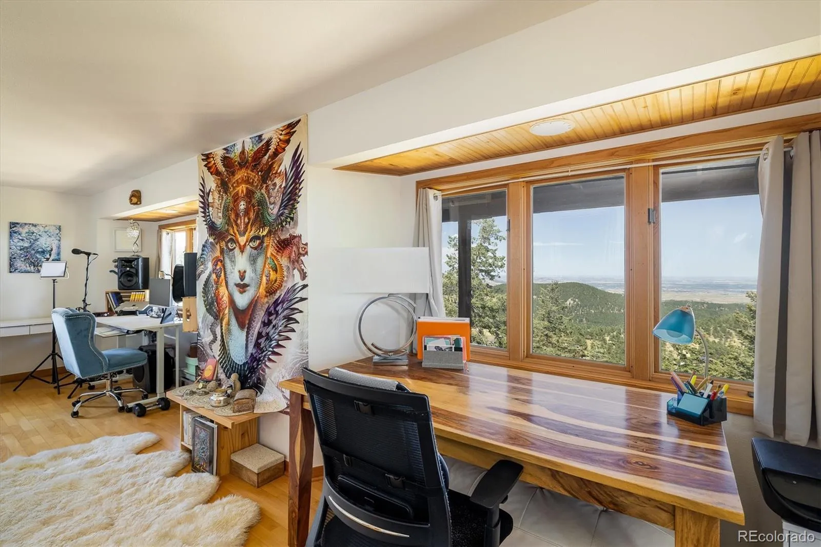 $20,000 Seller-provided credit offered to buyer for closing costs and pre-paids! COLORADO DREAMING: Enjoy a majestic 180 degree view of sunrise, moonrise, and sparkly city lights, with uninterrupted scenery stretching across the mountains, plains and Boulder Reservoir – often accompanied by hummingbirds, deer, and foxes. This retreat-style home is only 10 minutes to Broadway in the sought-after Boulder Heights community and offers a breathtaking vantage point designed to maximize light and flow, blending comfortable everyday living with thoughtful updates throughout. The main level invites you in with dramatic vaulted ceilings, walls of windows, and skylights that flood the space with sunshine. A dual-sided fireplace warms both the living and dining areas, while radiant-heated tile floors add comfort. The kitchen combines modern style and function with a generous island, wood cabinetry, stainless appliances, and a pantry. From here, step out to the expansive deck to grill, gather with friends, or simply take in the scenery. Upstairs, the primary suite serves as a true retreat with vaulted ceilings, skylights, and a private balcony to frame the views, while the spa-like bath has been fully reimagined with a soaking tub, oversized shower, and custom dual vanity. Two additional vaulted bedrooms share a full bath, providing plenty of space for family or guests. The lower level adds flexibility for a media room, home office, gym, or creative studio, complete with radiant-heated wood flooring. Practical amenities include an oversized two-car garage with storage, extra driveway parking, backup generator, county-maintained road access and BVSD bus service. Enjoy both peace of mind and the quintessential mountain lifestyle-just minutes from downtown Boulder. All offers considered.