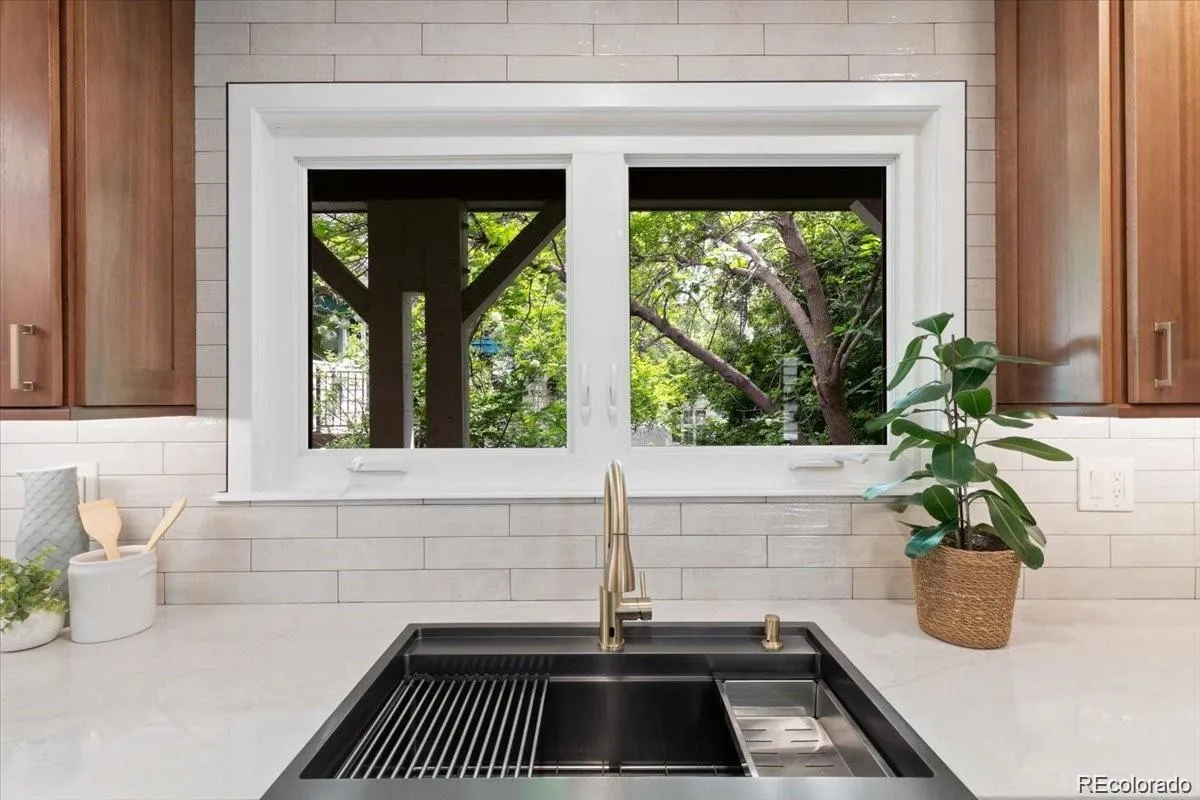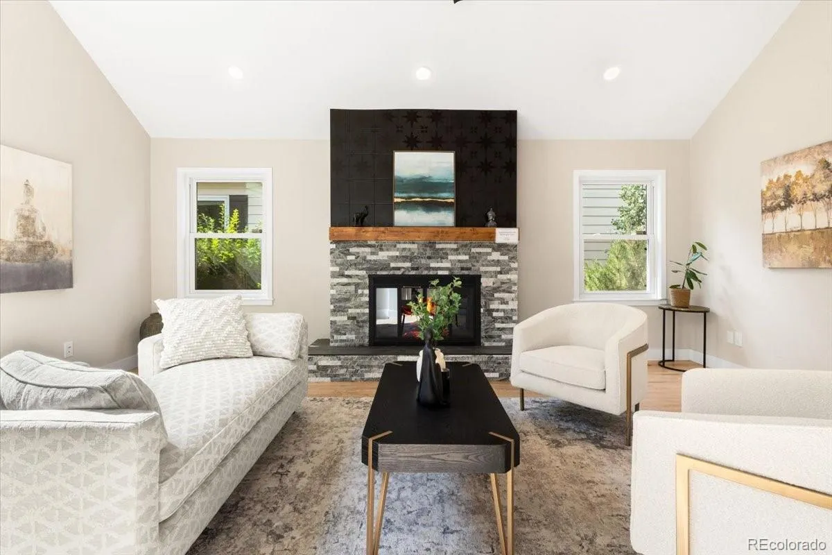 Priced $100,000 below appraised value—this is your opportunity to own a stunning home at an unbeatable price! Experience elevated luxury in this fully renovated designer townhome, nestled within the prestigious Stoney Brook community—one of DTC’s most coveted enclaves. This rare residence seamlessly blends timeless elegance with modern sophistication, offering inspired living in a serene, park-like setting. Step inside to discover soaring vaulted ceilings, gleaming hardwood floors, and expansive windows that bathe the space in natural light. The open-concept living area centers around a dramatic floor-to-ceiling tiled fireplace and flows effortlessly into a chef’s kitchen, complete with custom walnut cabinetry, quartz countertops, and sleek black ZLINE appliances.