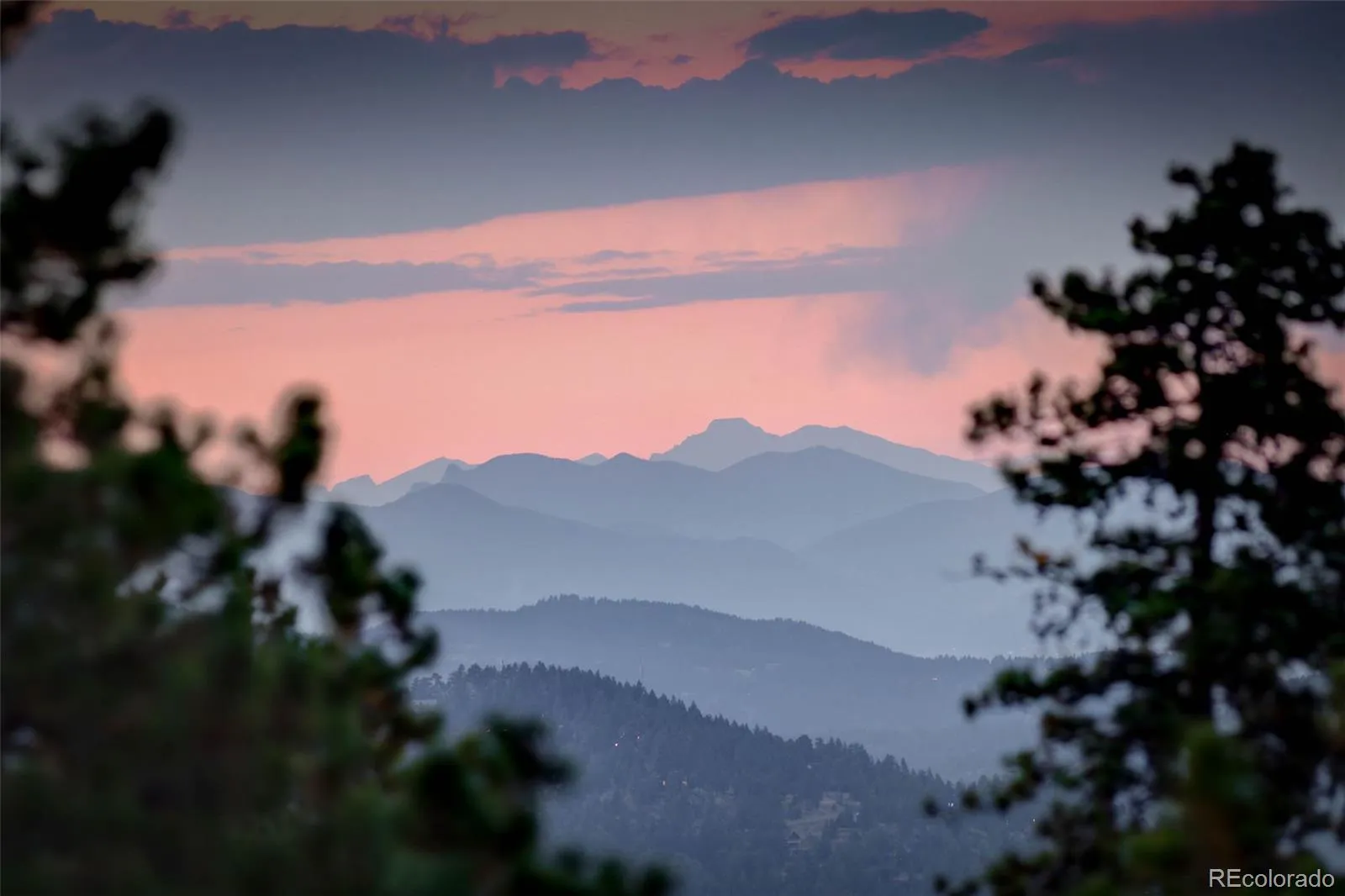 Imagine waking up to a horizon sunrise view every morning from your own home! This beautiful 5-bedroom mountain home sits on 1.3 acres at the end of a cul-de-sac at the top of Hilldale Pines. It features Continental Divide and unobstructed city views from the large windows in the kitchen, great room, primary bedroom, basement living room and loft. Walking through your private Aspen grove, you’ll feel a sense of tranquility before you even reach the front door. You’ll want to see more as you enter the front door taking in views of Denver high-rises and foothills straight out the great room window. The open floor plan makes the main living area is perfect for gathering and spending time with lots of loved ones. The primary suite with 2 walk-in closets and 5-piece bathroom is located on the main level with the great room, kitchen, dining room, 2nd bedroom, full bathroom and garage access. Two main floor decks for enjoying the fresh mountain air accessible to the kitchen, great room and primary suite. The updated kitchen has huge soft-close drawers and cabinets with pull out drawers, stainless steel appliances, new sink, window over the sink and an eating nook with a large picture window. The front porch has a covered deck if you want to sit outside while a refreshing mountain storm passes over or just listen to the Quaking Aspen rustle in the breeze. Three more bedrooms, a full bath, family room, laundry room and covered deck access complete the basement. This beautiful home is 100% heated with radiant floor heating (Heaven on Earth!) The over-sized 2-car garage is insulated and wired for heat, has a large window and outside access door. The exterior was stained and driveway resurfaced in August 2025. New main water line, main electrical line, 50-gallon water heater and 5-bedroom septic tank installed this year! On a school bus route for easy access all times of the year. Quick commute to Conifer or Denver Metro! Only a 1-hour commute to DIA.