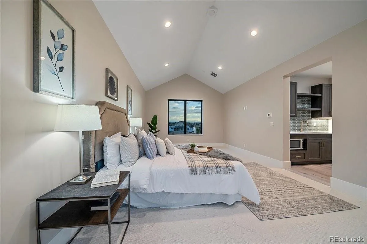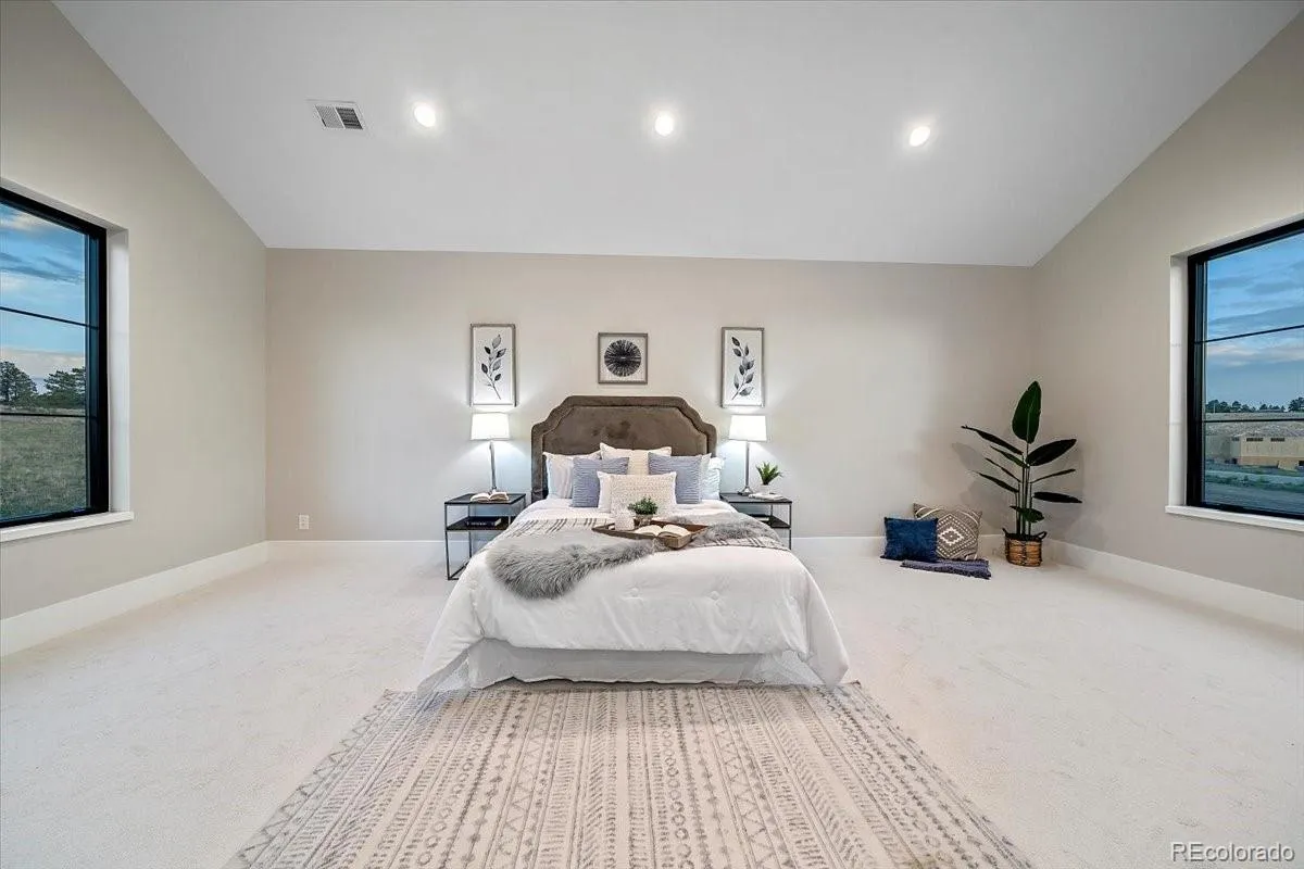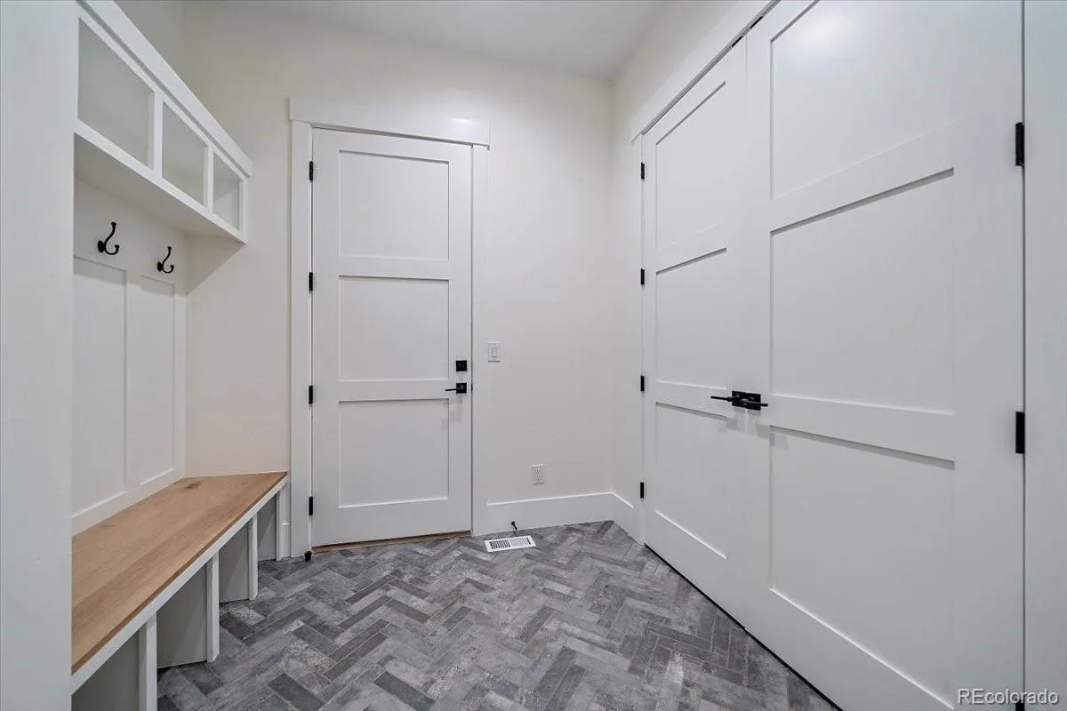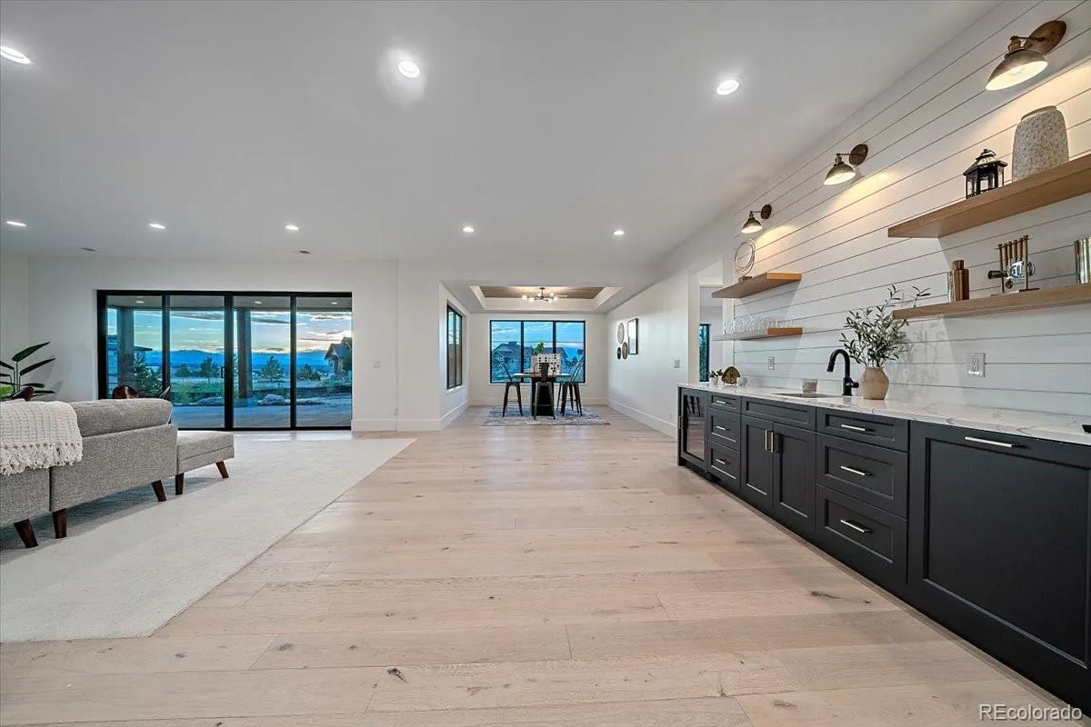 In the heart of Fox Hill, where rolling acreage meets mountain majesty, this 2022 Custom Home Showcase property delivers a rare blend of refined craftsmanship and Colorado character. Perched on 1.5 acres, this ranch-style walk-out custom home—frames panoramic Mt. Evans views with an expansive wrap-around deck, soaring vaulted ceilings, and a floor-to-ceiling hand-grouted stacked-stone fireplace accented by white oak beams.