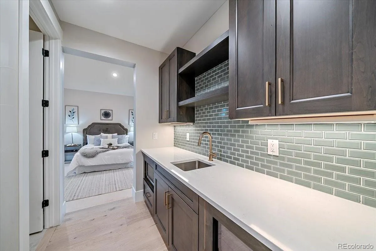 Downstairs, a light-filled walk-out level boasts a coffered-ceiling recreation room, wet bar, game space, and two bedrooms—one ensuite—plus a 3/4 bath and a gym with glass euro-style door and rubberized flooring. Upstairs, an unexpected bonus suite above the garage offers a full guest ensuite with wet bar—perfect for multi-generational living, private offices, or creative retreats. Intentional design offers stacked closets for a future elevator.