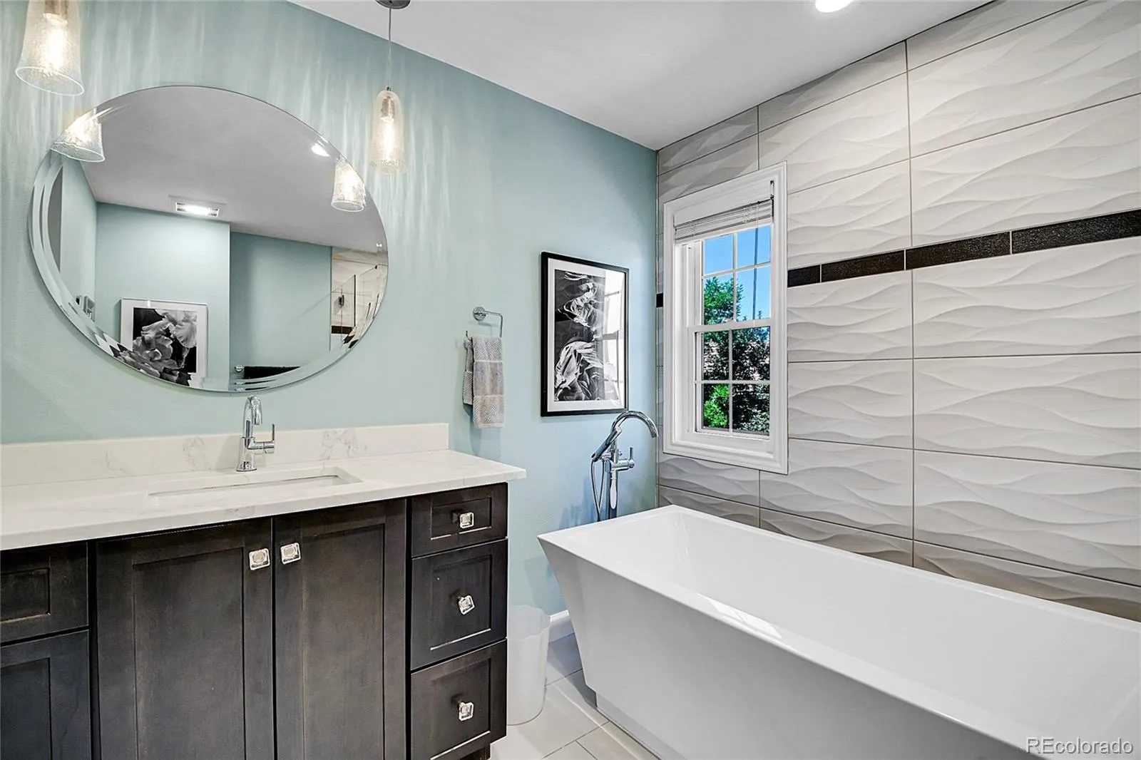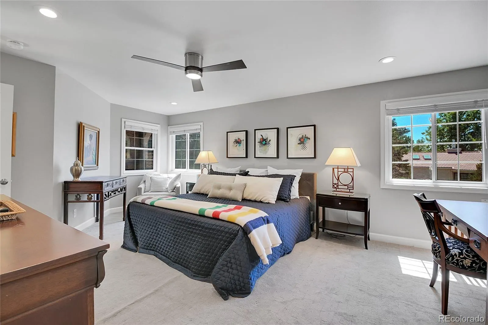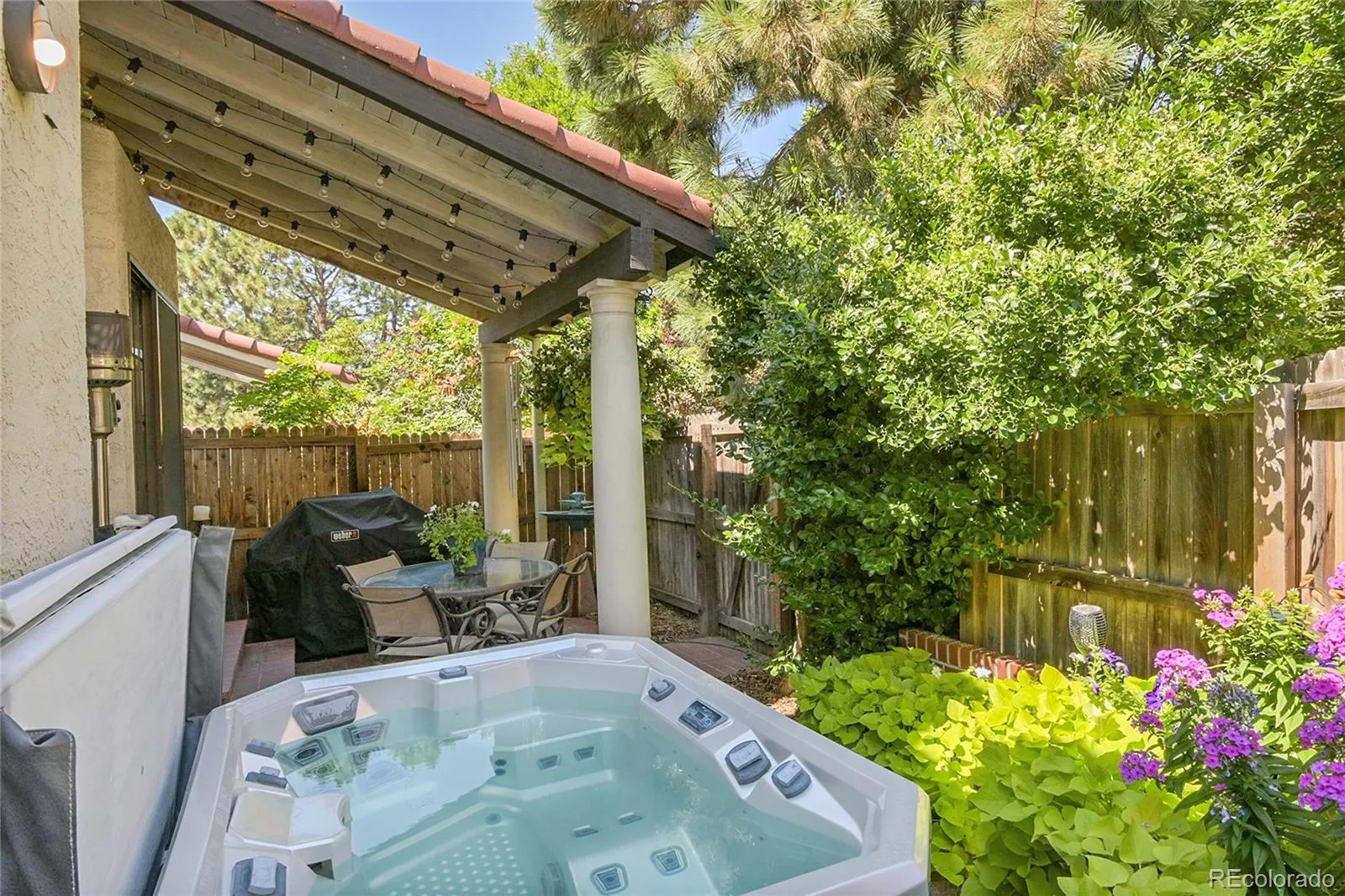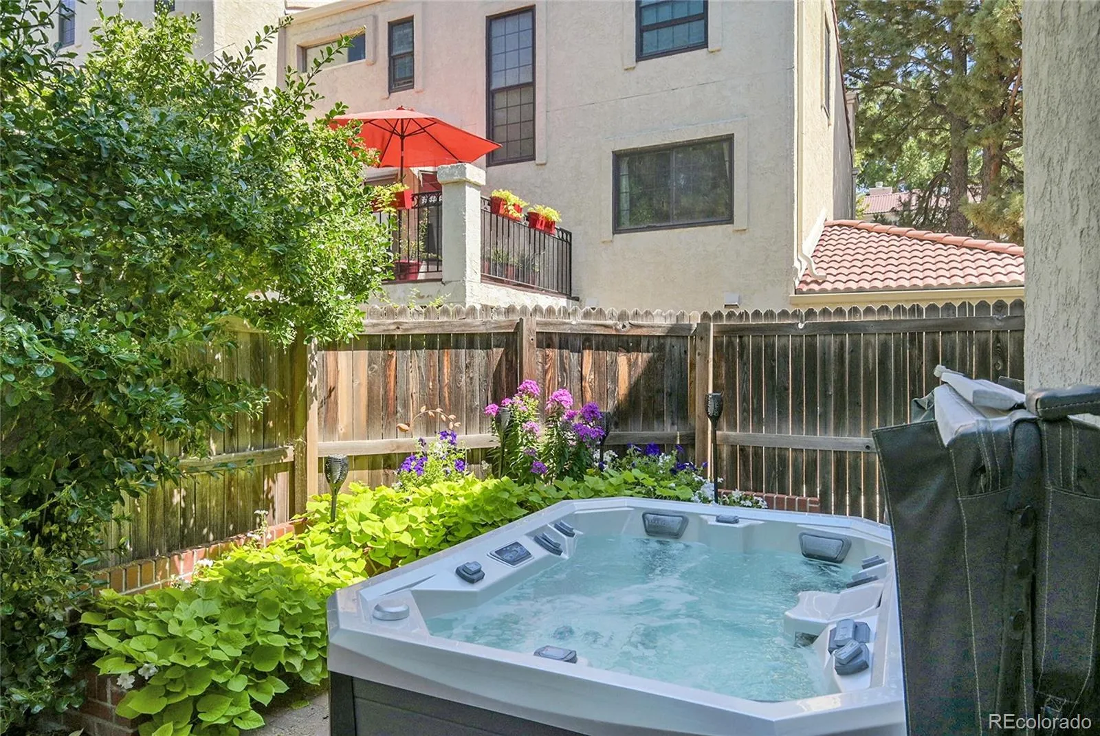 Best unit, including upgrades, location and features in the Villa Marbella community. Nothing was left untouched in the renovation of the home creating a warm integrated open floor plan with modern finishes throughout. This end unit has the only perennial garden specially approved by the HOA creating a year round focus of flowering bulbs in the spring to spectacular flowers the rest of the growing season. The back fenced patio is landscaped with a raised flower bed, hot tub and grill and a private greenbelt outside its gate. The upgrades include 4.5 inch white oak hardwood floors, newer windows and coverings, quartz countertops in the kitchen and bathrooms, newer cabinets with soft close doors and drawers, Touch 2 kitchen faucet, recessed lighting, newer paint, ceiling fans in the great room and bedrooms, two gas fireplaces, newer furnace and air conditioning units, replaced Spanish tile roof approximately 8 years ago. Partially finished basement with laundry room left to be completed by new owner to create exercise room, family room or workshop. Community pool steps away from back patio. The Villa Marbella community backs to the Highline Canal walking/biking path and two neighborhood parks are east of the Highline Canal and a second blocks to the west on Iowa Avenue. Start your new chapter in comfort and style.