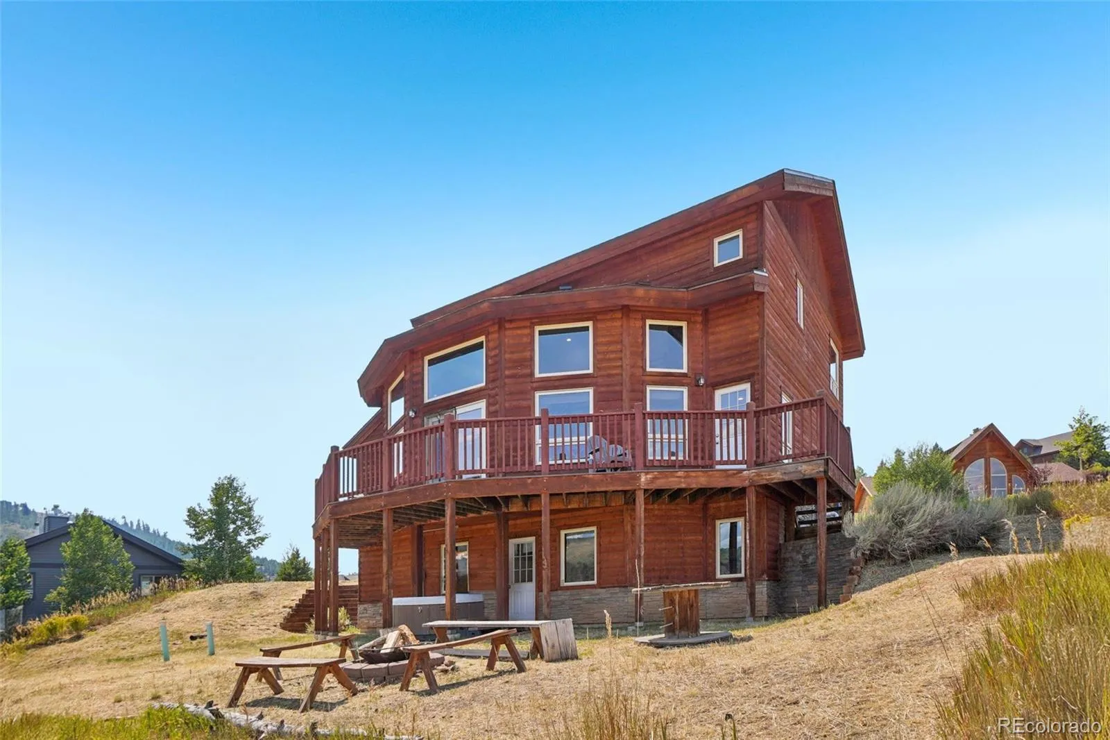 Exceptional Mountain Retreat in Innsbruck! This furnished 2-story log home combines mountain charm with modern updates. The open floor plan features vaulted ceilings, hardwood floors, and expansive windows framing stunning views of Rocky Mountain National Park and the Continental Divide. The chef’s kitchen boasts granite counters, stainless appliances with a brand new range and dishwasher, a walk-in pantry, and a breakfast bar, flowing into the inviting great room. Step outside to an expansive deck or relax in the private hot tub with panoramic mountain views. The primary suite is located entirely on the upper floor and offers a spa-style bath with jetted tub, dual vanities, and generous closets. A main-level bedroom with en-suite bath adds convenience, while the finished walk-out basement includes a family room, rec area, additional bedroom, full bath, and ample storage. Recent upgrades include new paint (2024), water heater (2020), and roof (2025). Perfectly located in the heart of Grand County with easy access to skiing at Winter Park and Granby Ranch, plus endless year-round recreation. With a 2-car garage, furnished interiors, and close proximity to town, this home is the ideal mountain retreat.