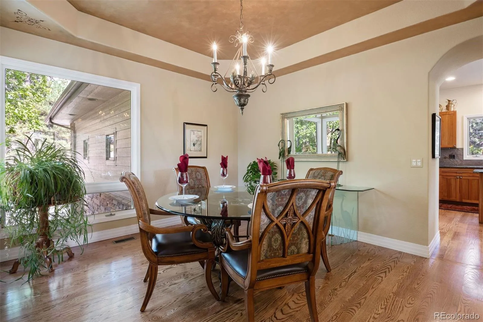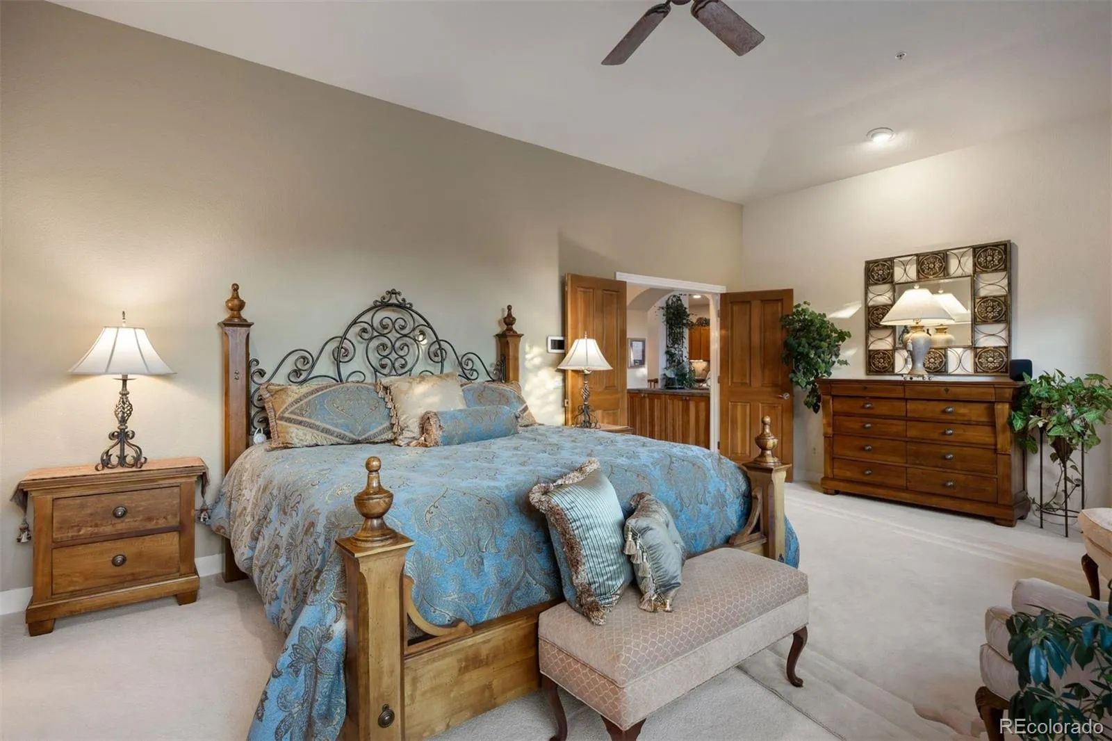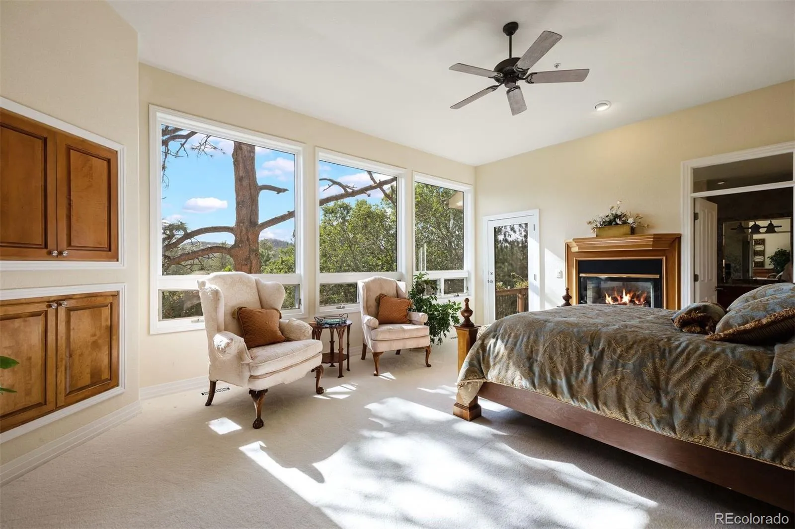 Surrounded by towering pines on a cul-de-sac, this home in The Village Castle Pines offers a beautiful blend of privacy, comfort, and nature. A flagstone walkway and front water feature welcome you to a richly detailed interior with a paneled library, formal dining room, and a gourmet kitchen with granite counters, double ovens, and an eat-in nook opening to a wraparound Trex deck. From here, enjoy mountain vistas, wildlife, and sunsets while relaxing or entertaining. The main-level primary suite is a retreat with its own deck, a two-sided fireplace, updated spa-like bath, and custom closet. The walkout lower level features a wet bar, stone fireplace, and access to multiple flagstone patios in the storybook landscaped backyard. Two lower level, en suite bedrooms and abundant storage complete the space. Recently refreshed with new flooring, updated baths, and modernized systems, this home combines timeless style, peace of mind, and extraordinary outdoor living.
