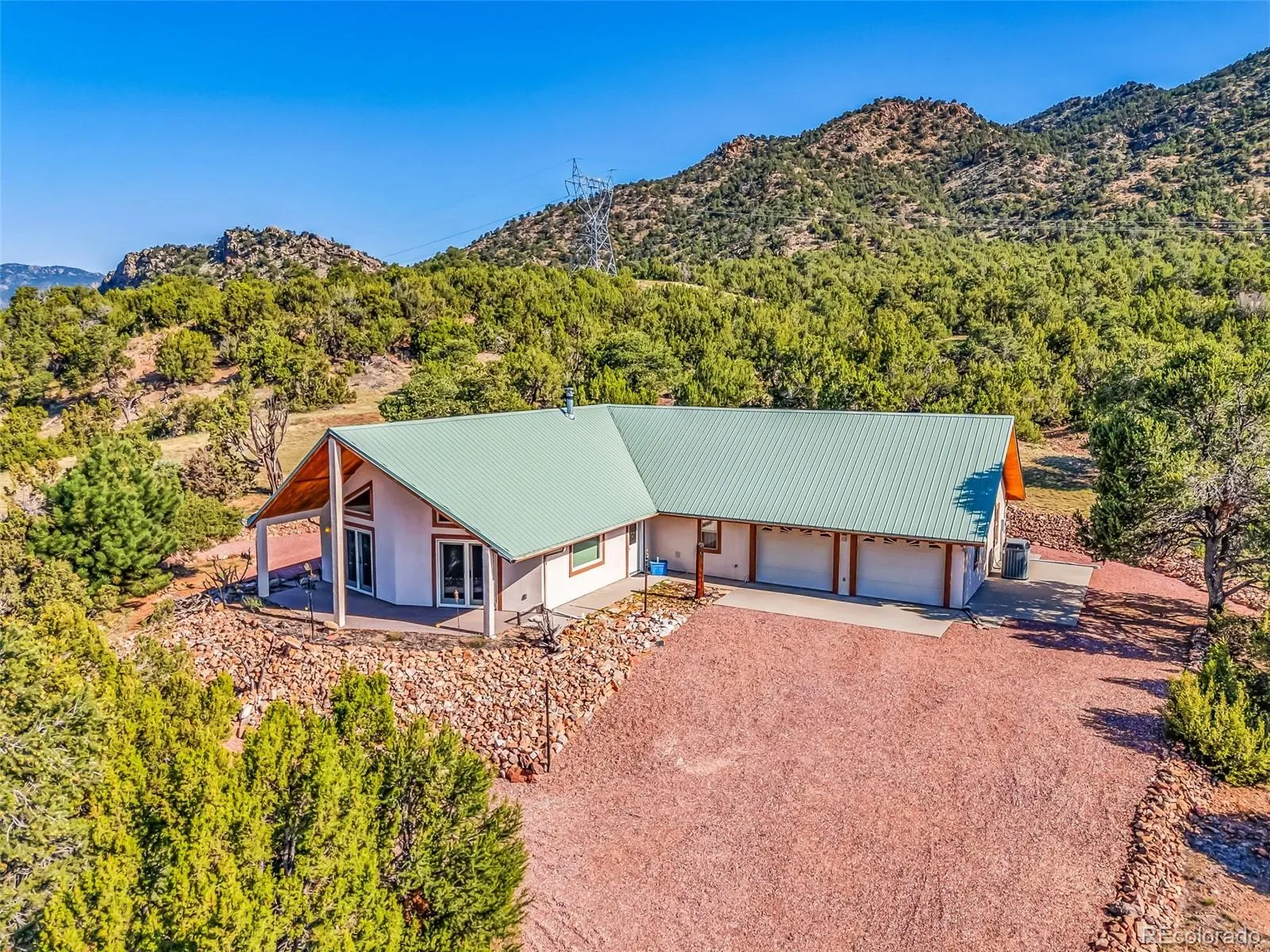 Mountain Views, Total Privacy, and Prime Location—This One Has It All! This beautifully maintained, single-level 3-bedroom, 2-bath property is set on 36 private acres just off Highway 9—only 11 miles from town, yet worlds away from the hustle and bustle. Backing up to over 13,000 acres of BLM land in GMU 581, it’s a rare combination of peace, privacy, and outdoor adventure. Inside, you’ll find an open-concept layout with a spacious kitchen featuring ample storage, a large breakfast bar that seats six, and a bright, airy dining/living area. Two sets of heavy-duty French doors lead to a private covered patio—perfect for soaking in the incredible mountain views and star-filled skies. A bonus flex space off the living area includes a beautiful soapstone wood stove and can be used as a formal dining room, office, or cozy sitting area. The primary suite is a true retreat with large windows, an 8-foot walk-in closet, and a five-piece bath complete with soaking tub & walk-in shower. Two additional bedrooms offer large closets and great natural light. The laundry room is located just off the attached two-car garage and includes built-in cabinetry and a linen closet for added storage. This home was built for mountain living with hardy features, including a durable metal roof, stucco exterior, tall pine ceilings, newer double-pane windows, and a strong domestic well producing over 15 GPM. A 1,200-gallon cistern provides extra water storage, and the iron filter and water softener ensure excellent water quality. You’ll stay comfortable year-round with electric baseboard heaters, an electric furnace, a soapstone stove, and A/C for those warmer summer months. Outside, the property is clean and well cared for with rock-lined driveways, two sheds including a large Morton shed, and a powered RV-ready carport. Whether you’re looking for a forever home, a getaway, or a base for outdoor adventures, this property offers the perfect mix of comfort, freedom, and natural beauty.