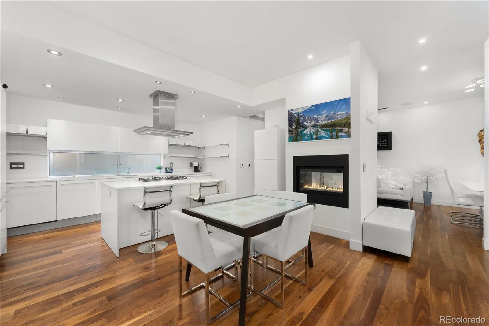 Indulge in luxury living within this high-end townhome. With European and Scandinavian architectural influences, this home exudes elegance and sophistication. Chef’s kitchen features top-of-the-line Dacor and Miele appliances, dual dishwashers, a generous island, and a cozy dining nook. The open-concept living and dining spaces are enhanced by glass accordion doors, leading to a private front patio for an effortless blend of indoor-outdoor living.