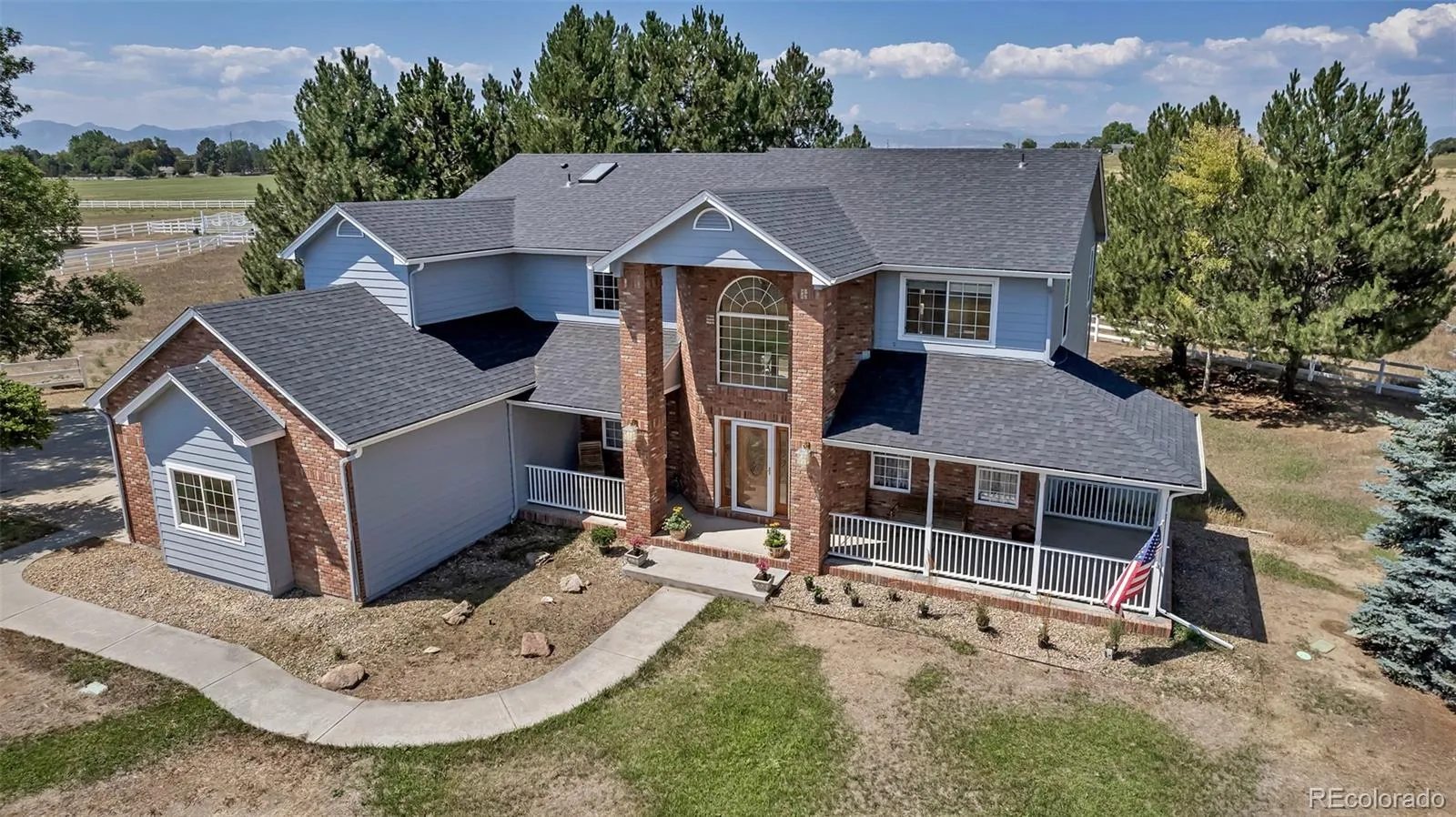 Welcome to your new home in the peaceful outskirts of Longmont & Boulder. This 3260 finished sq ft, 2 story Traditional home was Custom built, well cared for and loved by the original owners in the Gated Enclave of Crystal View. 5.3 acres with stunning mountain views, horse property, fenced pasture ready for horses,animals, kids and adults alike. Property backs to Boulder Open space! Wraparound country porch invites you to enter into the grand foyer, flooded with natural light w/ Vaulted ceilings & hardwood floors. Open to The Great room& Kitchen area with floor to ceiling windows with western slope views & gas fireplace!Spacious Kitchen with Center Island w/ bar seating, Double sinks, Samsung Refrigerator, Wall Convention Oven/ Microwave combo, Gas stove top. Breakfast area opens out to the patio to enjoy Colorado outdoor living at its best. Living room or office w/ porch access, formal dining room, Main floor guest bedroom & a 3/4 bath round out the 1st floor. Primary suite boasts a large walk in closet, Mountain views & spacious 5 piece bathroom, including a large jetted tub. 3 good sized bedrooms and 2 baths on this level. The 1720 sq ft of unfinished basement is ready its make over! 3 car garage, new roof in 2023! Easy access to I 25, Boulder areas and the mountains!