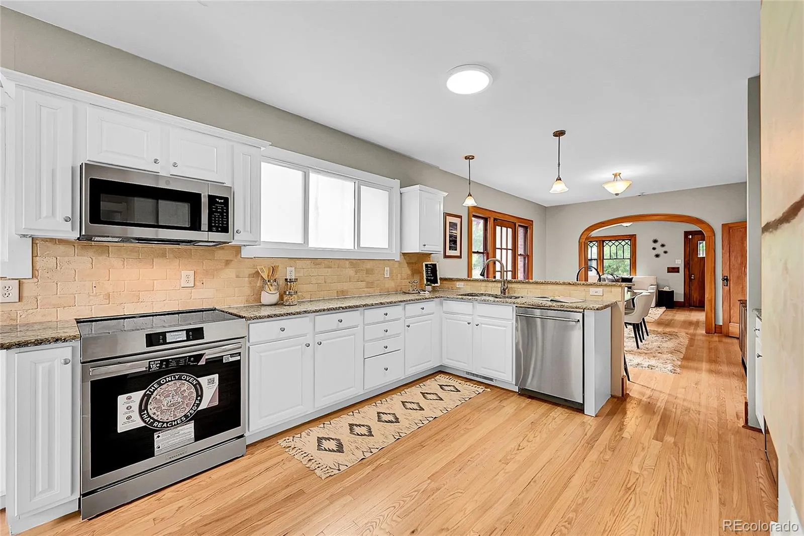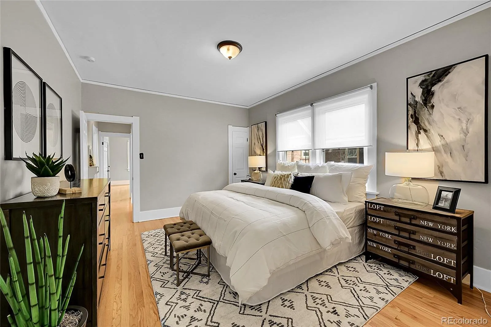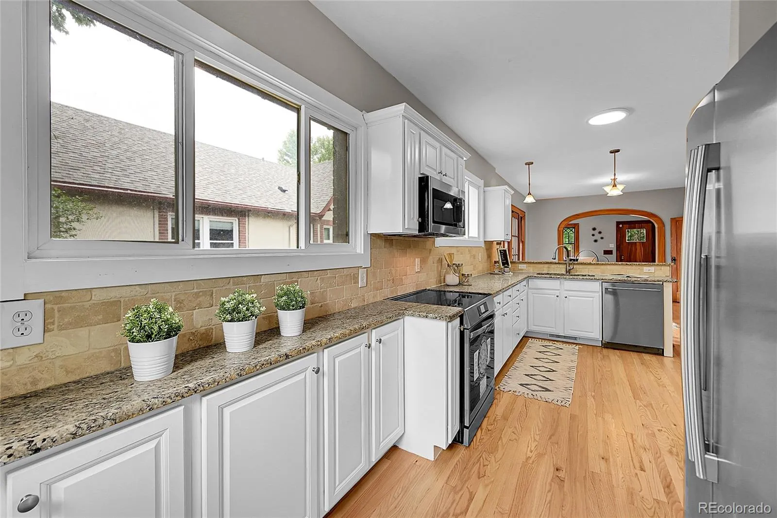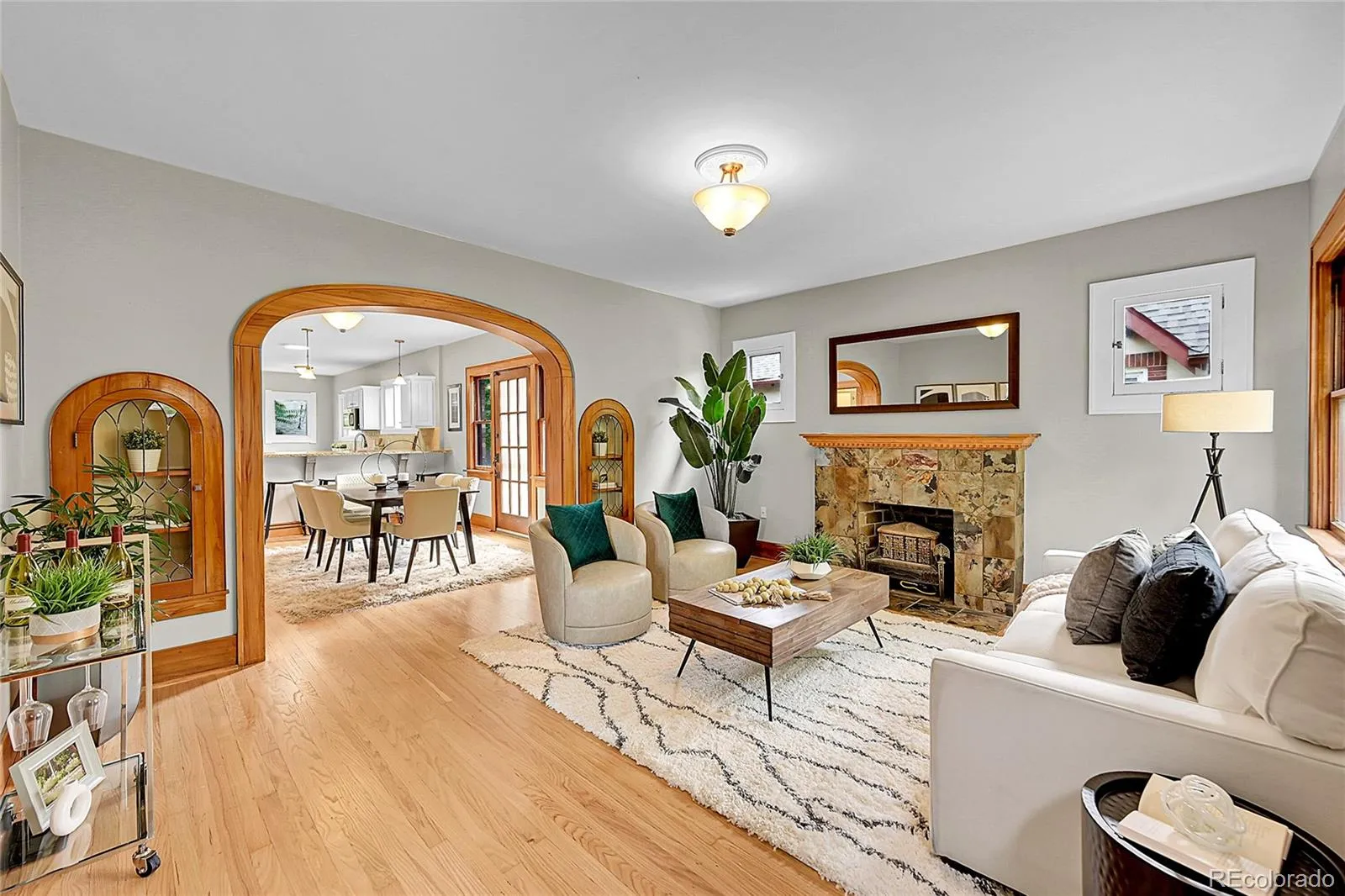 Welcome to 2676 Elm Street! This solid brick home beautifully combines classic architecture with thoughtful updates, all just a few minutes from the city’s vibrant core. It is set back on a lovely tree-lined street in the heart of Denver’s coveted Park Hill neighborhood. Well preserved, yet tastefully updated, the inviting exterior, with an elevated front patio, brickwork and classic lines, offers a welcoming introduction. Upon entry, a sense of timeless elegance and warmth permeates the space. Streams of sunlight flood through well preserved came accented windowpanes, illuminating the newly refinished hardwood floors. The spacious living room is anchored by a stately fireplace, creating a notable first impression. Built in display shelving and warm wood accents add timeless character. The open floorplan creates a massive entertainment space, yet each room has it’s own distinctive feel. Kitchen features include stone countertops, buffet, plentiful cabinet and countertop spaces, high-end stainless steel appliances, new induction range, new wine fridge, and more. The breakfast nook provides extended kitchen functionality as desired. A fully finished basement has durable new vinyl plank floors which created functional design and additional living options, A 4th (non conforming) bedroom, full laundry area which includes premium LG front load W/D, large recreation room for media and leisure with a second fireplace. A bonus space and lower level bathroom add to the practicality of everyday living. A new evaporative cooler (2025), new roof (2023), and hot water heater (2022) add lasting value. Walkability to the amazing area shops, a park/playground, brewery, salon, and much more is only 1 block away. So much fun! Park Hill Elementary school is close walking distance. Visionaries might consider creating your dream yard and converting the garage to a studio someday, while alternate parking options are created in the large existing driveway space. This is a must see home!