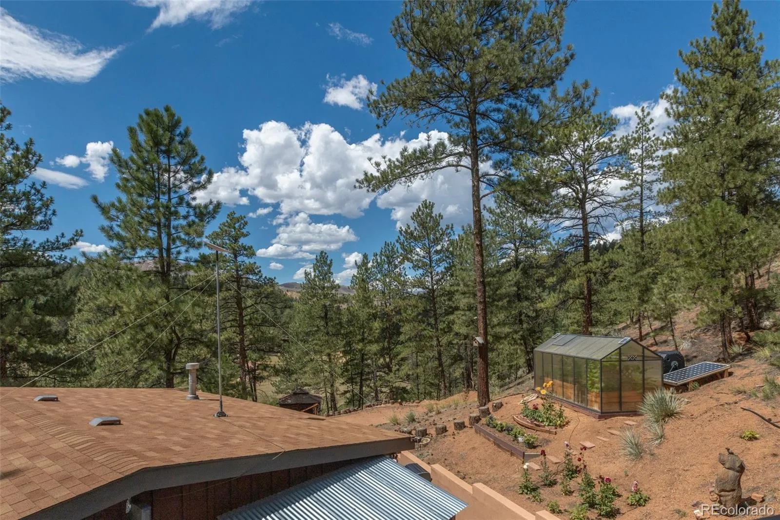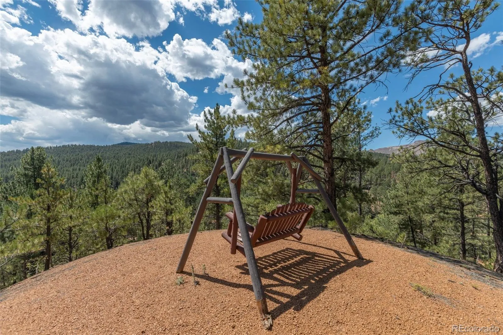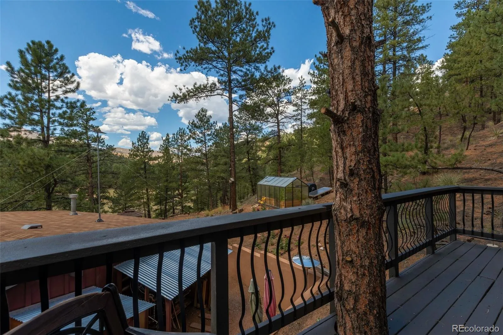 Escape to your mountain retreat in the coveted Rainbow Falls Park community! This charming 2-bedroom, 1-bath cabin sits on 1.3 acres adjacent to HOA-owned recreation land, offering privacy, scenic surroundings, and year-round outdoor opportunities. Inside, you’ll find an inviting great room with wood-beamed, vaulted ceilings and a cozy fireplace. The bathroom has been recently improved, and the home includes a new water heater, newer kitchen appliances, painted cabinets, and updates throughout. An exterior laundry room now houses a washer and dryer for added convenience. Step outside to enjoy a freshly painted deck and exterior, and a hot tub with breathtaking views of forested hillsides and rock formations. The property also includes two storage sheds, a gazebo perched high for spectacular lunches with a view, a greenhouse with solar power, and a detached finished studio with a deck for creative space or guest overflow (not included in the listed square footage). Also included for added outdoor fun is a zipline and a disc golf basket to enjoy. Community amenities include two private stocked lakes for fishing, hiking trails, streams, frisbee golf, tetherball, and neighborhood access to the national forest. Enjoy kayaking, paddle boarding, skating, and sledding right in your community. Located just minutes from Deckers, where you will find the South Platte River for world-renowned fly fishing, ~20 minutes to Woodland Park, and about an hour to either Denver or Colorado Springs, this is the perfect year-round home or vacation retreat with quick access to local jobs and services. Click virtual tours for aerial video.