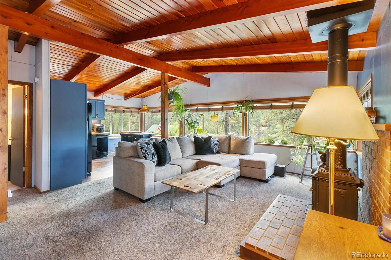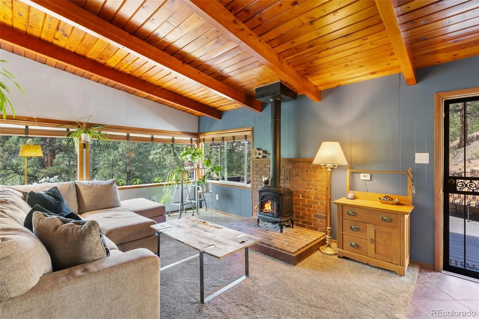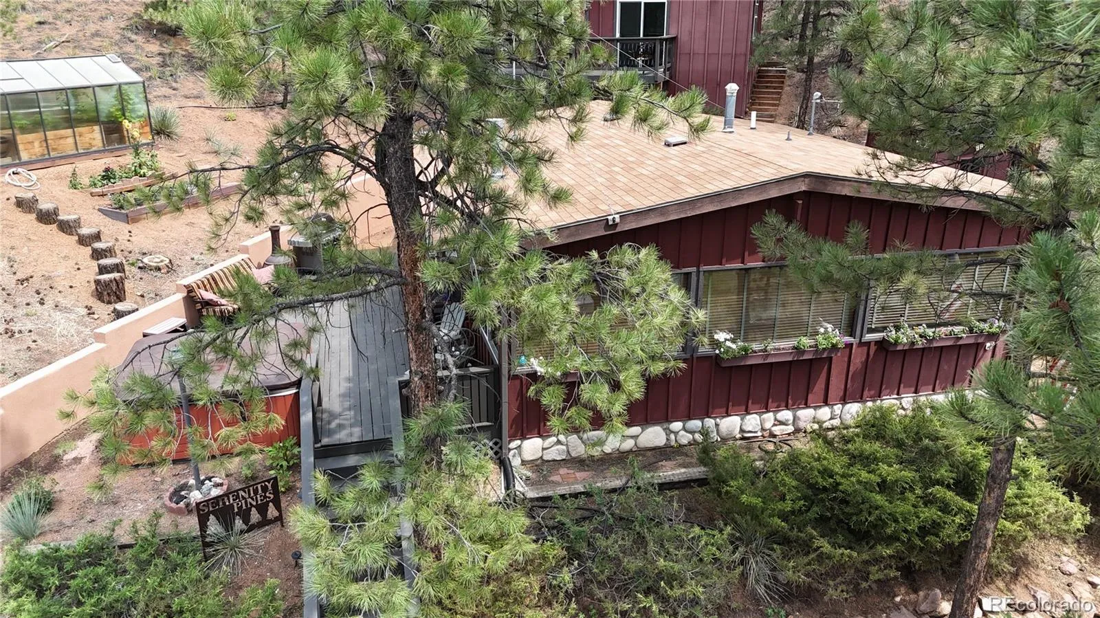 Escape to your mountain retreat in the coveted Rainbow Falls Park community! This charming 2-bedroom, 1-bath cabin sits on 1.3 acres adjacent to HOA-owned recreation land, offering privacy, scenic surroundings, and year-round outdoor opportunities. Inside, you’ll find an inviting great room with wood-beamed, vaulted ceilings and a cozy fireplace. The bathroom has been recently improved, and the home includes a new water heater, newer kitchen appliances, painted cabinets, and updates throughout. An exterior laundry room now houses a washer and dryer for added convenience. Step outside to enjoy a freshly painted deck and exterior, and a hot tub with breathtaking views of forested hillsides and rock formations. The property also includes two storage sheds, a gazebo perched high for spectacular lunches with a view, a greenhouse with solar power, and a detached finished studio with a deck for creative space or guest overflow (not included in the listed square footage). Also included for added outdoor fun is a zipline and a disc golf basket to enjoy. Community amenities include two private stocked lakes for fishing, hiking trails, streams, frisbee golf, tetherball, and neighborhood access to the national forest. Enjoy kayaking, paddle boarding, skating, and sledding right in your community. Located just minutes from Deckers, where you will find the South Platte River for world-renowned fly fishing, ~20 minutes to Woodland Park, and about an hour to either Denver or Colorado Springs, this is the perfect year-round home or vacation retreat with quick access to local jobs and services. Click virtual tours for aerial video.