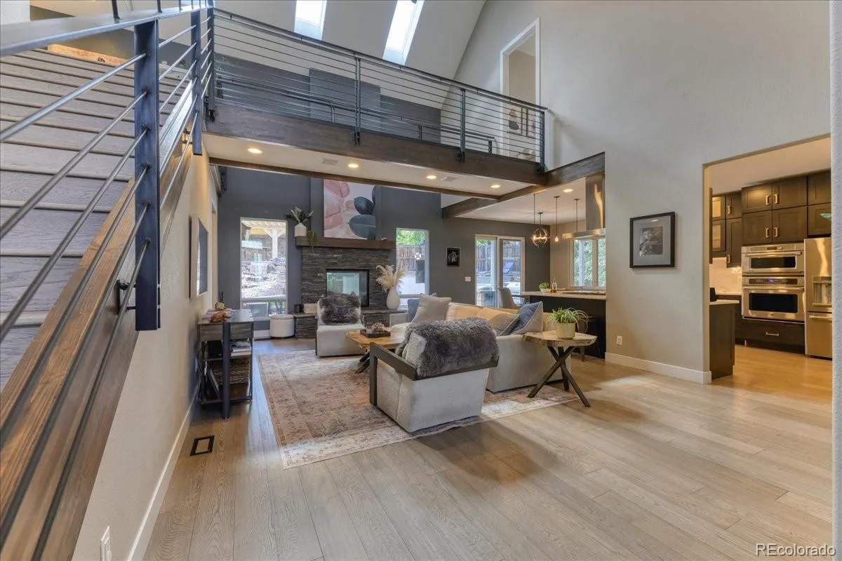 Welcome to this stunning custom-built home in Mesa View Estates. This exclusive craftsman build sits on a spacious angled lot features a sparkling pool, a beautifully crafted pergola, and a captivating grotto with a waterfall. Upon entering, you’re greeted by an expansive great room with a stunning double-sided stone fireplace that opens to the outdoor living area. This home is enhanced with premium lighting, including Jellyfish exterior lighting that highlights the front gables holidays and creates custom ambient moods on the incredible back patio. Inside the custom details are abundant; the living room, kitchen and upstairs primary suite feature smart recessed lighting with full spectrum colors, preprogrammed ambient modes, and Alexa /Google Home integration. The casual dining room flows seamlessly into the fully upgraded kitchen, boasting quartz countertops, custom cabinetry with glass-front panels, a gas cooktop, range hood, double wall ovens, and a double-door wine fridge. The main floor hosts a primary suite with a full bath, pebble-stone walk-in shower, and oval soaking tub. Two additional bedrooms (one used as an office) plus a 3/4 bath and a powder room complete this level. A laundry area connects to the 4-car attached garage. Upstairs, discover two distinct areas. One side features a lavish primary retreat with a five-piece bathroom, dual closets, and a private deck overlooking the backyard. The other includes another bedroom with a full bath. The remarkable basement includes a large bedroom, spacious walk-through closet, and a full guest bath. It offers ample space for entertainment and relaxation, complete with additional kitchenette and a hidden speakeasy room. This luxurious build is truly one of a kind in the neighborhood. The property provides easy access to highways, light rail, dining, shopping, and entertainment in both Golden and Denver. It’s just steps to Green Mountain trailhead, Kyffin Elementary, community pool, park, and tennis courts.