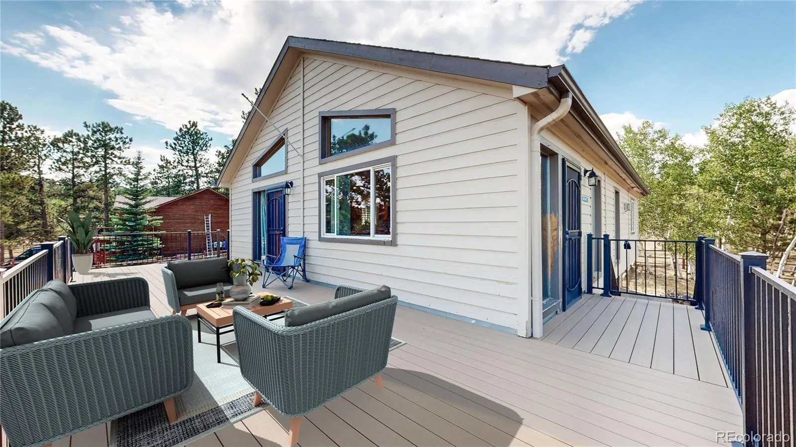 Location and Views! Discover mountain living at its finest in the charming town of Bailey. Whether you are ready to leave the bustle of city life behind or looking for the perfect weekend escape, Quakie Way delivers. Nestled with mountain tops all around you, this home offers 3 beds, 2 baths and 2 car garages and a huge wrap around deck to enjoy the beautiful sunset views of stunning Mt Bailey and Bear Mountain. Be sure to watch the 360-degree ariel photos on the property web site. https://v6d.com/houses/119-quakie-way-bailey-co-80421/ New carpet was just installed on both levels. Nestled on nearly an acre, enjoy your own private aspen grove. This property has lots of dark sky. Sit back and enjoy the expansive wrap around deck to relax and gaze at the intense evening stars. This home has it all. Views are breathtaking! Breathe in the crisp mountain air while taking a hike and listen to the rushing waters of the North Fork of the South Platte River. Whether you love watching wildlife, enjoy hiking, biking, love to fish, or simply someone who loves to relax on the deck, you will feel right at home in Bailey’s relaxed mountain lifestyle. Love horses? Visit the local Burland Equestrian Park. Spend your weekends exploring historic landmarks that helped put Colorado history on the map. Take a 4×4 adventure over the scenic Guanella Pass Byway at 11,669 ft high and wind your way into the picturesque town of Georgetown—a must-do journey for Coloradans and visitors alike. Here, weekends are not about traffic or schedules, they are about lacing up your boots for a morning hike, headed to the ski resorts, hopping on your bike to explore winding trails, or casting a line into the best fly-fishing waters Colorado has to offer.