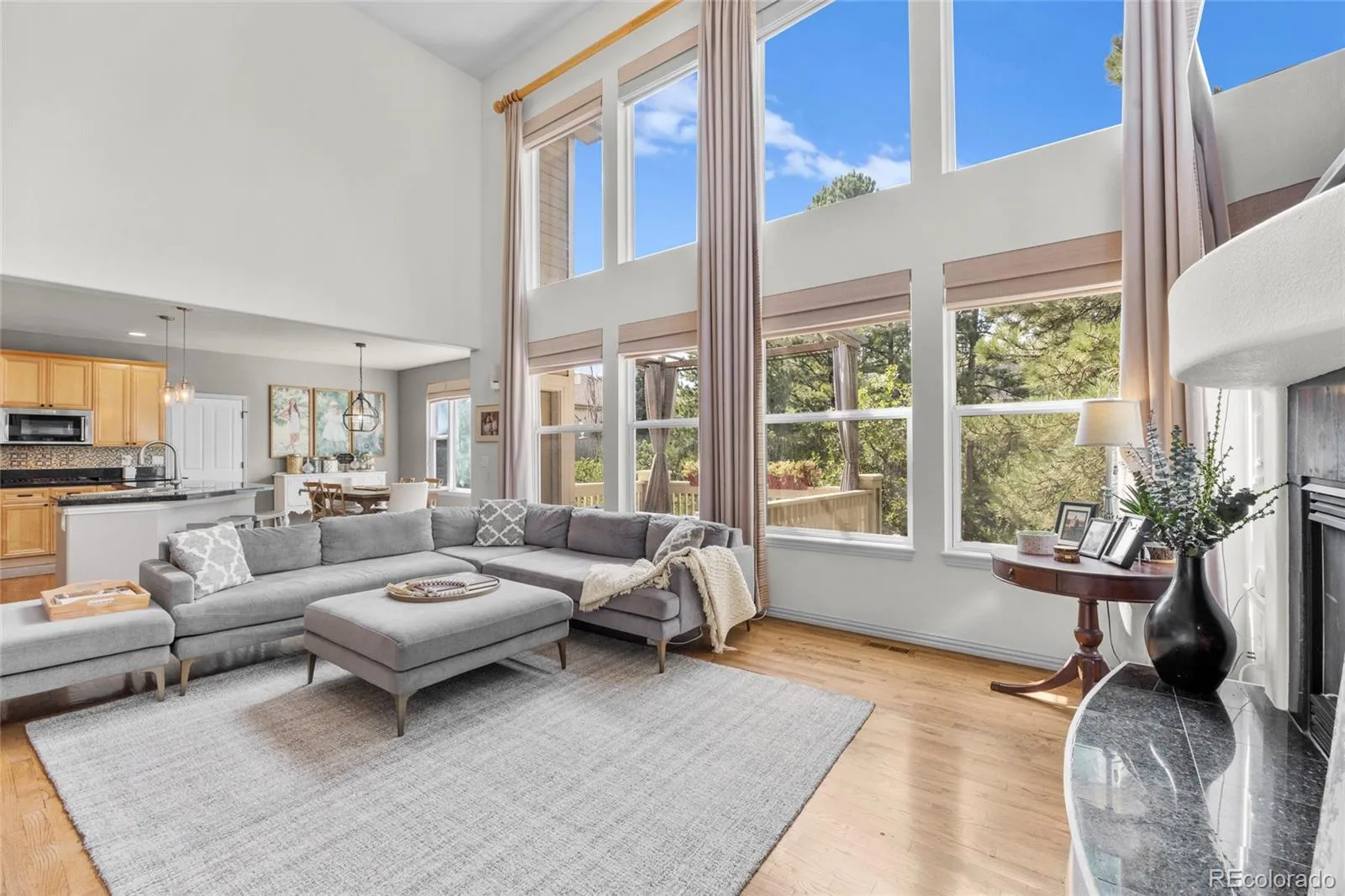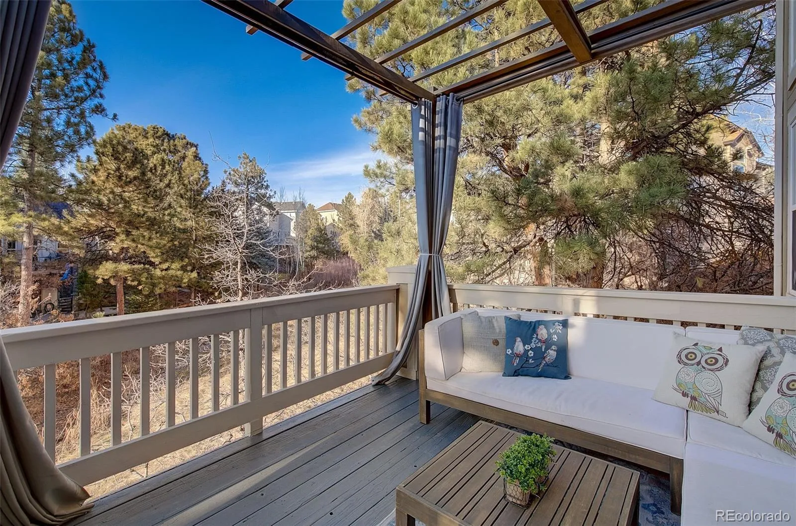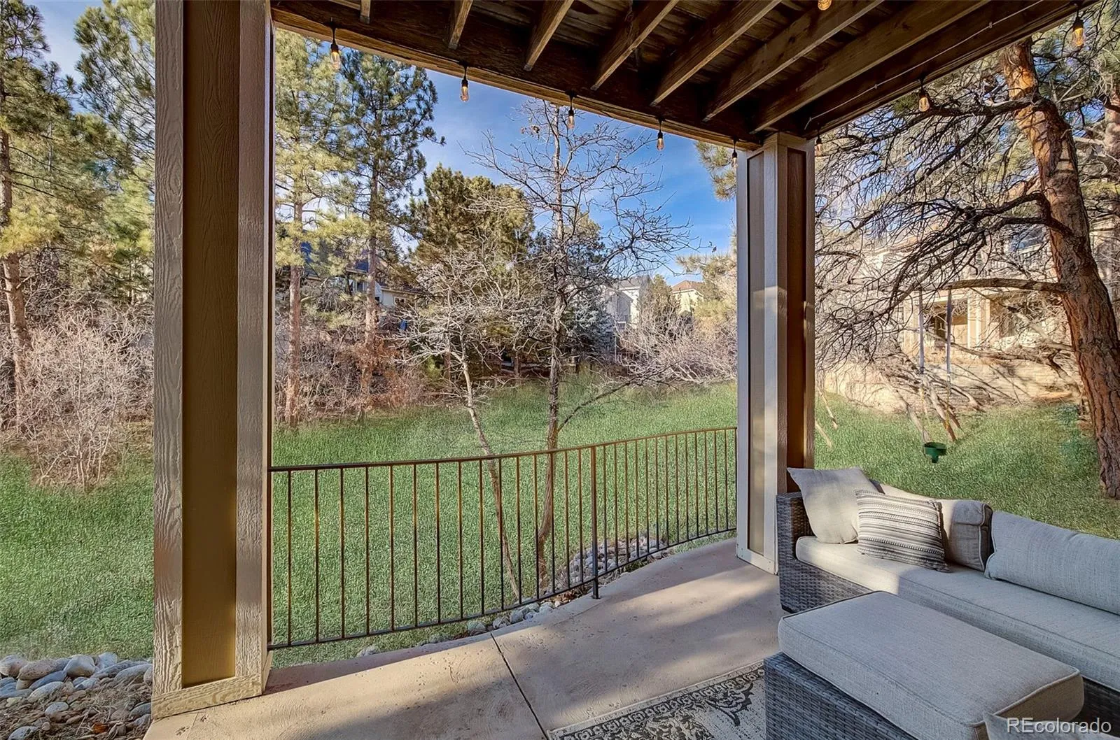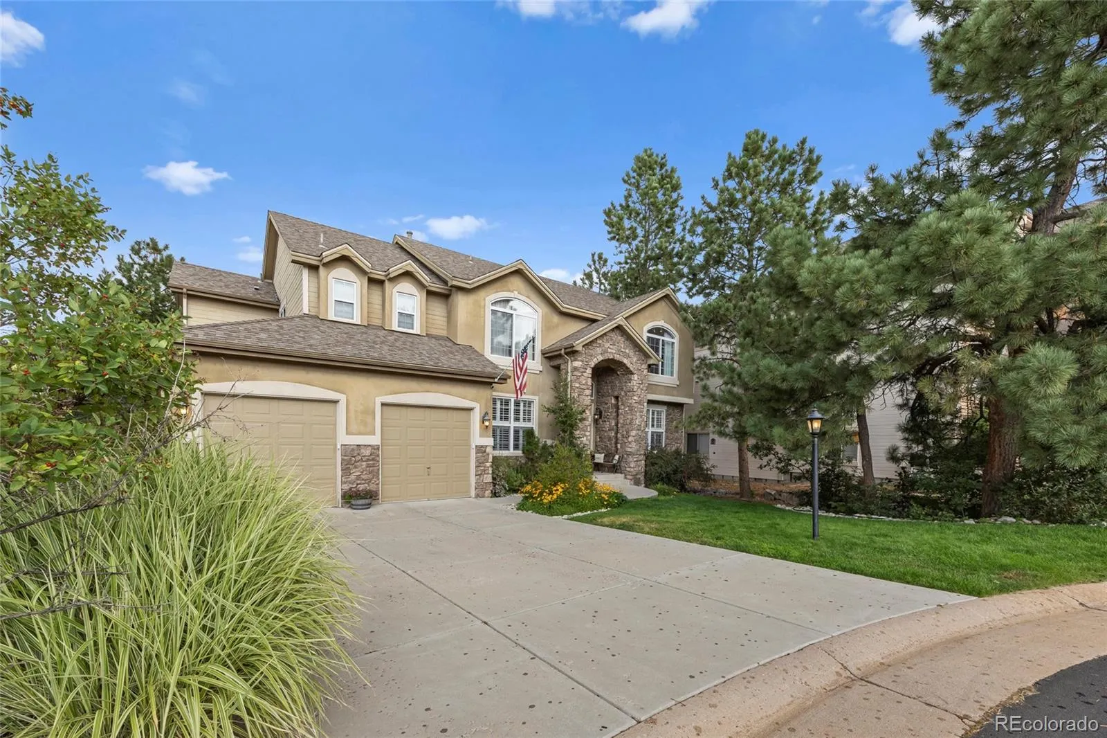 Incredible opportunity to own in beautiful Forest Park! Nested in this much sought after community, this 5 Bed, 5 Bath home is beautifully appointed, featuring soaring ceilings, open concept main floor, 3 car garage & finished walk out basement. Situated on a quiet cul-de-sac & backing to a greenbelt lined w/ mature evergreens throughout the lot & neighborhood. As you step inside, hardwood flooring flows throughout the main floor, and abundant natural light fill the rooms. The soaring 2-story family room with gas fireplace opens to the spacious kitchen featuring stainless steel appliances, gas cooktop, double ovens, walk-in pantry, convenient powder room & laundry room. This kitchen was designed for entertaining, featuring abundant cabinetry, granite countertops, kitchen dining nook & plenty of room to gather. Just outside the kitchen & family room is the private deck where you can take in Colorado’s great outdoors overlooking the serene greenbelt where deer meander often. A formal dining room & office complete the main floor. Make your way upstairs, to the vaulted primary suite; a true retreat w/ double-sided fireplace & spa-like bathroom complete with soaking tub facing the fireplace & spacious closet. Down the hall are three additional bedrooms & two full bathrooms that provide plenty of space for family & guests. The finished walkout basement is designed for entertaining, offering a large rec room, wet bar & beverage refrigerator, plus a guest bedroom w/ full bath. Outdoor living includes a main-level deck overlooking the greenbelt, a patio, & bonus exterior storage room. Additional storage in the unfinished basement, features built-in shelving & 2 newer water heaters. Residents of Forest Park enjoy a beautiful private pool & clubhouse, along with year-round events (Summer Soiree, Oktoberfest & Holiday Stroll). Surrounded by stunning evergreens, wildlife,The Ridge Golf Course, award winning schools; this community is one of Castle Pines’ most sought-after gems.