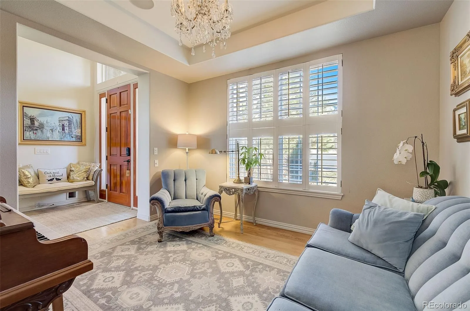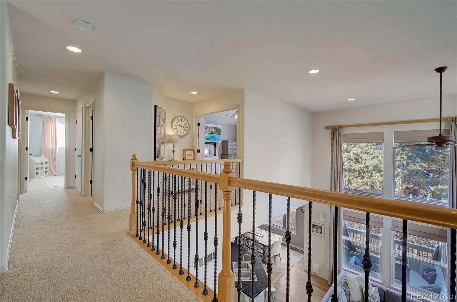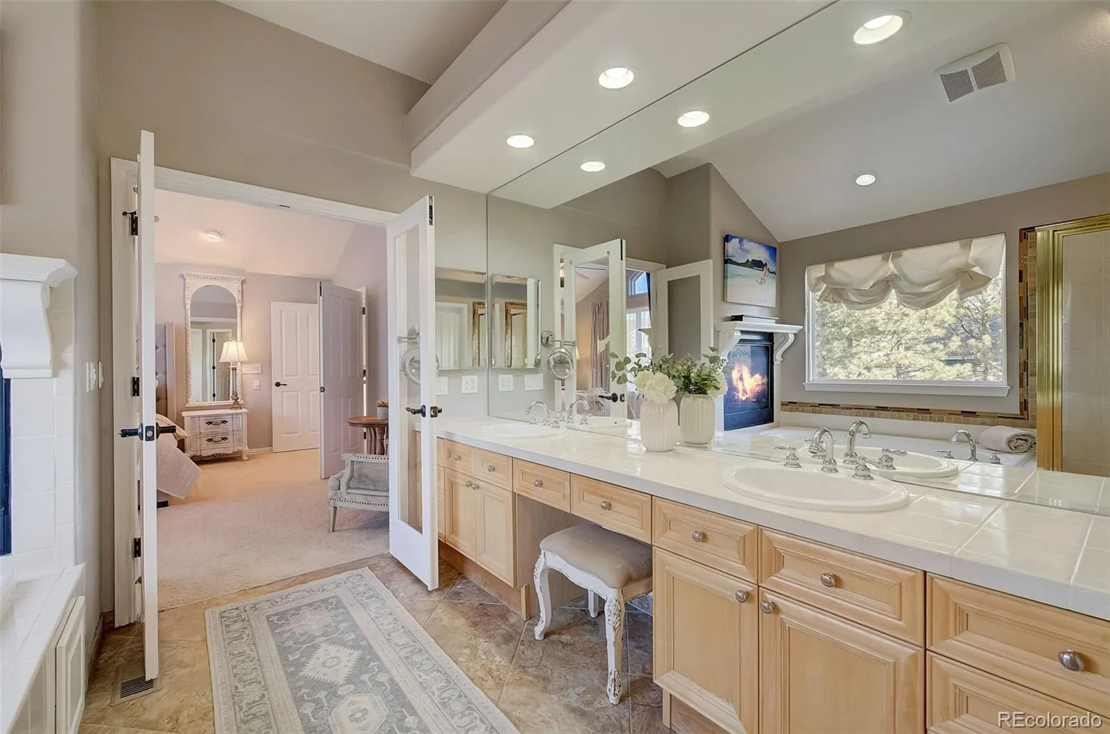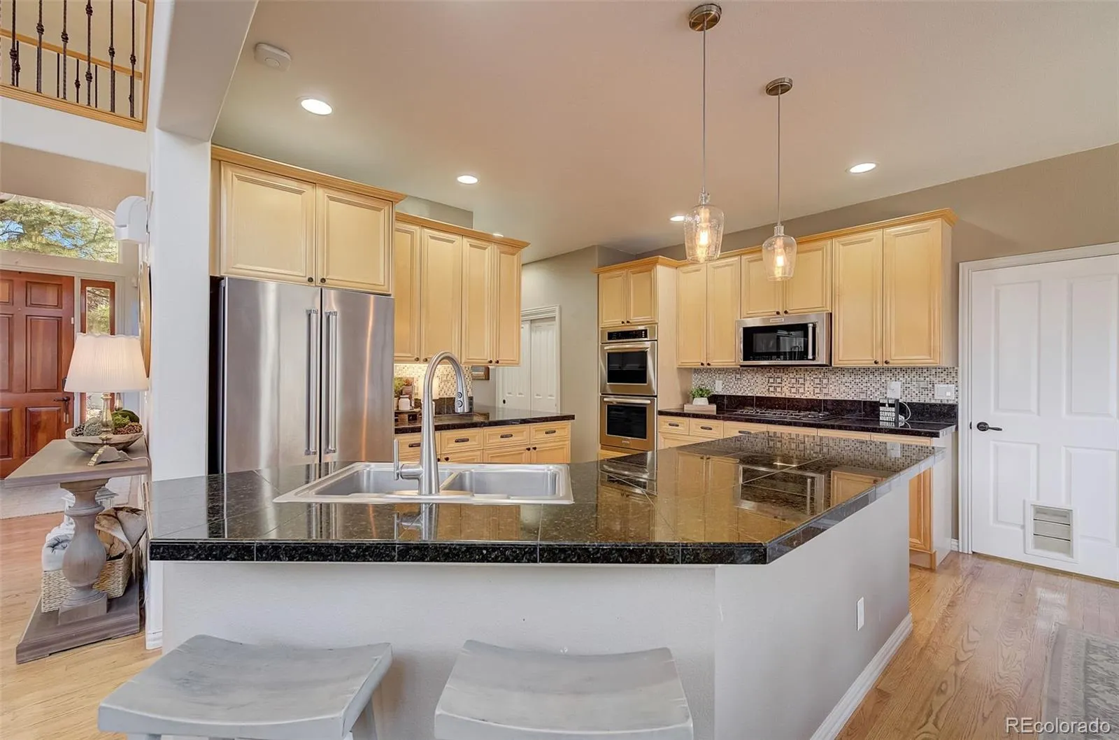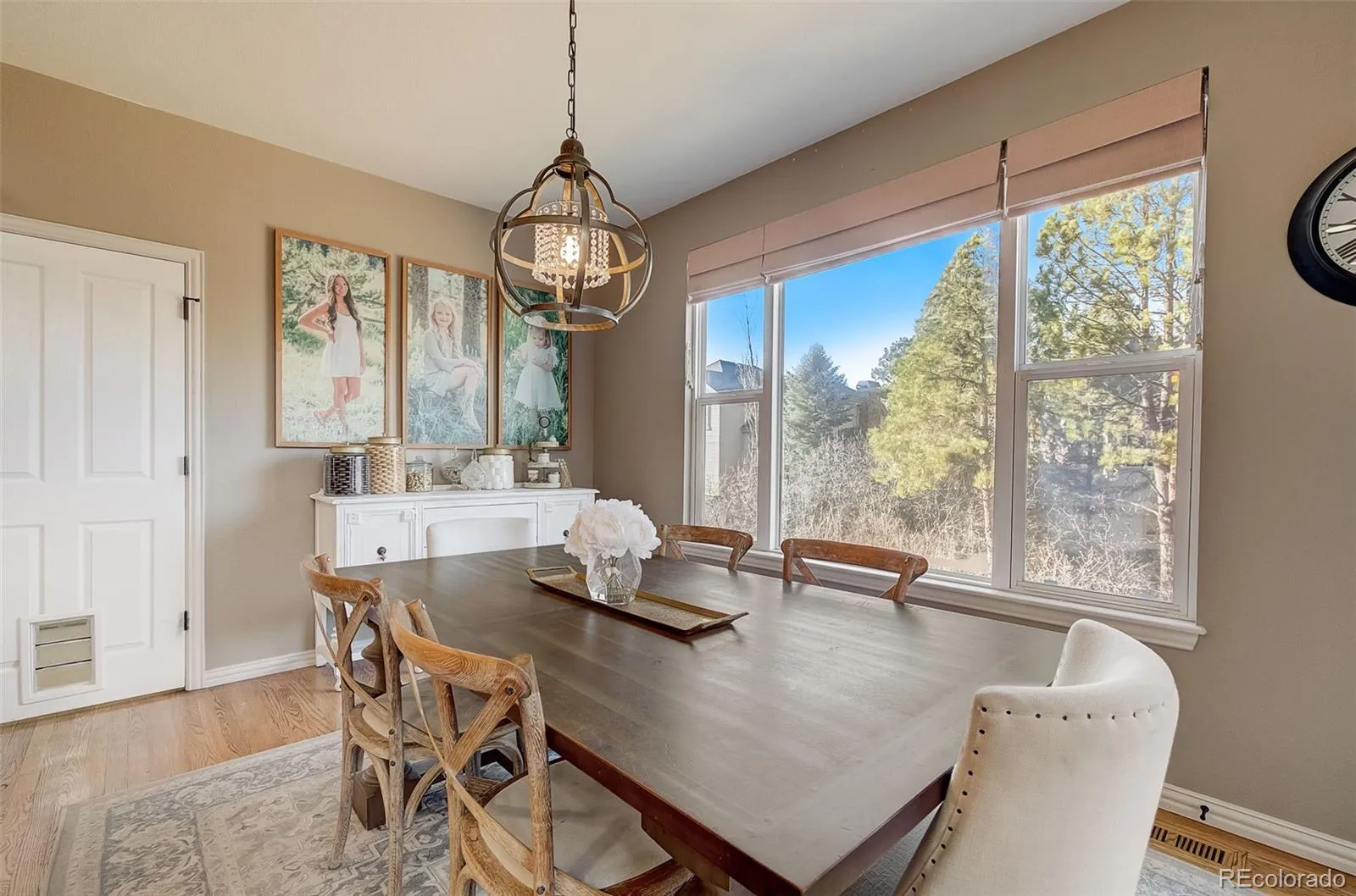 Incredible opportunity to own in beautiful Forest Park! Nested in this much sought after community, this 5 Bed, 5 Bath home is beautifully appointed, featuring soaring ceilings, open concept main floor, 3 car garage & finished walk out basement. Situated on a quiet cul-de-sac & backing to a greenbelt lined w/ mature evergreens throughout the lot & neighborhood. As you step inside, hardwood flooring flows throughout the main floor, and abundant natural light fill the rooms. The soaring 2-story family room with gas fireplace opens to the spacious kitchen featuring stainless steel appliances, gas cooktop, double ovens, walk-in pantry, convenient powder room & laundry room. This kitchen was designed for entertaining, featuring abundant cabinetry, granite countertops, kitchen dining nook & plenty of room to gather. Just outside the kitchen & family room is the private deck where you can take in Colorado’s great outdoors overlooking the serene greenbelt where deer meander often. A formal dining room & office complete the main floor. Make your way upstairs, to the vaulted primary suite; a true retreat w/ double-sided fireplace & spa-like bathroom complete with soaking tub facing the fireplace & spacious closet. Down the hall are three additional bedrooms & two full bathrooms that provide plenty of space for family & guests. The finished walkout basement is designed for entertaining, offering a large rec room, wet bar & beverage refrigerator, plus a guest bedroom w/ full bath. Outdoor living includes a main-level deck overlooking the greenbelt, a patio, & bonus exterior storage room. Additional storage in the unfinished basement, features built-in shelving & 2 newer water heaters. Residents of Forest Park enjoy a beautiful private pool & clubhouse, along with year-round events (Summer Soiree, Oktoberfest & Holiday Stroll). Surrounded by stunning evergreens, wildlife,The Ridge Golf Course, award winning schools; this community is one of Castle Pines’ most sought-after gems.