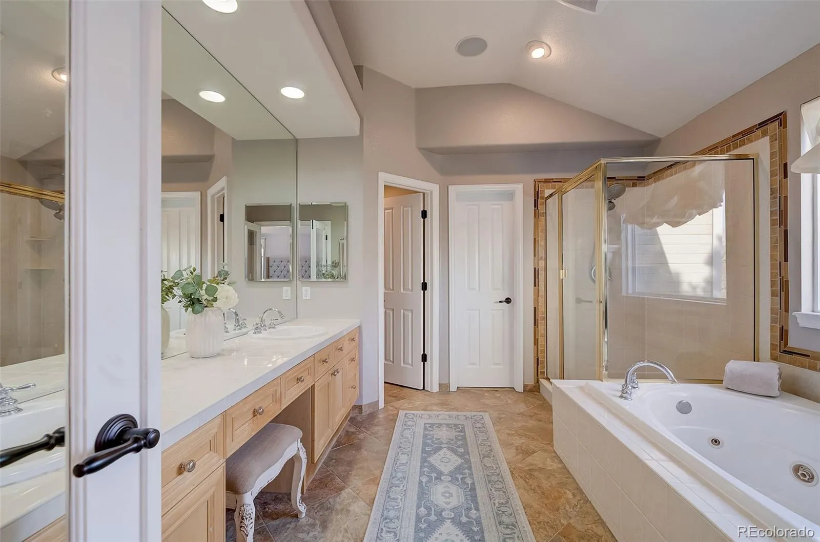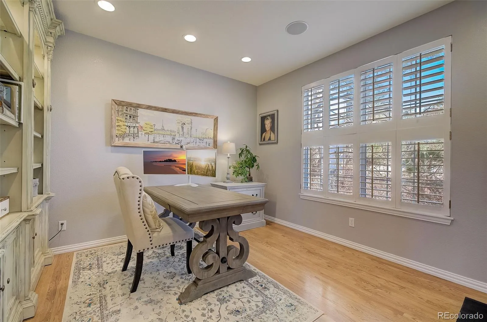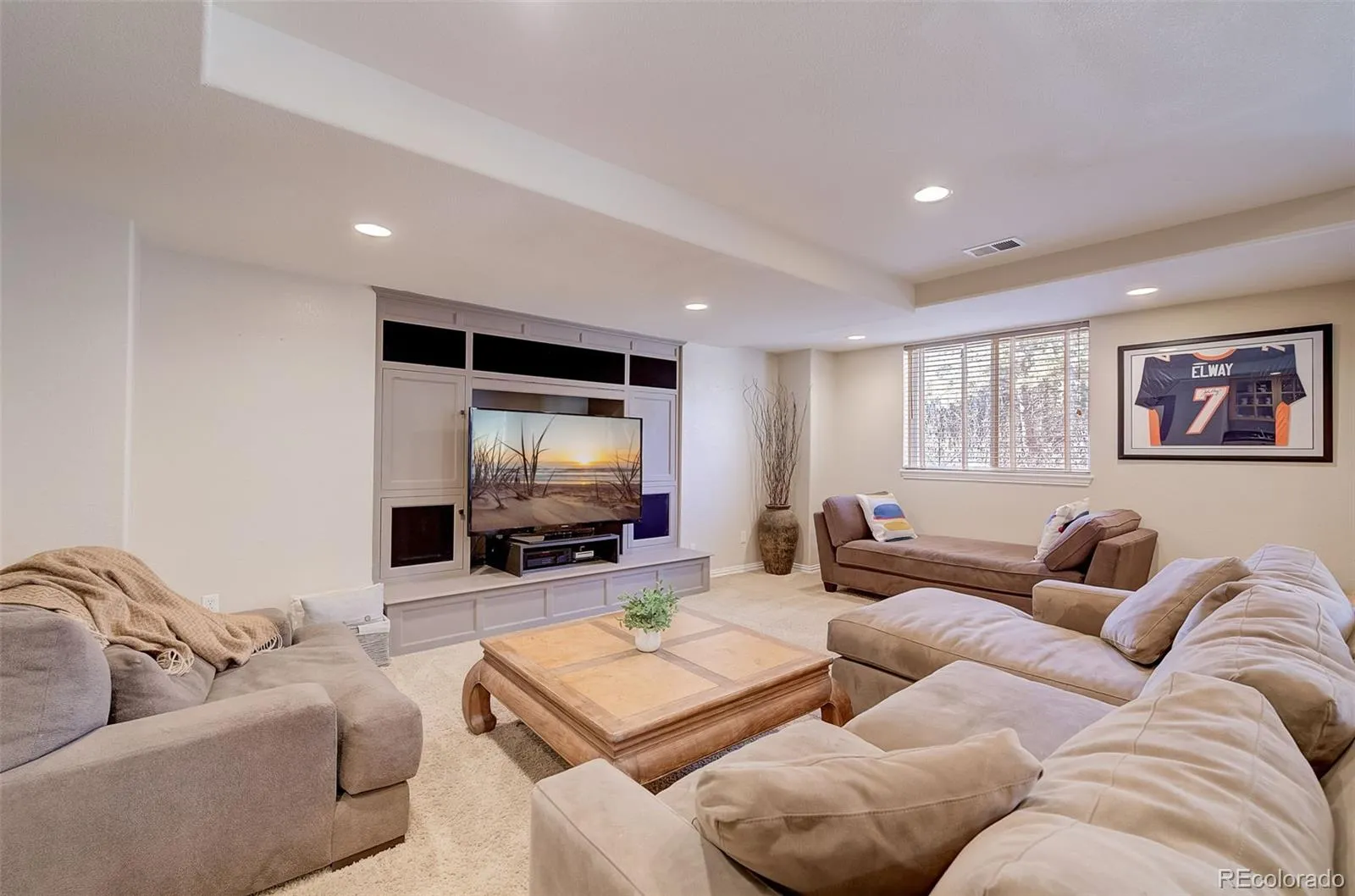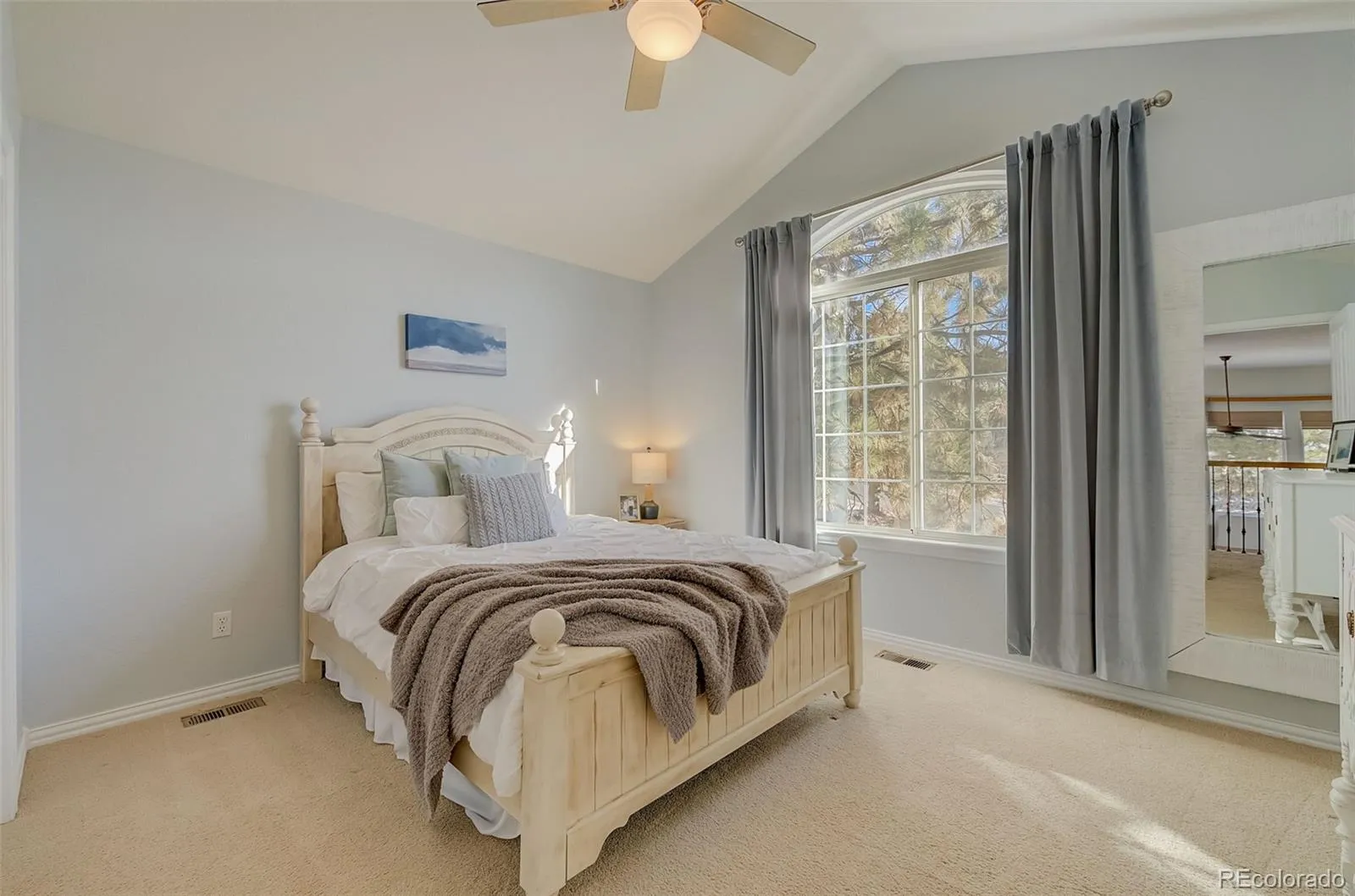 Incredible opportunity to own in beautiful Forest Park! Nested in this much sought after community, this 5 Bed, 5 Bath home is beautifully appointed, featuring soaring ceilings, open concept main floor, 3 car garage & finished walk out basement. Situated on a quiet cul-de-sac & backing to a greenbelt lined w/ mature evergreens throughout the lot & neighborhood. As you step inside, hardwood flooring flows throughout the main floor, and abundant natural light fill the rooms. The soaring 2-story family room with gas fireplace opens to the spacious kitchen featuring stainless steel appliances, gas cooktop, double ovens, walk-in pantry, convenient powder room & laundry room. This kitchen was designed for entertaining, featuring abundant cabinetry, granite countertops, kitchen dining nook & plenty of room to gather. Just outside the kitchen & family room is the private deck where you can take in Colorado’s great outdoors overlooking the serene greenbelt where deer meander often. A formal dining room & office complete the main floor. Make your way upstairs, to the vaulted primary suite; a true retreat w/ double-sided fireplace & spa-like bathroom complete with soaking tub facing the fireplace & spacious closet. Down the hall are three additional bedrooms & two full bathrooms that provide plenty of space for family & guests. The finished walkout basement is designed for entertaining, offering a large rec room, wet bar & beverage refrigerator, plus a guest bedroom w/ full bath. Outdoor living includes a main-level deck overlooking the greenbelt, a patio, & bonus exterior storage room. Additional storage in the unfinished basement, features built-in shelving & 2 newer water heaters. Residents of Forest Park enjoy a beautiful private pool & clubhouse, along with year-round events (Summer Soiree, Oktoberfest & Holiday Stroll). Surrounded by stunning evergreens, wildlife,The Ridge Golf Course, award winning schools; this community is one of Castle Pines’ most sought-after gems.