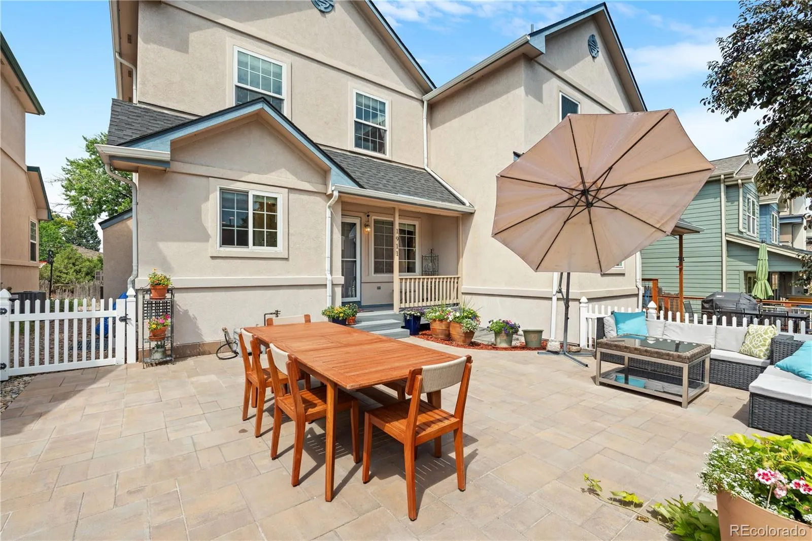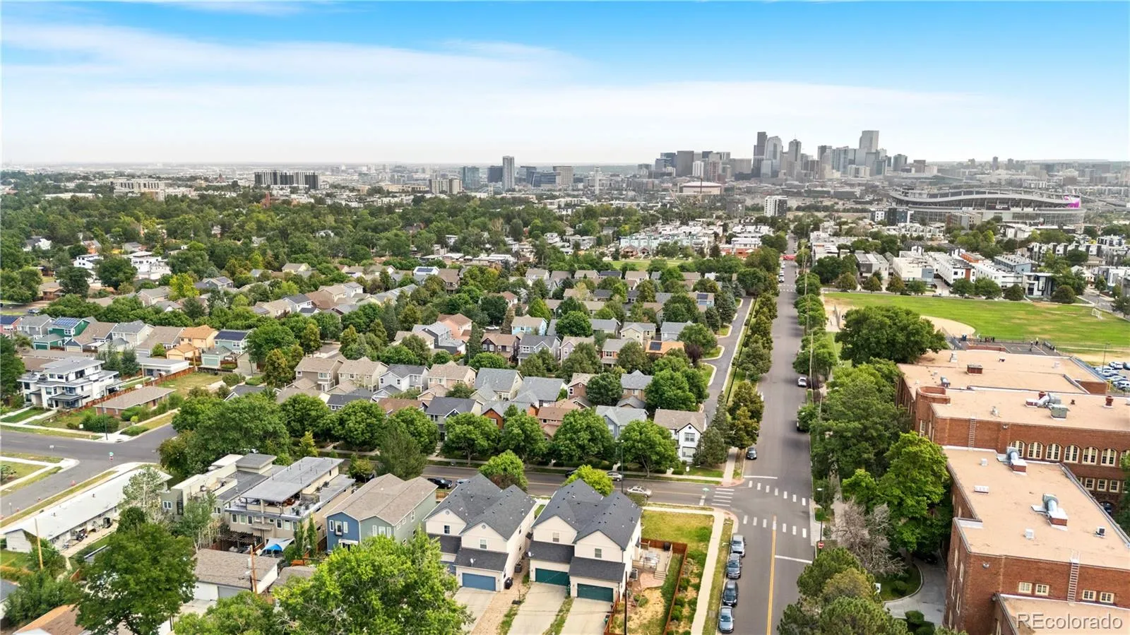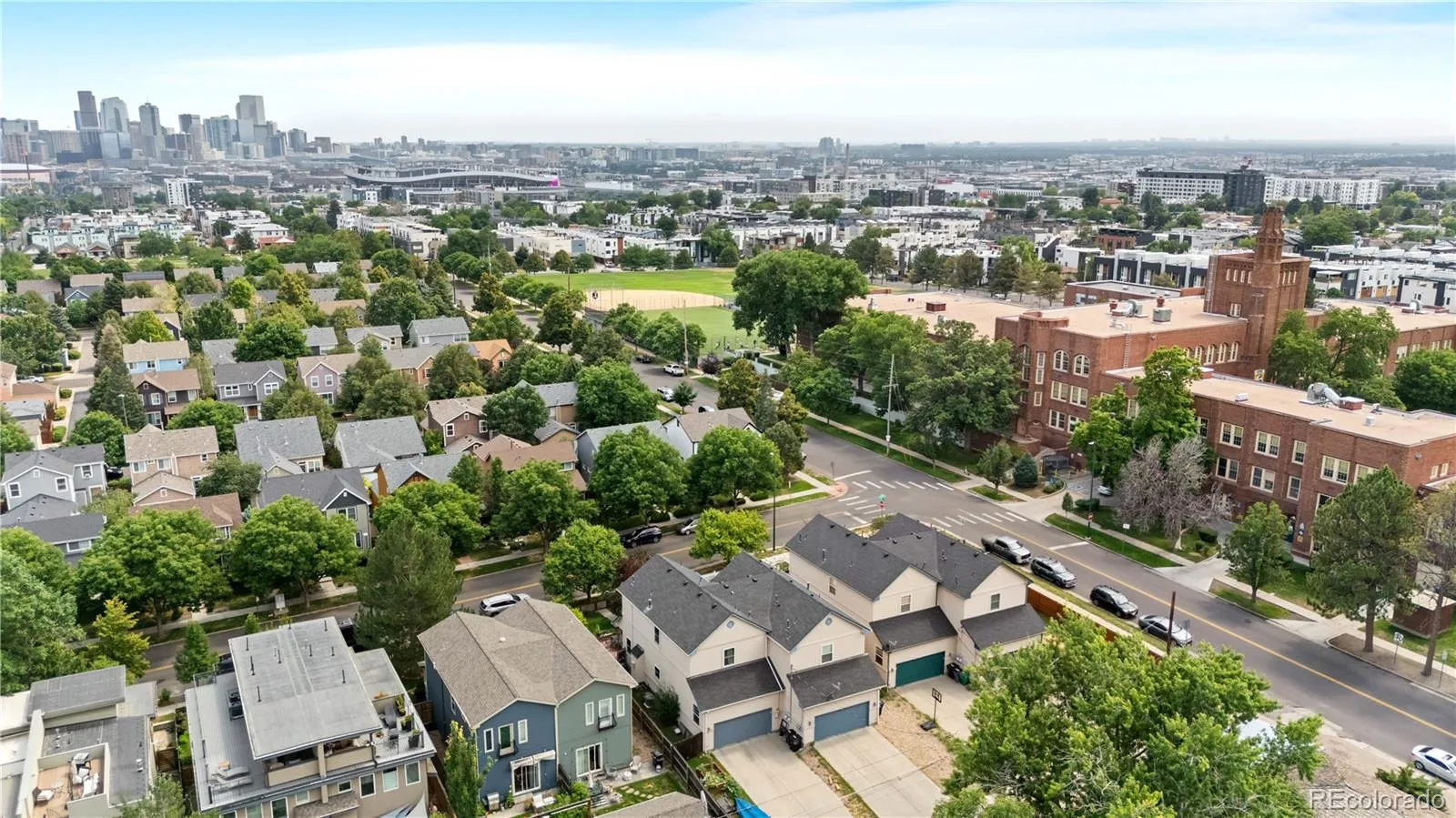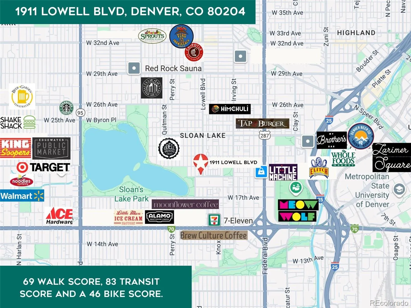 Buyers choice: $10K price reduction to $925K (=$60/m) or $935K + $10K credit to buy down your rate = $342/m saving. Just one block from Sloan’s Lake, this 4-bedroom, 3.5-bath half duplex built in 2003 provides open-concept living and a functional bedroom layout set between a fenced front yard and an attached two-car garage. Through the white picket fence, you’ll walk the new sidewalk along the lush green yard with a sprinkler system, over the new paver patio, up a few steps on the covered Trex deck to the new front door. As you enter, you’ll notice the wide open layout with 9ft ceiling. The main level has updated hardwood flooring throughout, a cozy gas fireplace in the living room, and an open kitchen with counter seating adjacent to a pleasant dining room. The kitchen offers quartz counters, plentiful cabinetry, and new Kitchen Aid appliances. Up the beautiful wood staircase you’ll find three bedrooms and two full baths plus a laundry room — washer and dryer (2020) included. The spacious primary suite has a 5-piece bathroom with a huge vanity, soaking tub and water closet. Downstairs, the finished basement lives like a private suite, complete with a wall of closets, egress window, ¾ bath, and an office with French doors. This area is perfect as a fourth bedroom, office space, gym, or bonus space. Head out your front door to explore Sloan’s Lake, the Highlands, or LoHi nearby. With tree-lined streets, a vibrant neighborhood, and easy access to downtown Denver, this home is city living at its finest. New tankless water heater (2023) / Appliances (2023) / New furnace and AC (2020) / Roof and gutters (2017) / Anderson windows (2016).